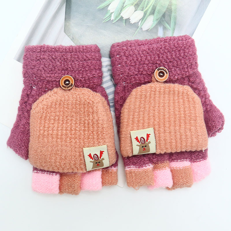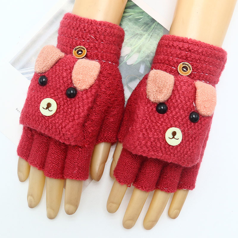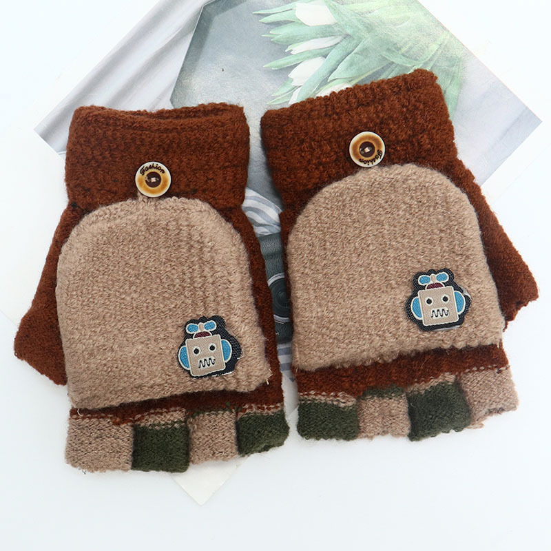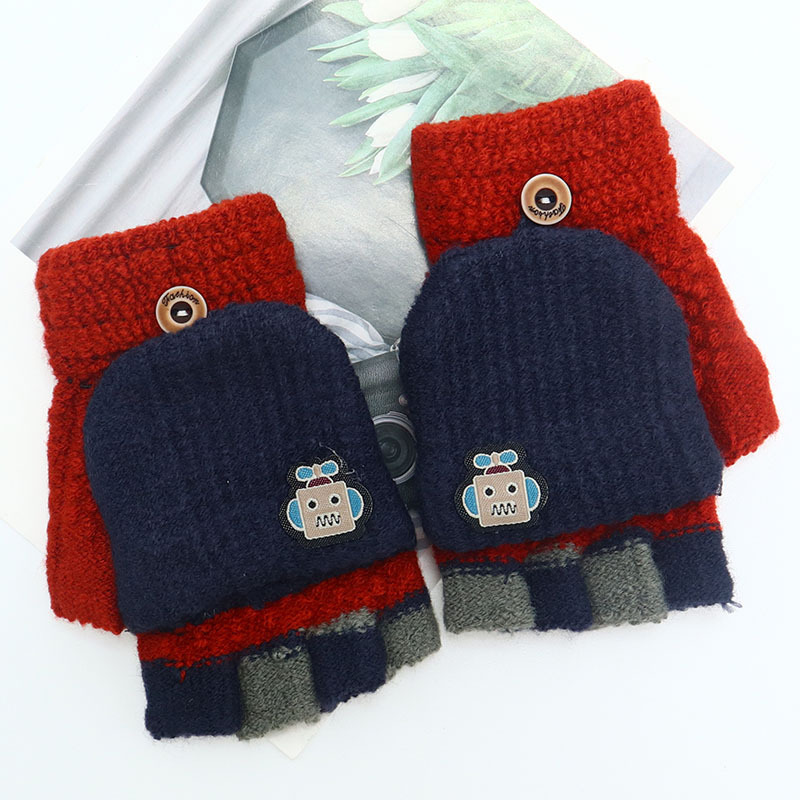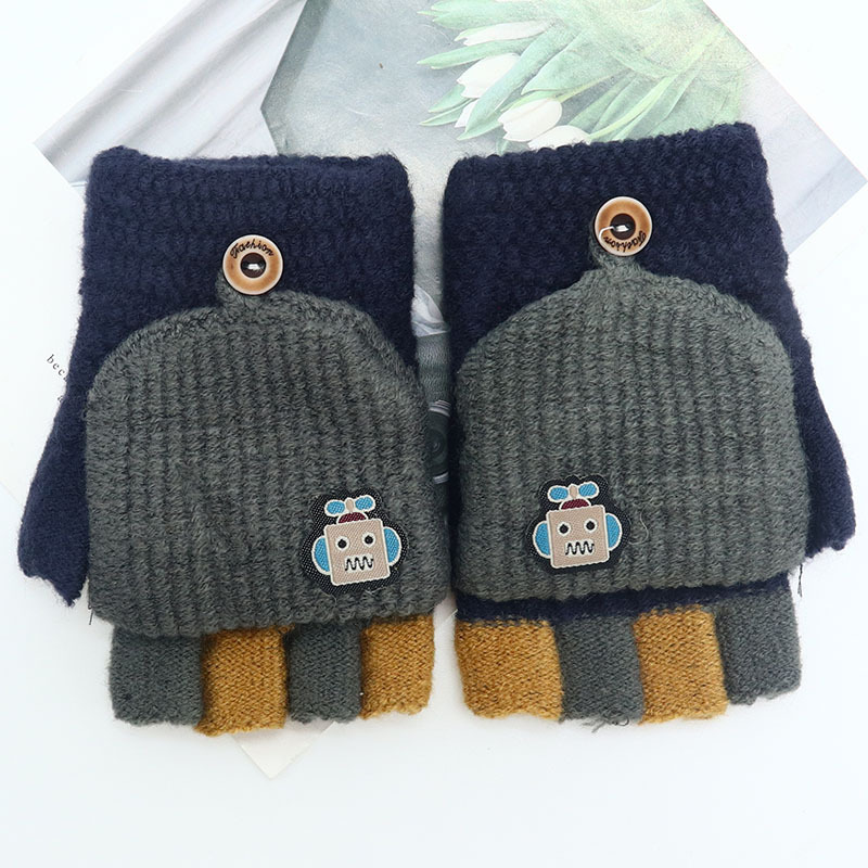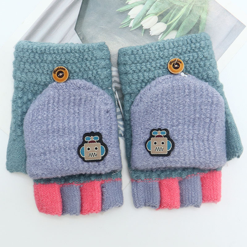 어린이 장갑 만화 귀여운 아기 겨울 따뜻한 초등학교 학생의 반 손가락 두꺼운 유치원 플립 커버 소년 소녀