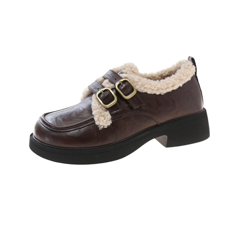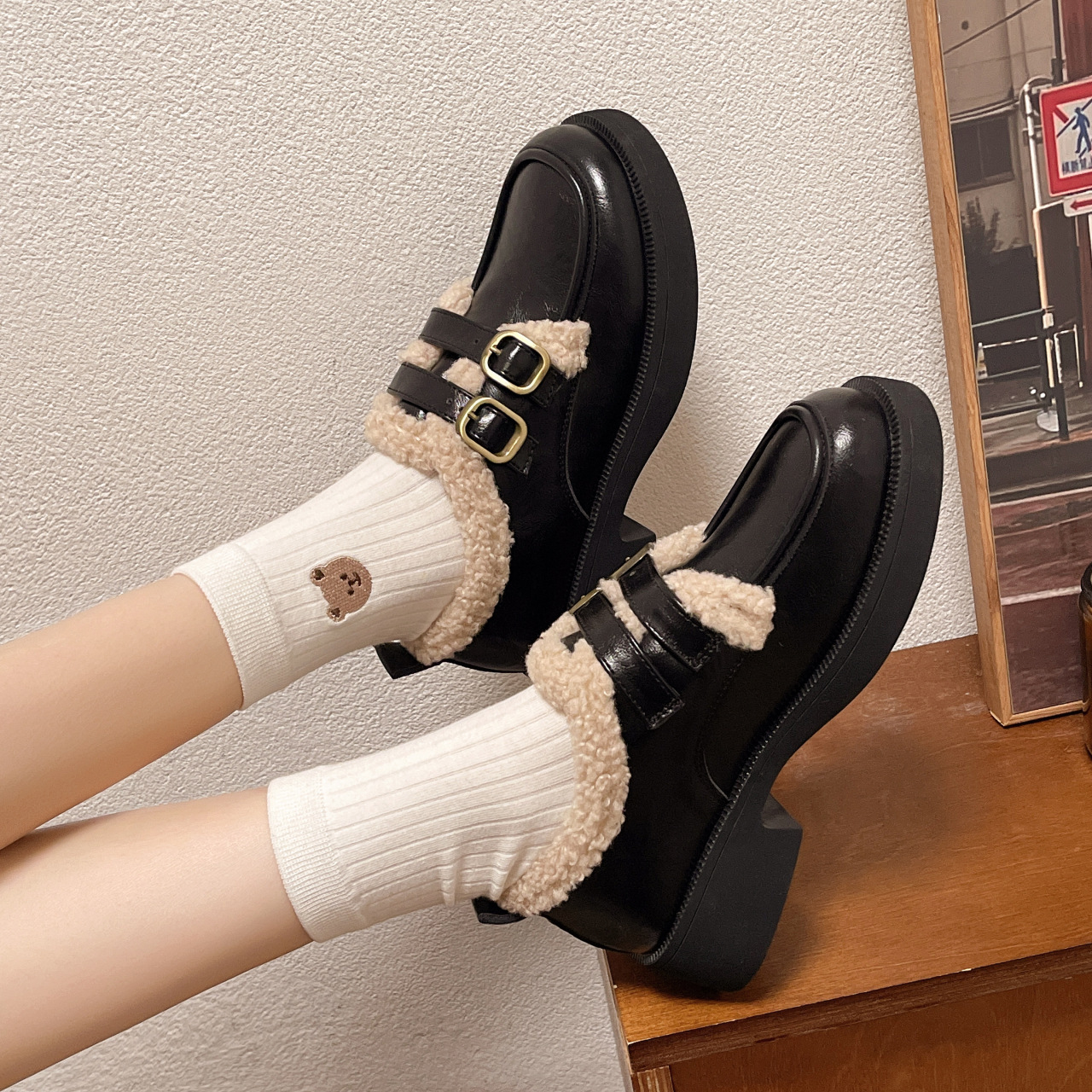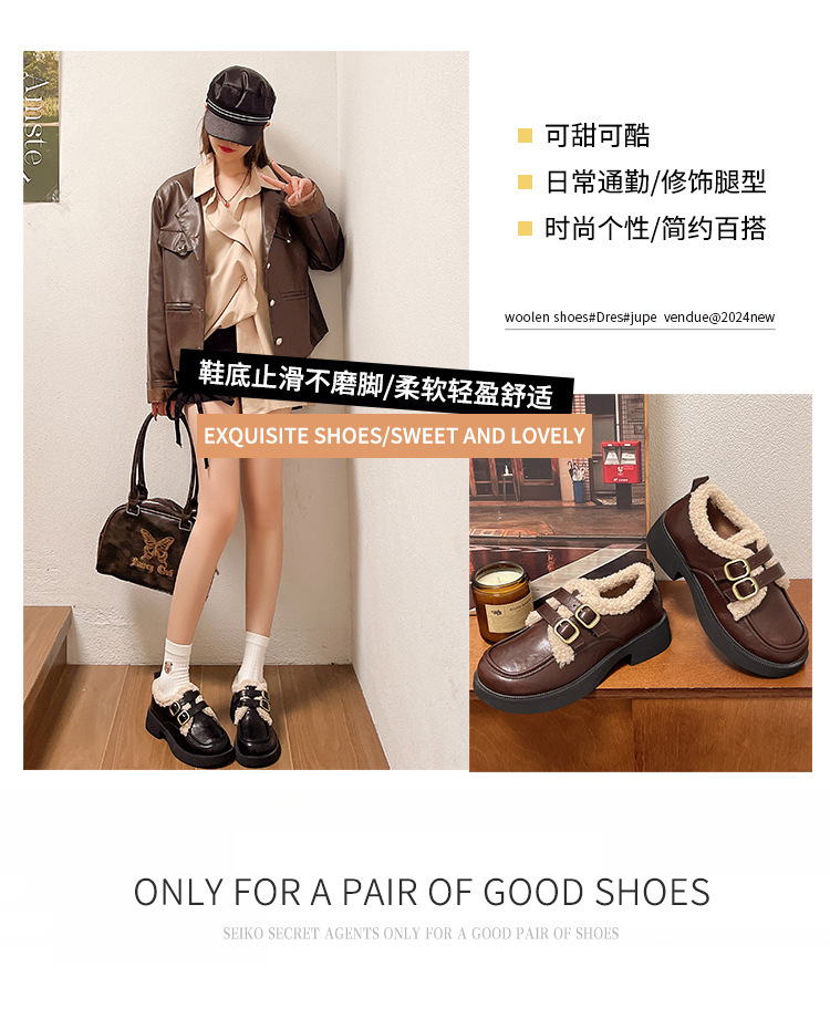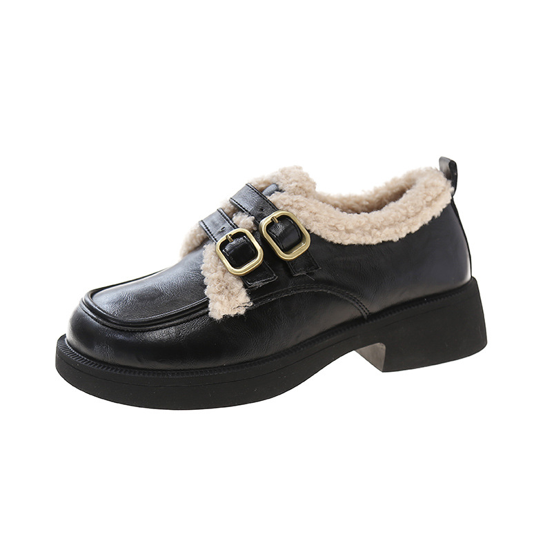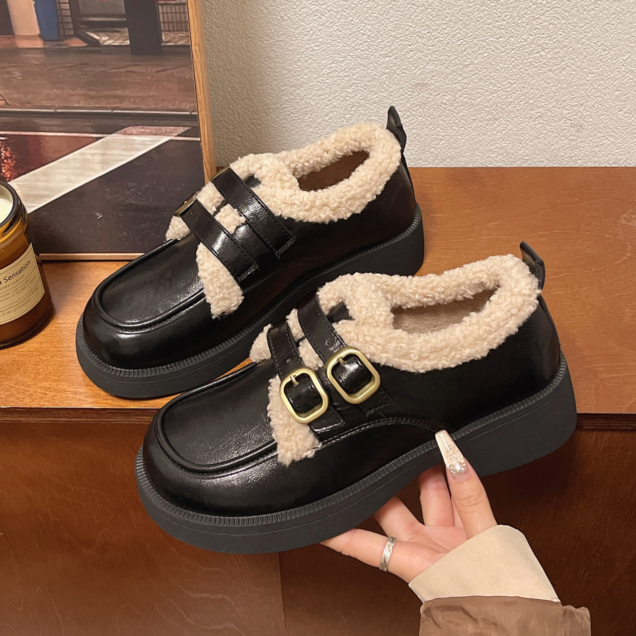 기모 로퍼 따뜻한 플랫폼 작은 가죽 신발 여성 두꺼운 밑창 영국 스타일 2024 가을 및 겨울 두꺼운 밑창 빈티지 코튼 패딩 신발스토어 가기