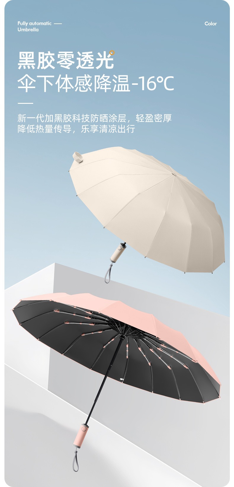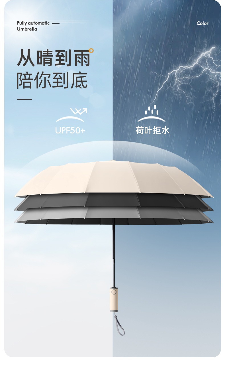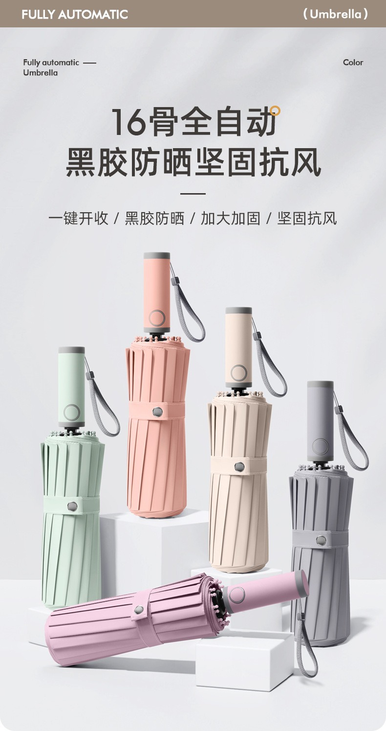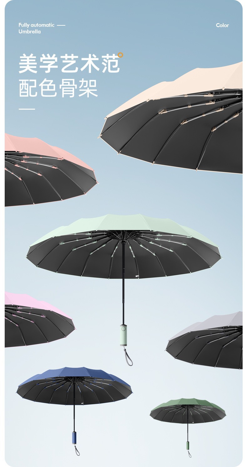 16-뼈 대형 완전 자동 우산 맑고 비오는 우산 성인 햇살 우산 UV 보호 남성 폭풍우