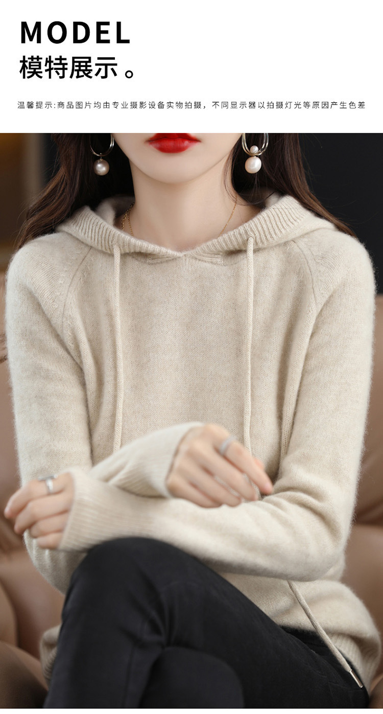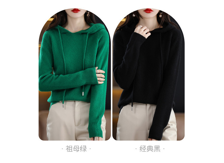新款女士纯色卫衣秋季连帽打底衫帽衫短款针织宽松毛衣