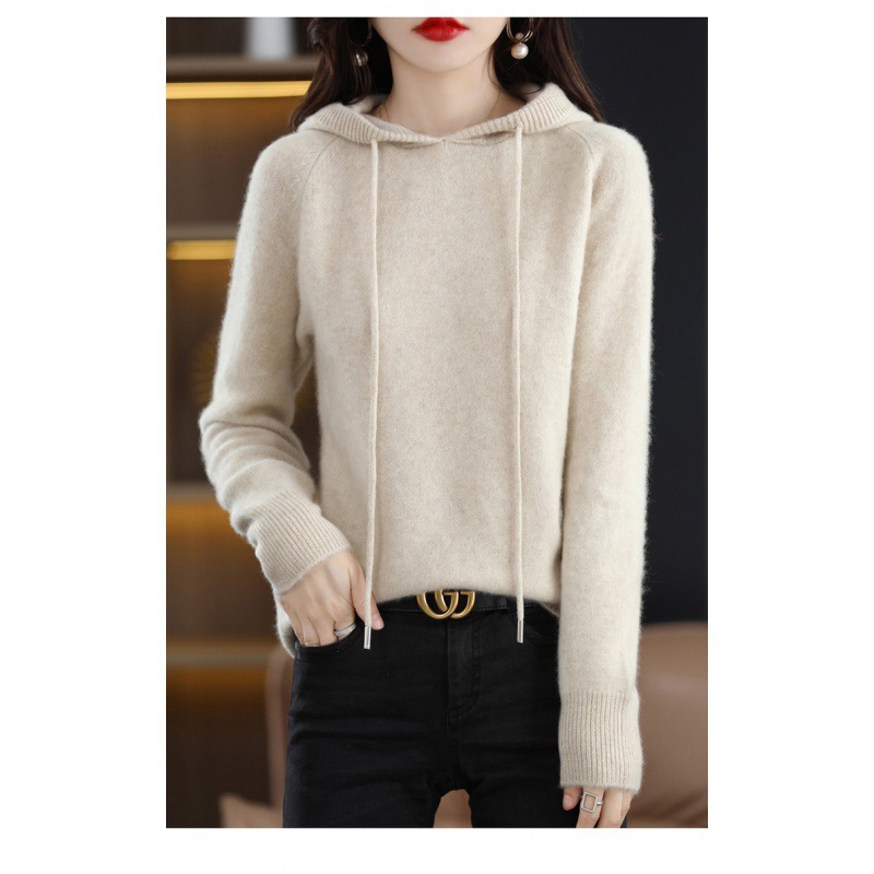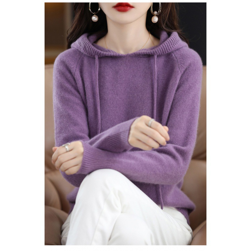 봄과 가을 새로운 여성의 단색 스웨터 후드베이스 셔츠 후드 짧은 니트웨어 느슨한 스웨터스토어 가기