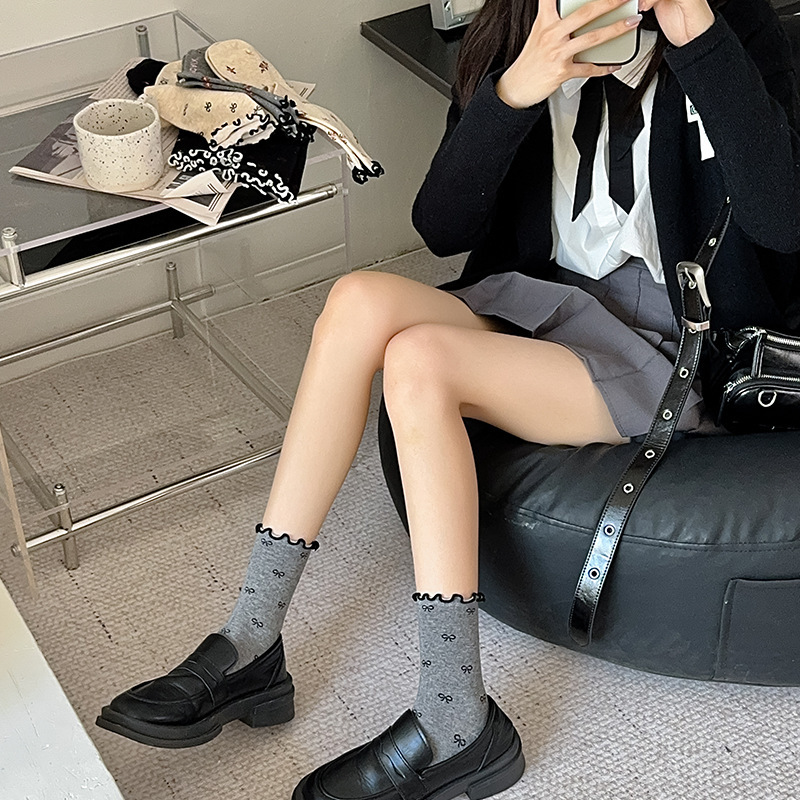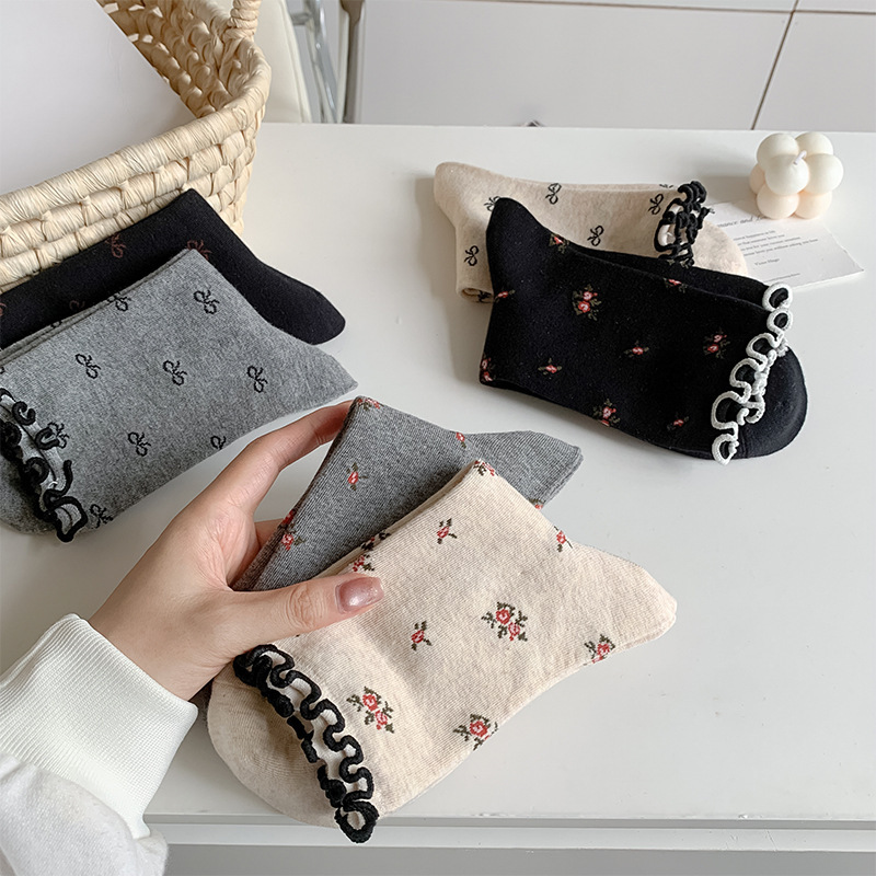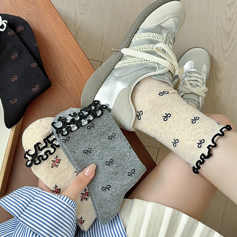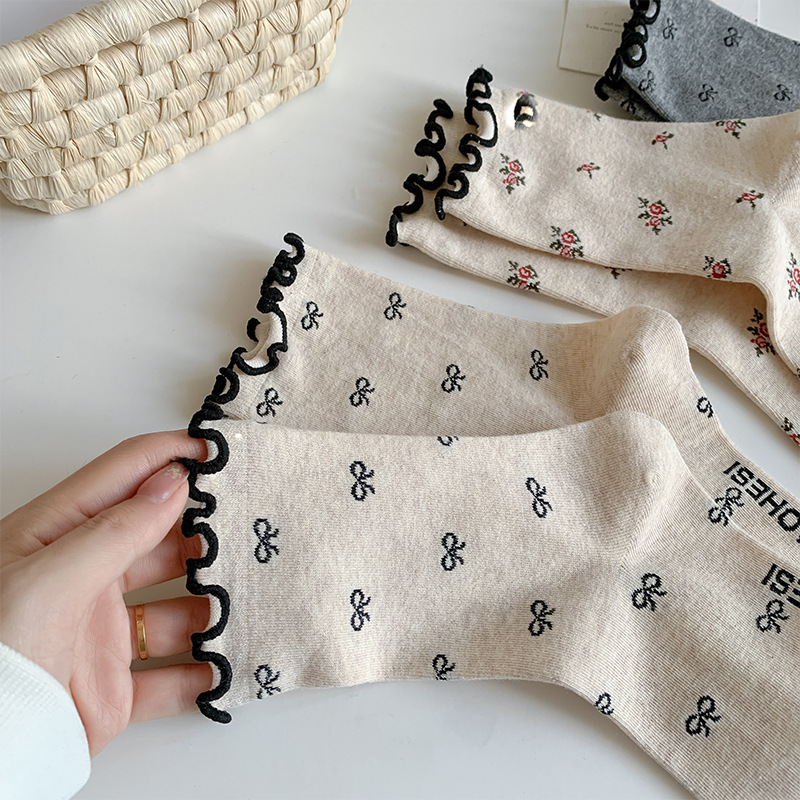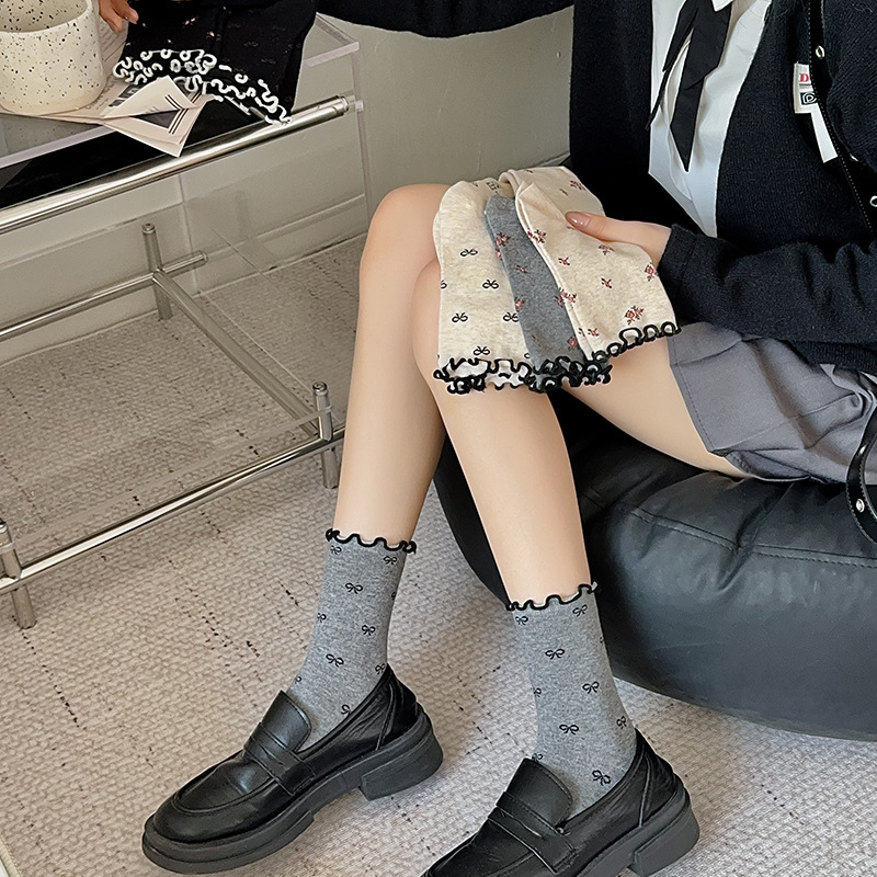 2024 가을 새로운 일본 달콤한 활 컬 여성용 양말 Ins 작은 꽃 Jk 스타일 코튼 스택