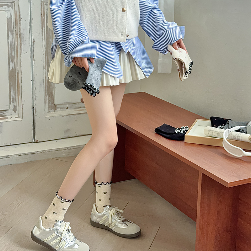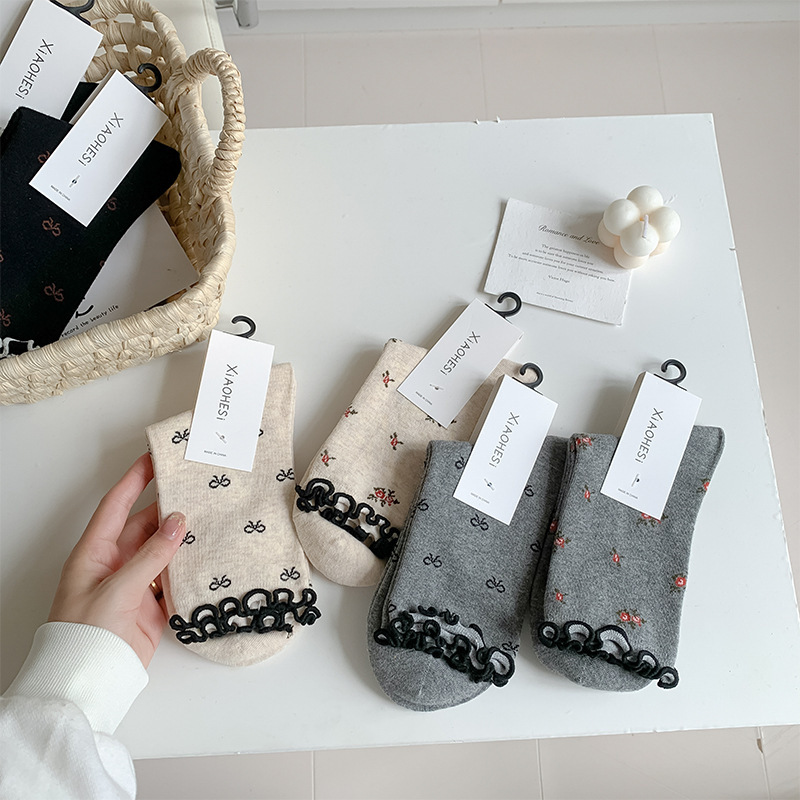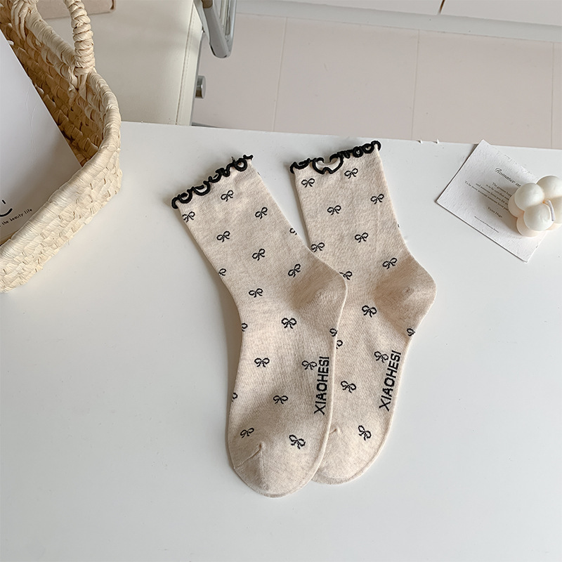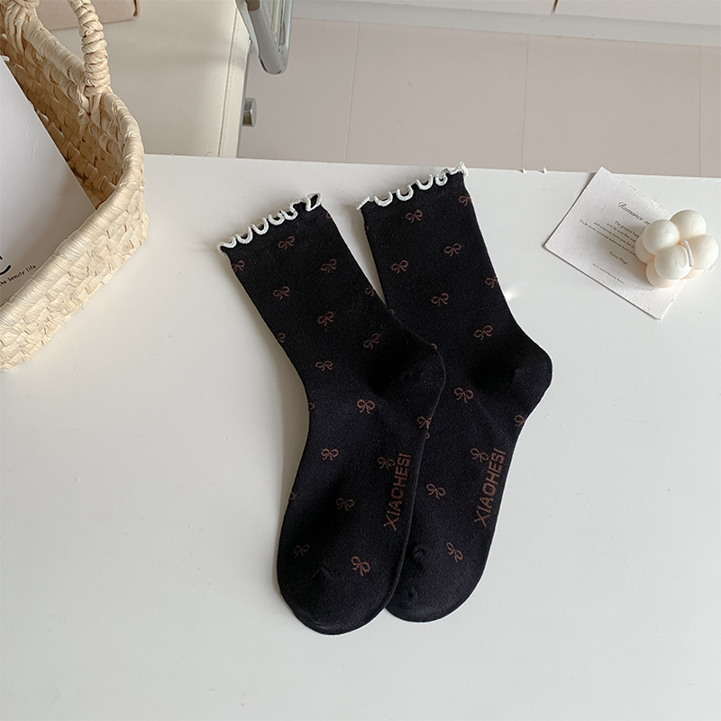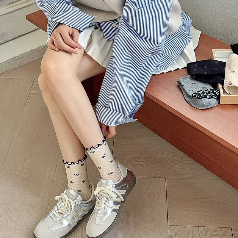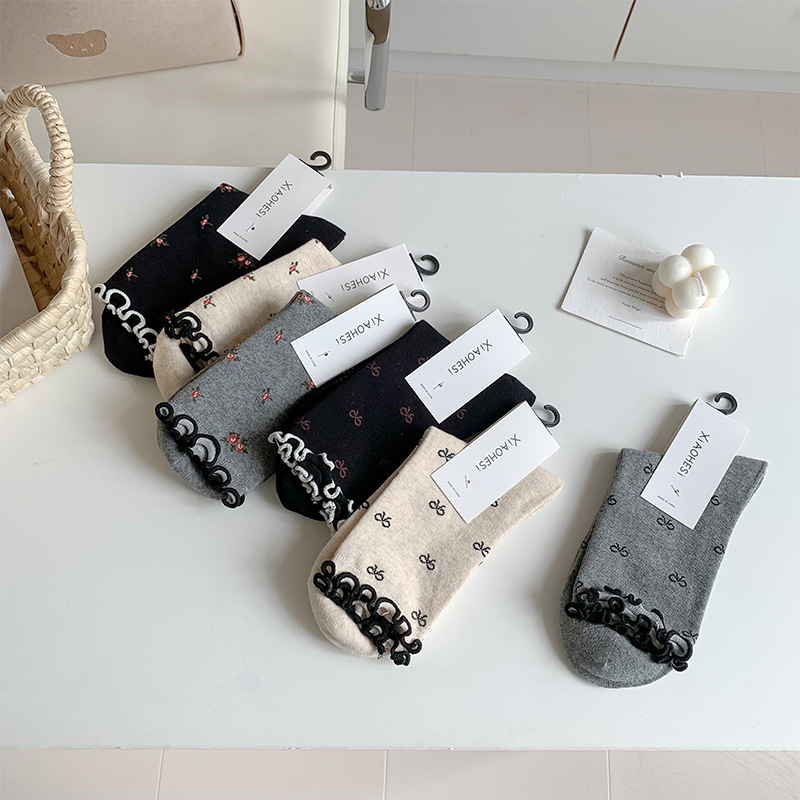 2024 가을 새로운 일본 달콤한 활 컬 여성용 양말 Ins 작은 꽃 Jk 스타일 코튼 스택