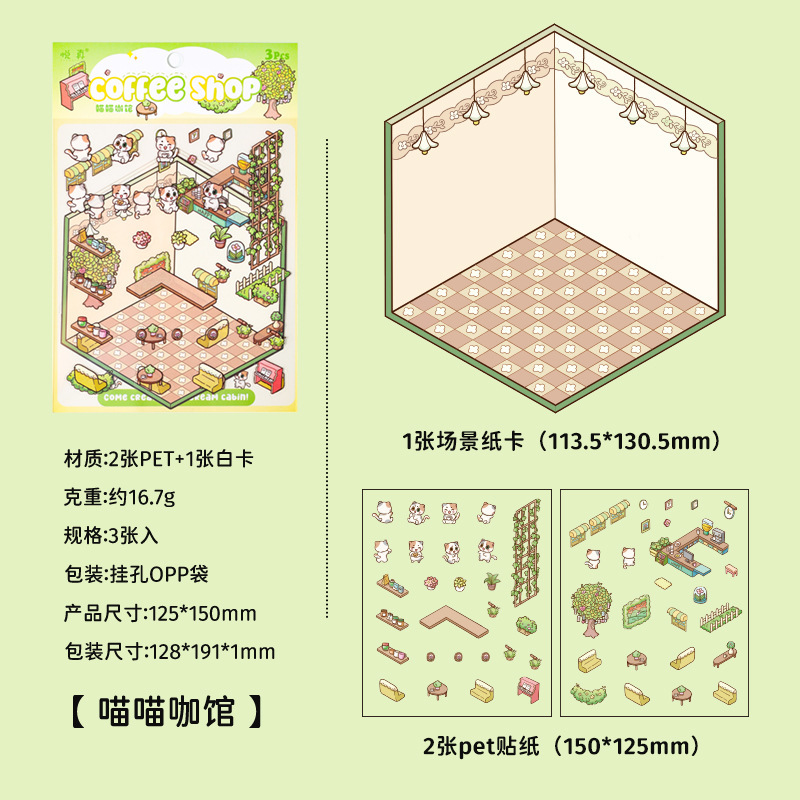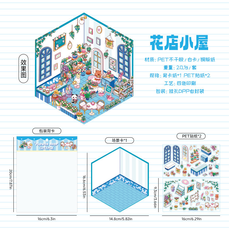 [멋진 거주지] 풍경 스티커 국경 3d 마이크로 스케일 장면 손 계정 스티커 어린이 만화 필름 스티커스토어 가기
