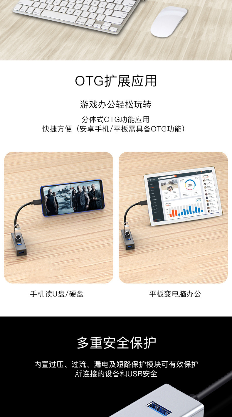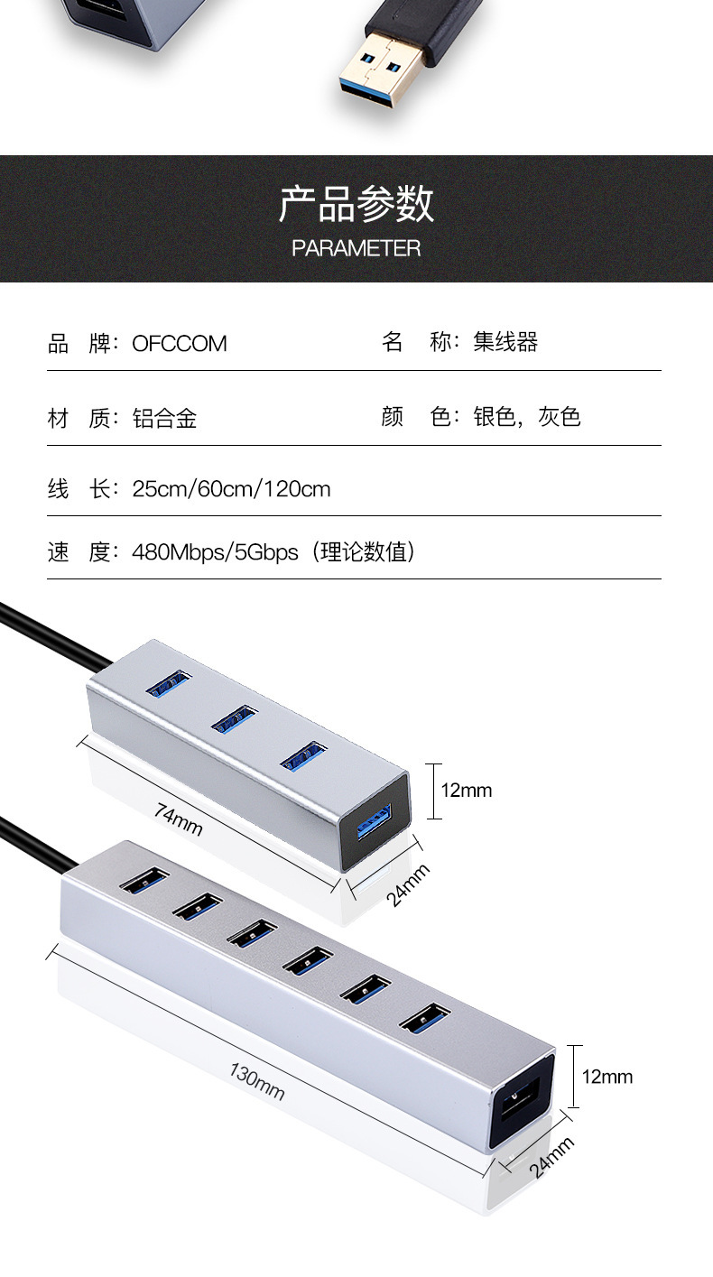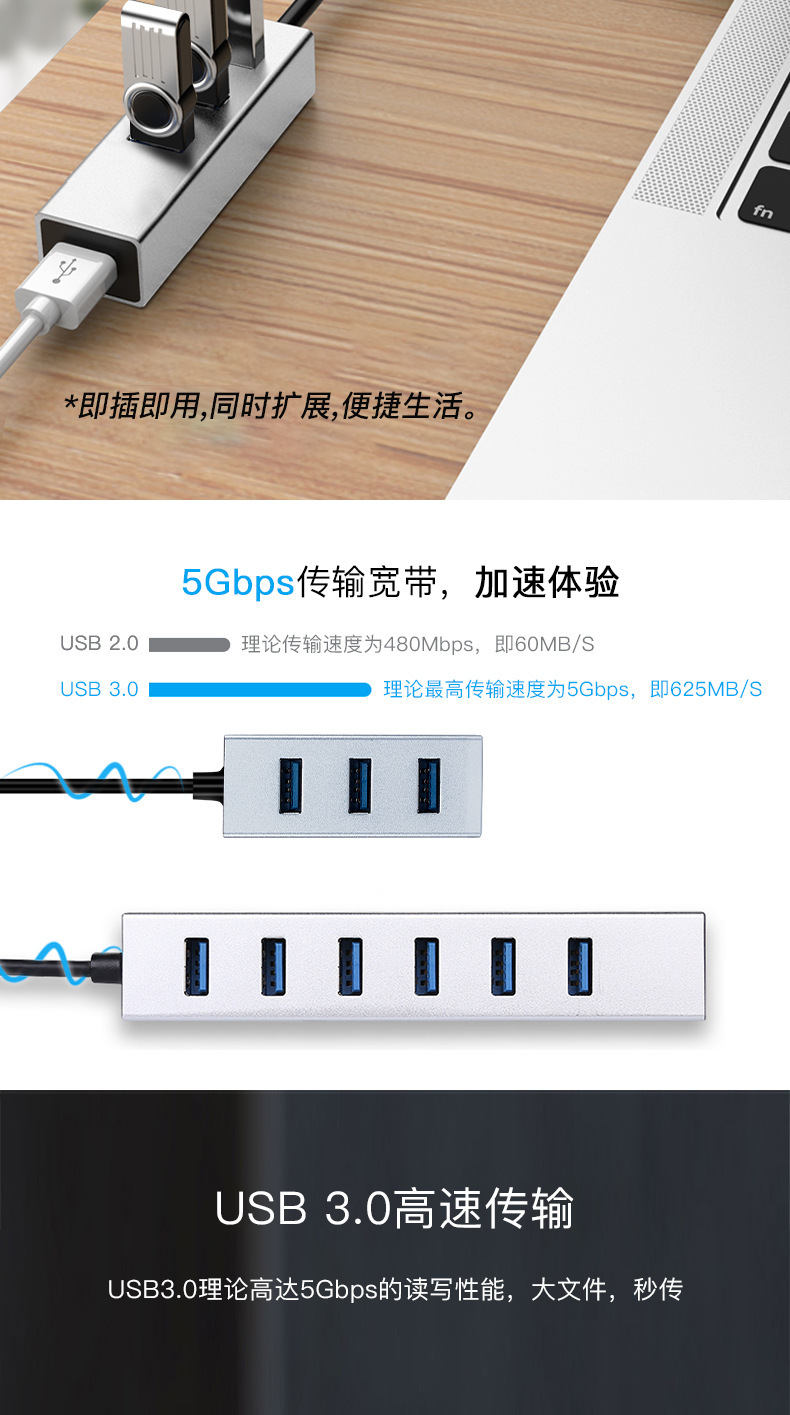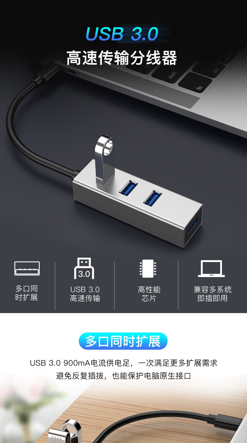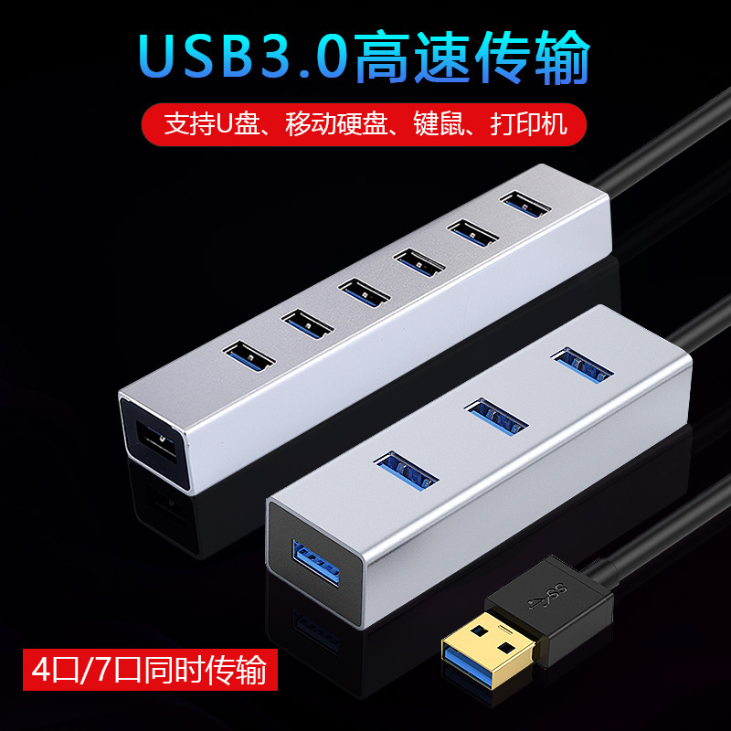 공장 직접 4 포트 USB3.0허브 알루미늄 합금 USB3.0 도킹 스테이션 1 대 4 USB 스플리터스토어 가기