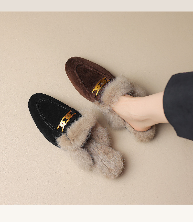 두꺼운 밑창 푹신한 슬리퍼 여성 신발 겉옷 젖빛 면화 슬리퍼 노새 신발 가을과 겨울 뾰족한 발가락 덮인 신발 기모스토어 가기