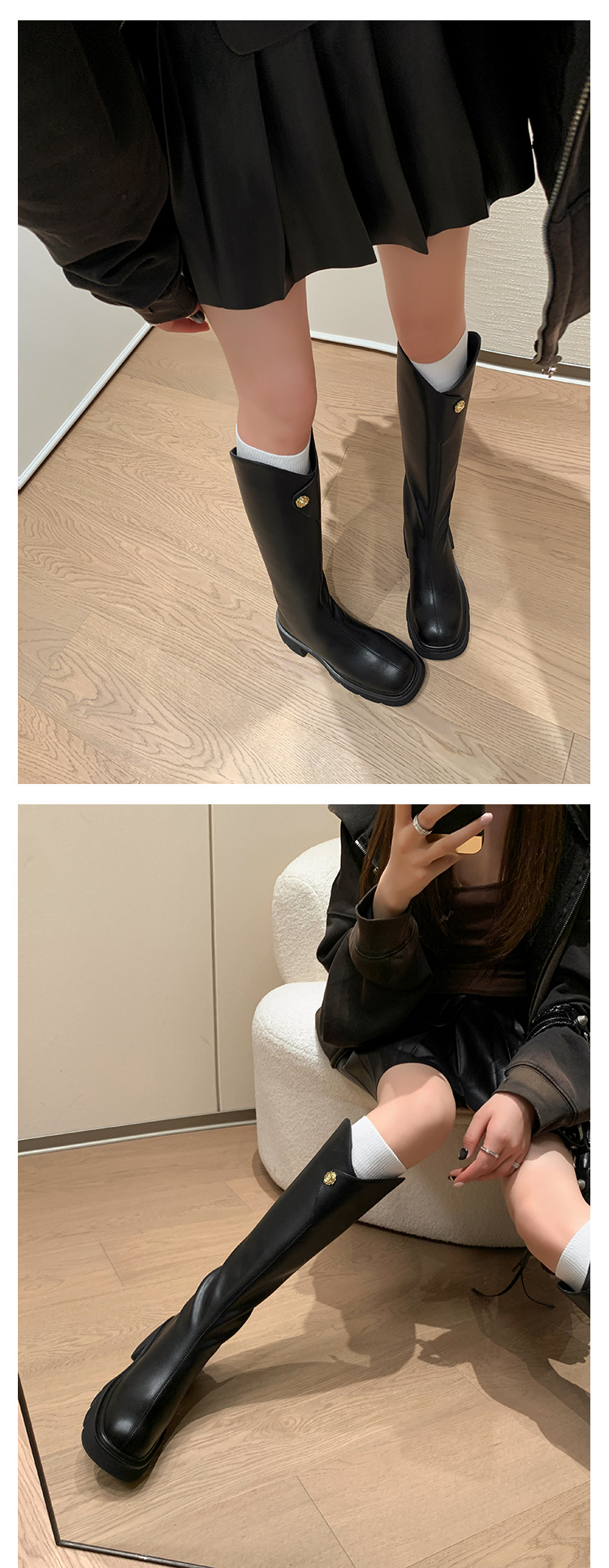 프렌치 레트로 정품 가죽 라운드 발가락이지만 무릎 롱 부츠 여성용 두꺼운 하이힐 슬리밍 V-입 나이트 부츠 두꺼운 바닥 스트레이트 씬스토어 가기