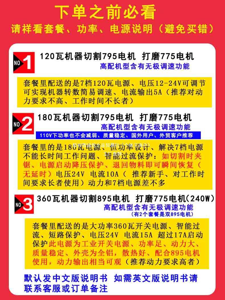 • 일반 단일 모터 표준 구성 - 전원 공급 속도 조절 - 120와트(색상 비고)