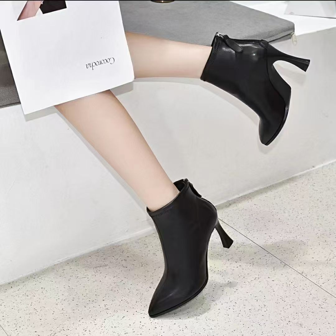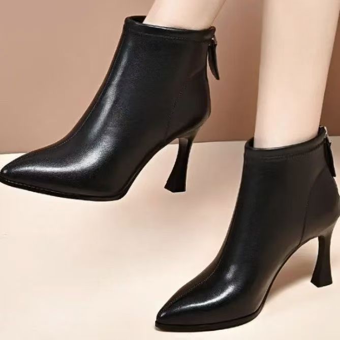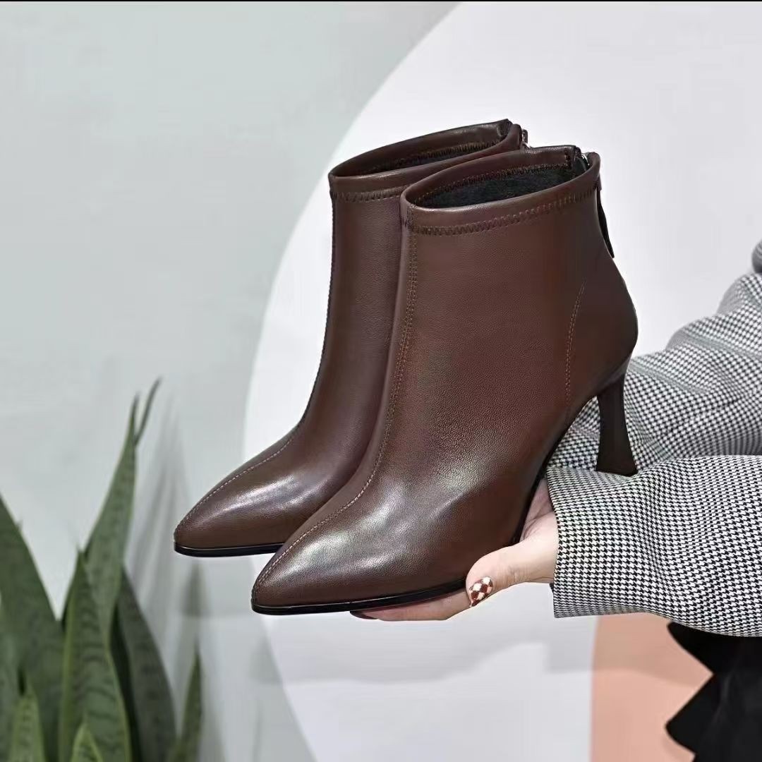 2024 새로운 가을과 겨울 작은 발 뒤꿈치 부츠 여성용 얇은 뒤꿈치 부드러운 가죽 신발 봄과 가을 싱글 부츠 부드러운 가죽 여성 신발 하이힐 마틴 부츠스토어 가기