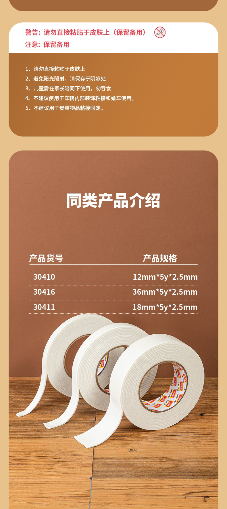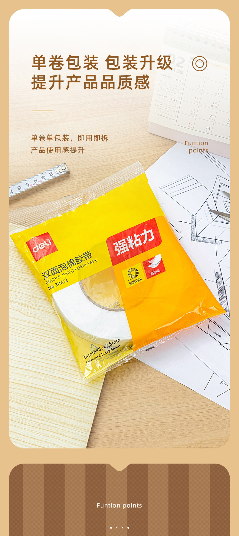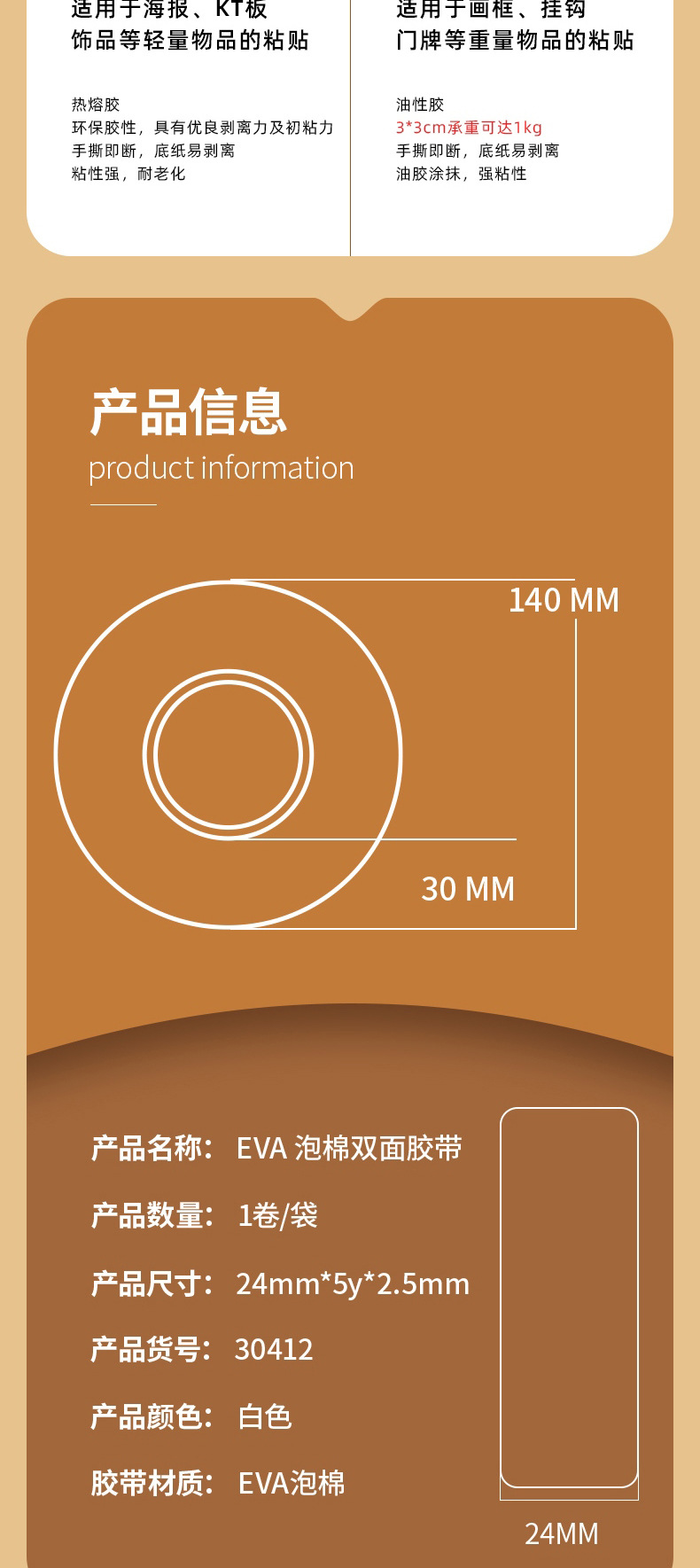 델리 30412 폼/스폰지 양면 테이프 폼 양면 테이프 24*2.5mm * 5y 끈적 끈적한 강한 수동 접착제스토어 가기