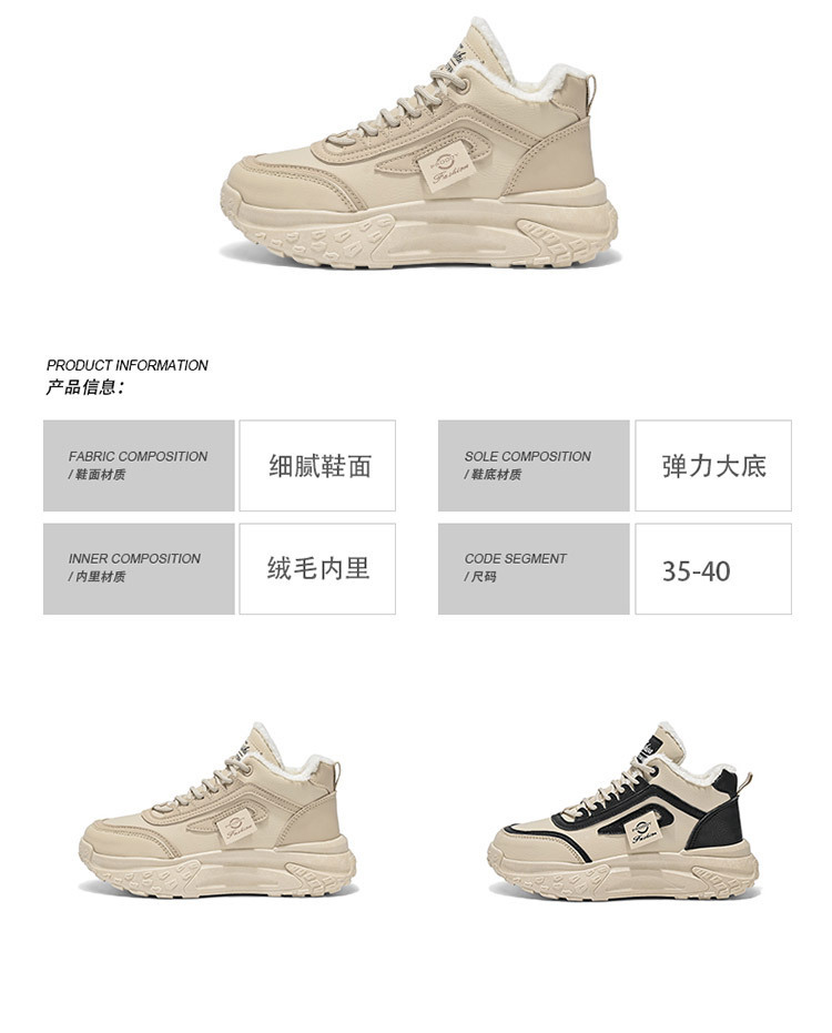 2024 년 겨울 하이탑 기모 토르슈즈 신형 신인즈 여학생 두꺼운 밑창 증가 스포츠 레저 Q039스토어 가기
