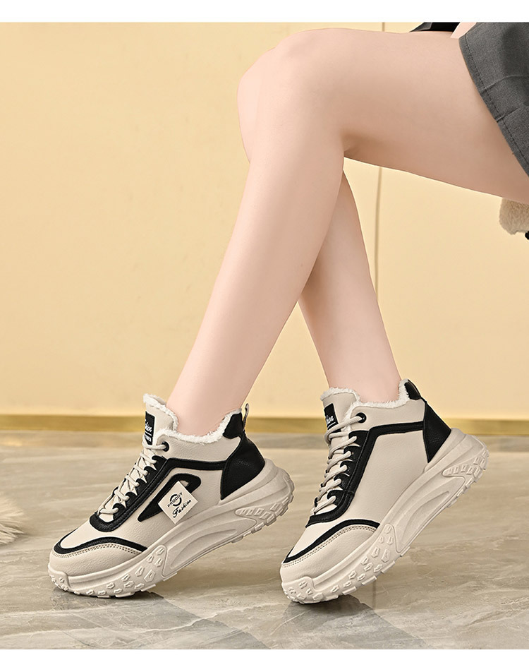 2024 년 겨울 하이탑 기모 토르슈즈 신형 신인즈 여학생 두꺼운 밑창 증가 스포츠 레저 Q039