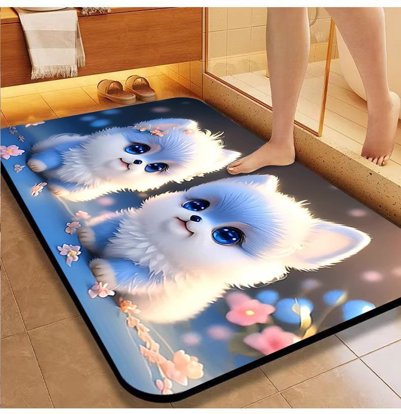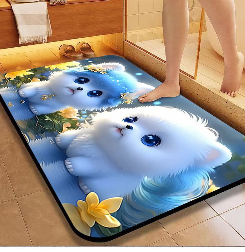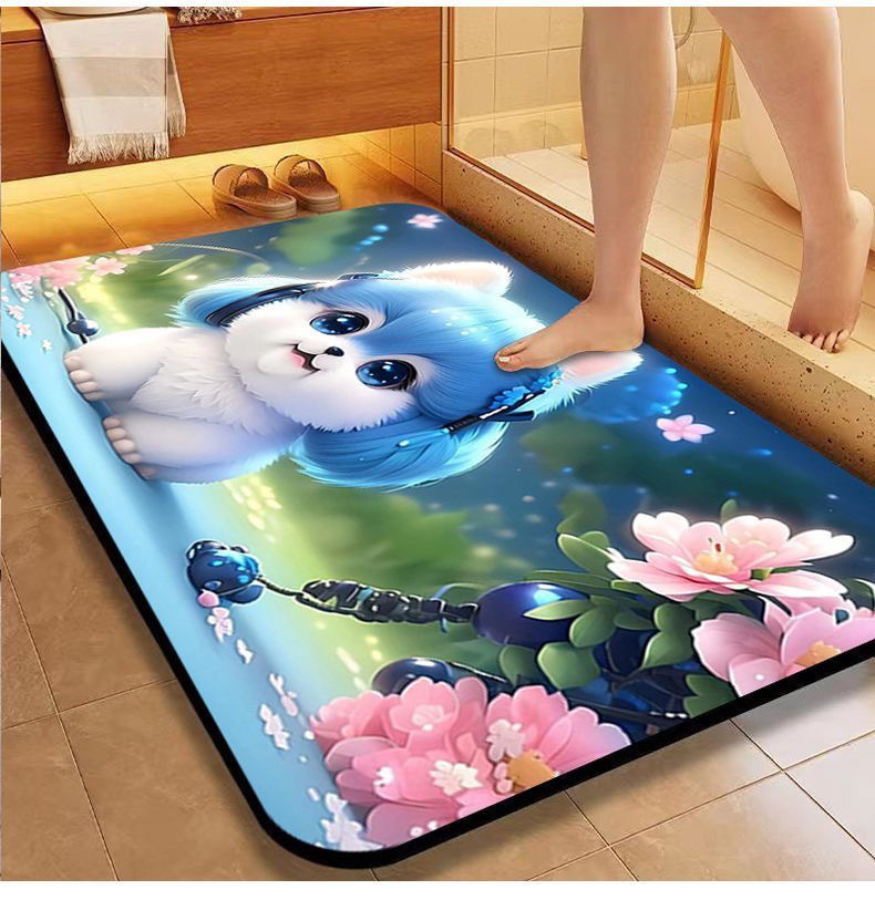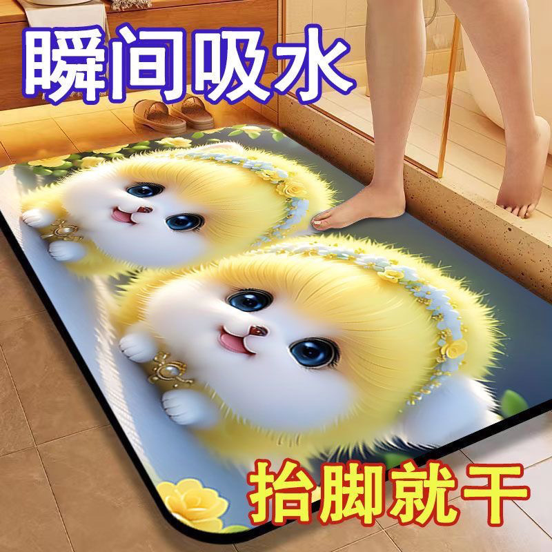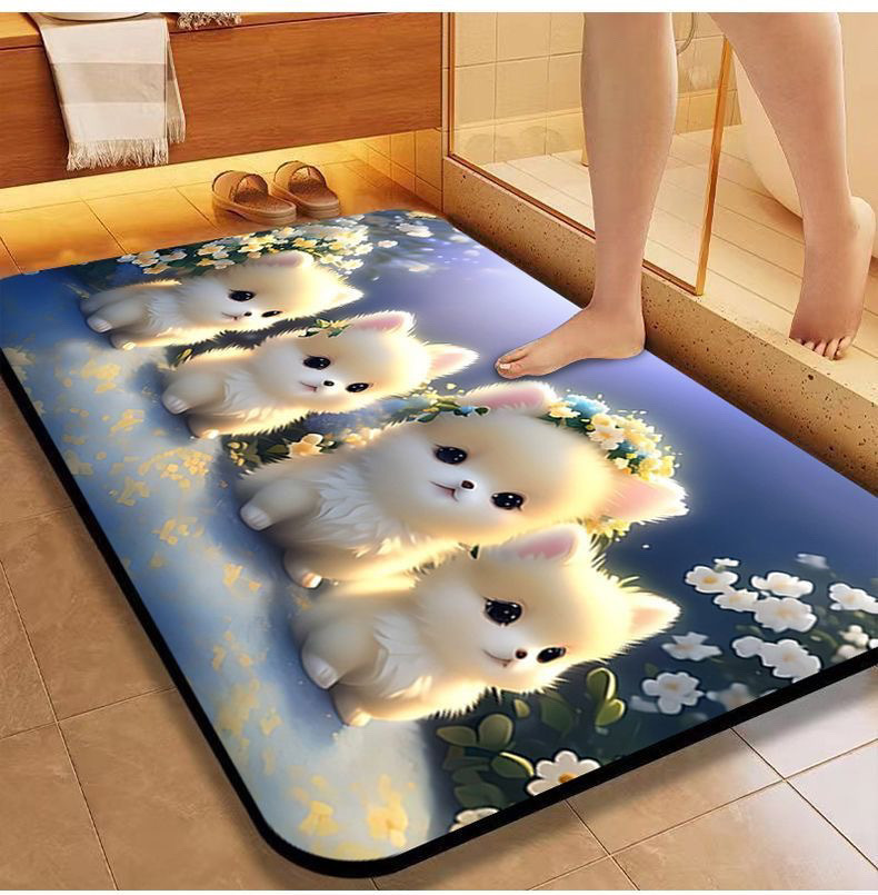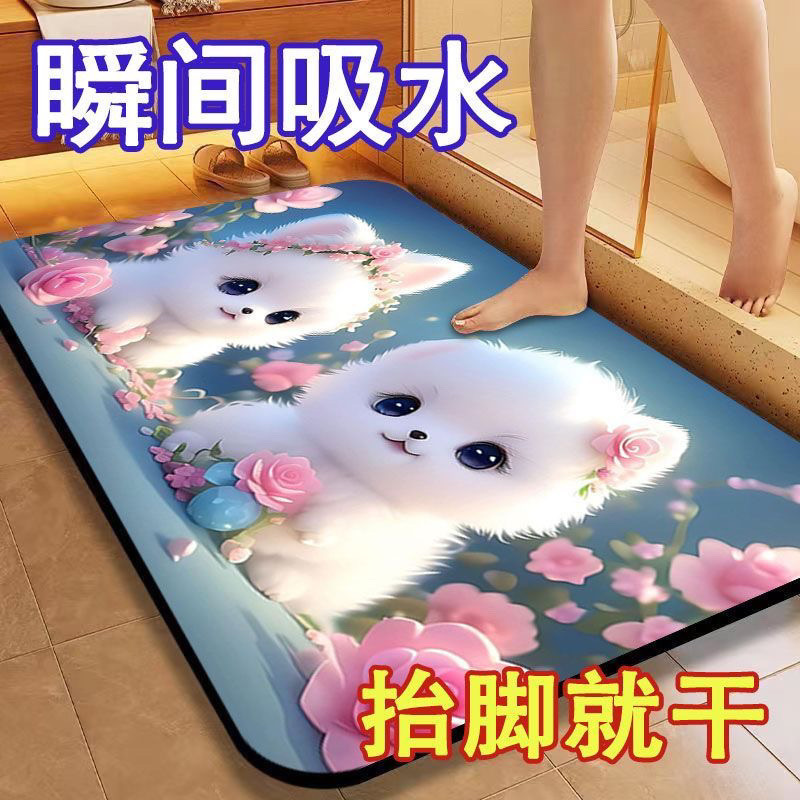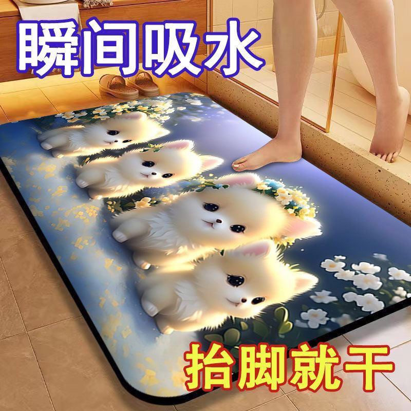 [초 흡수] 귀여운 강아지 만화 Diatom 바닥 매트 재미있는 화장실 화장실 욕실 문 미끄럼 방지 발 매트스토어 가기