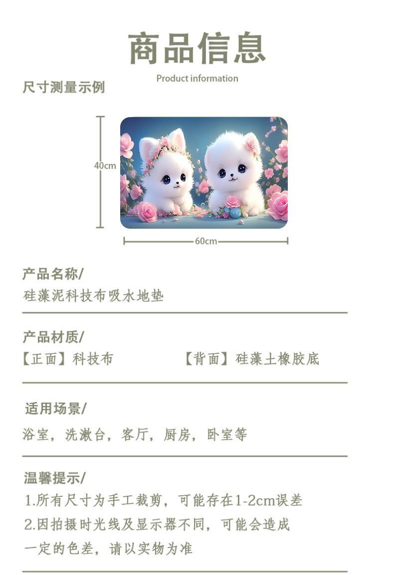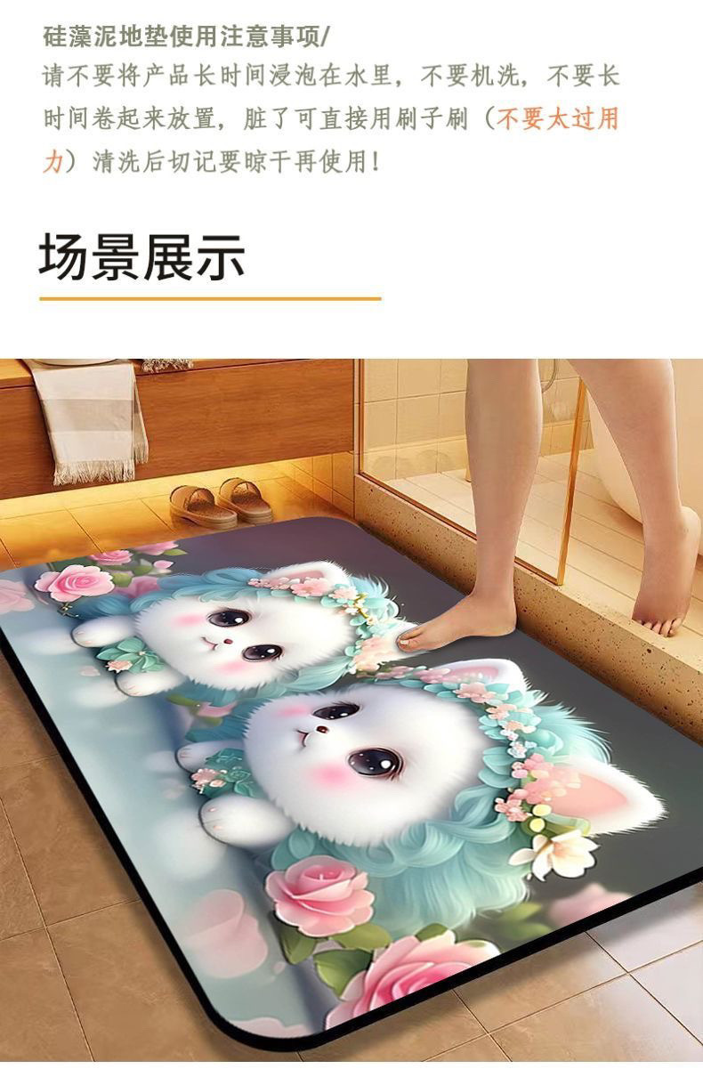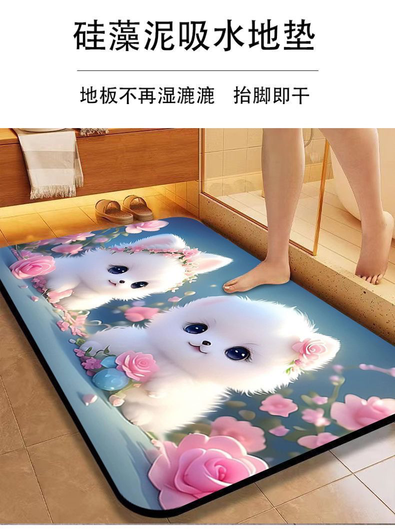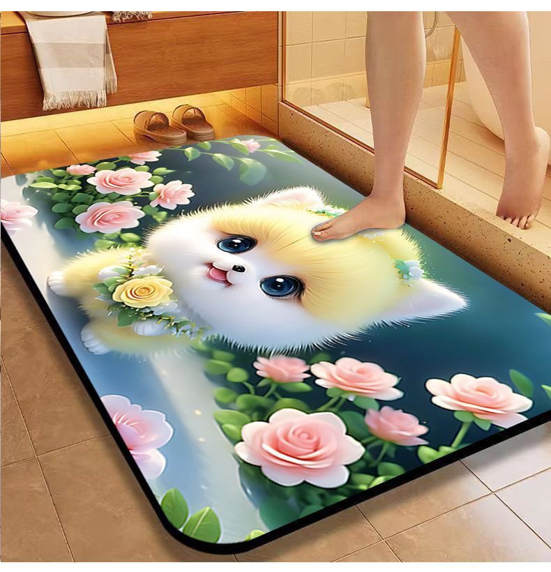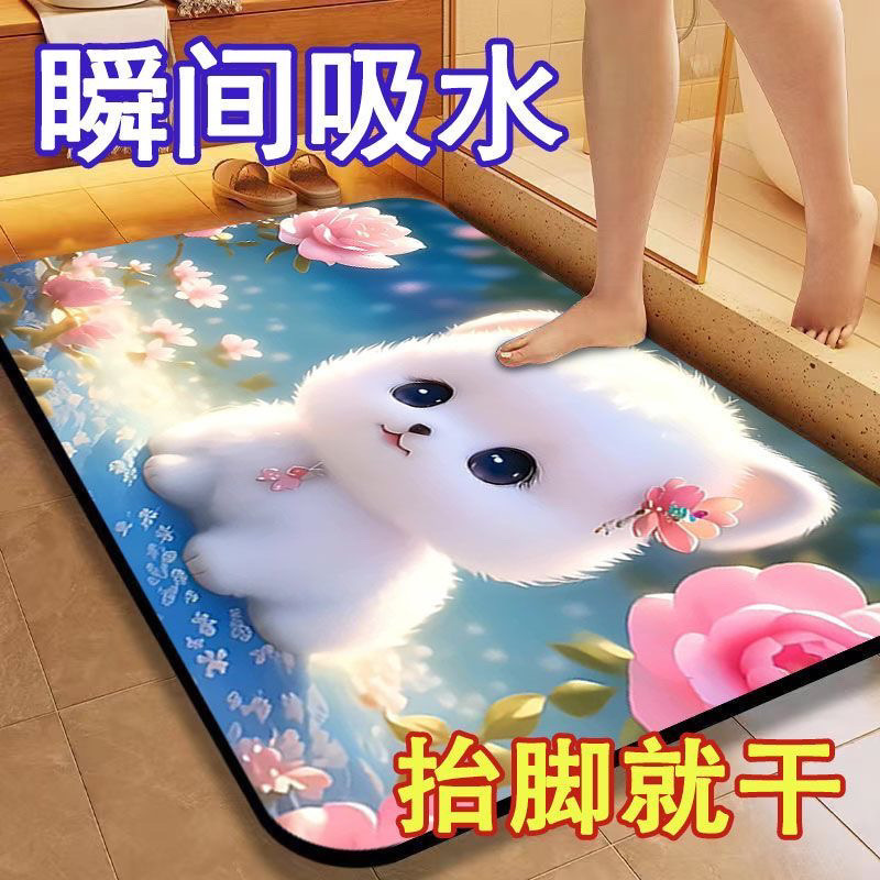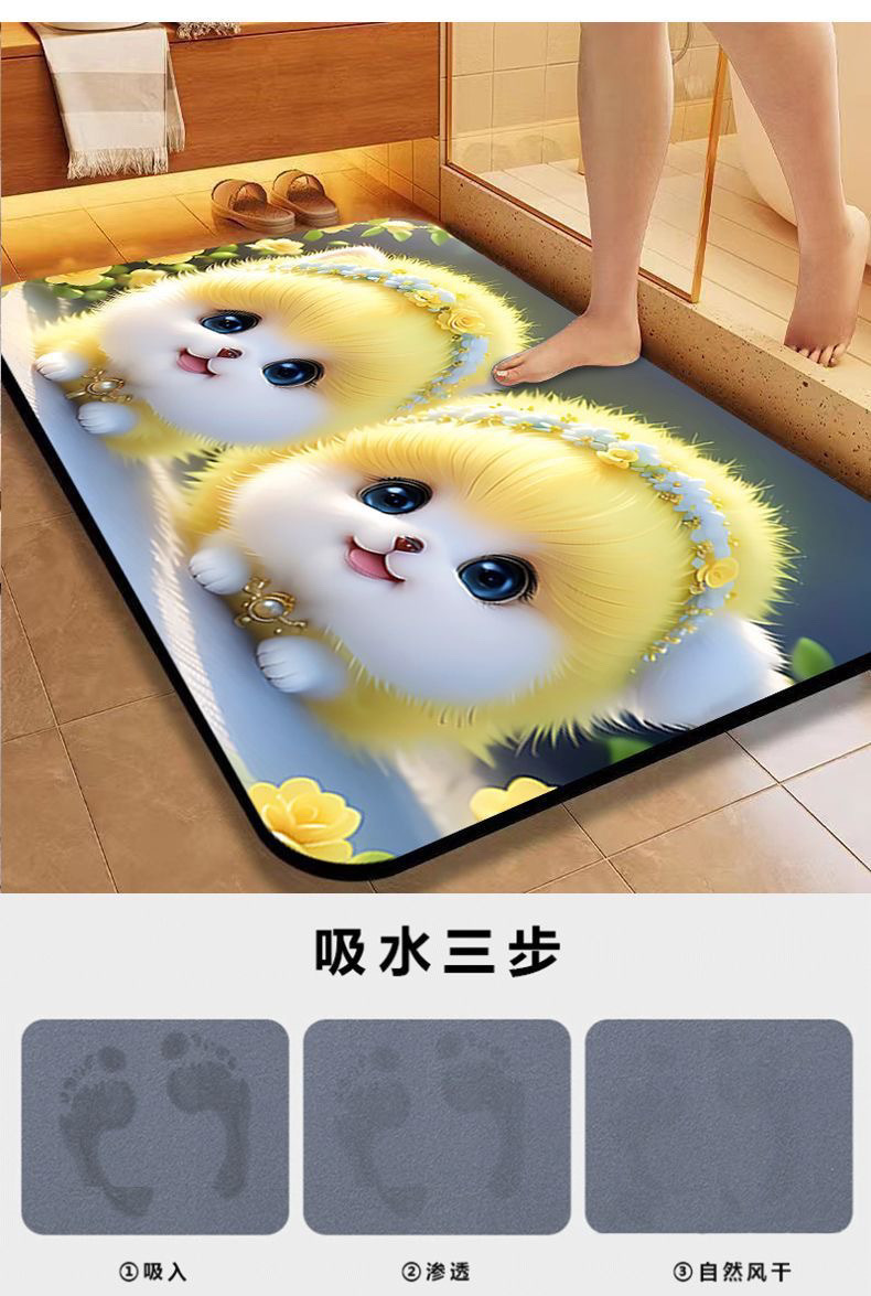 [초 흡수] 귀여운 강아지 만화 Diatom 바닥 매트 재미있는 화장실 화장실 욕실 문 미끄럼 방지 발 매트스토어 가기