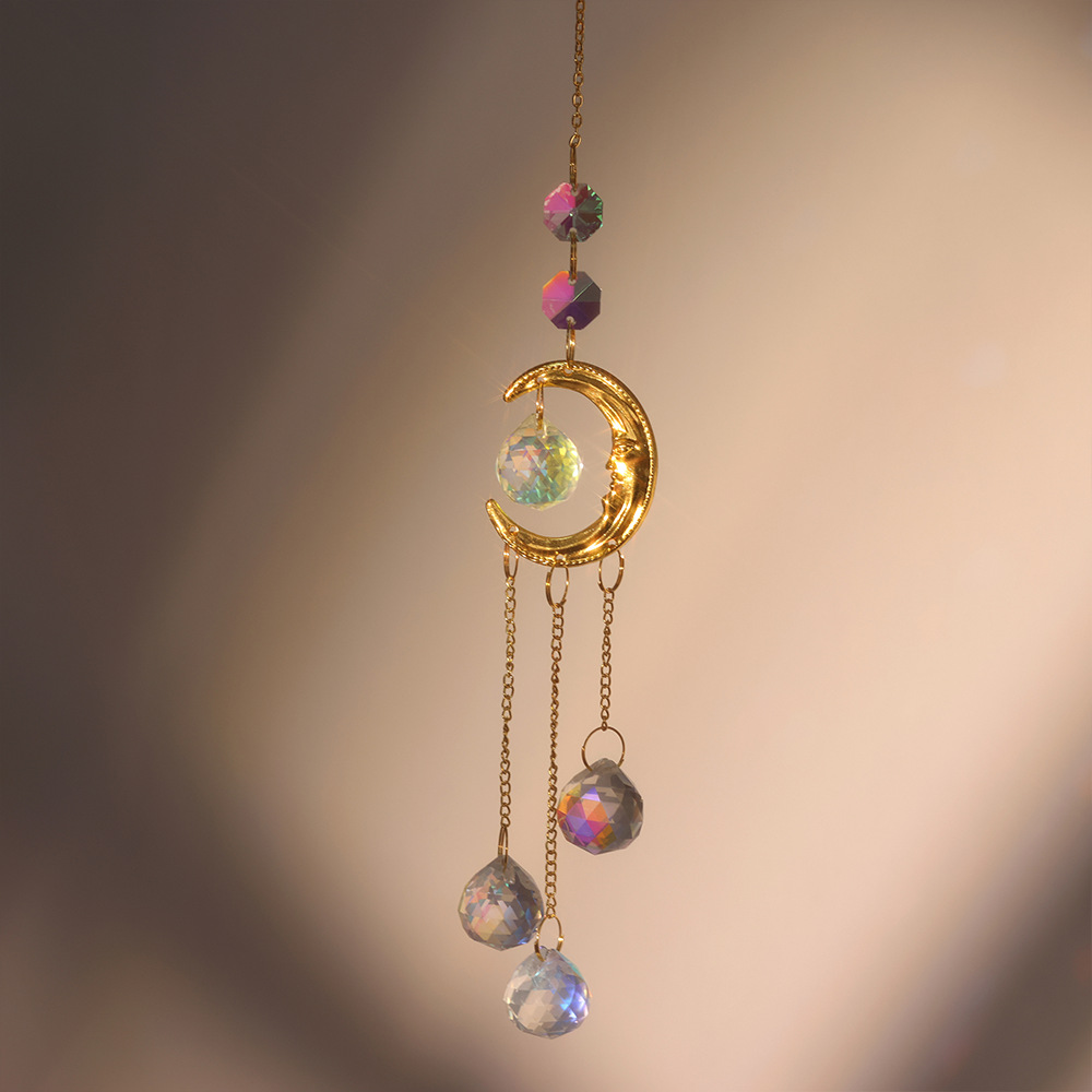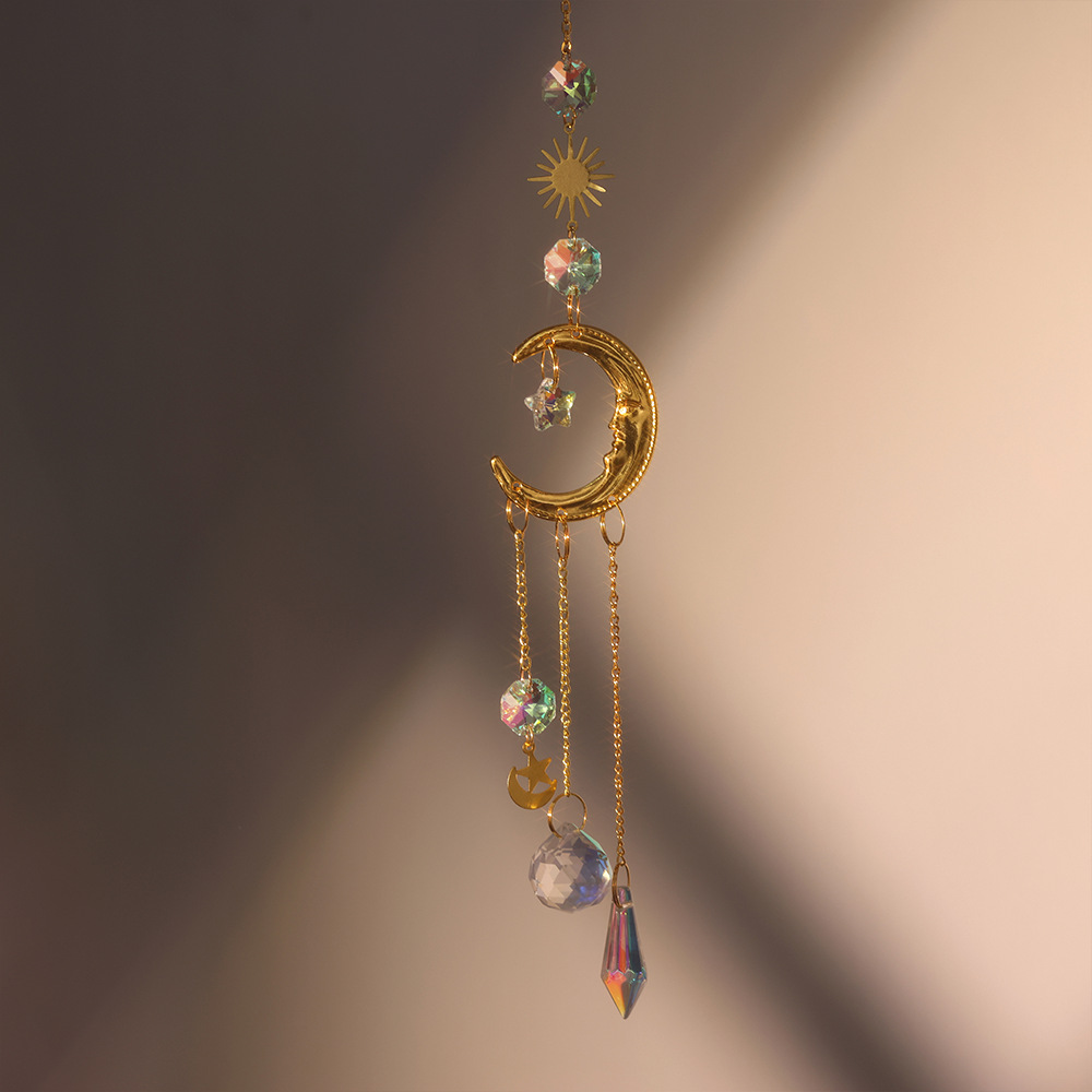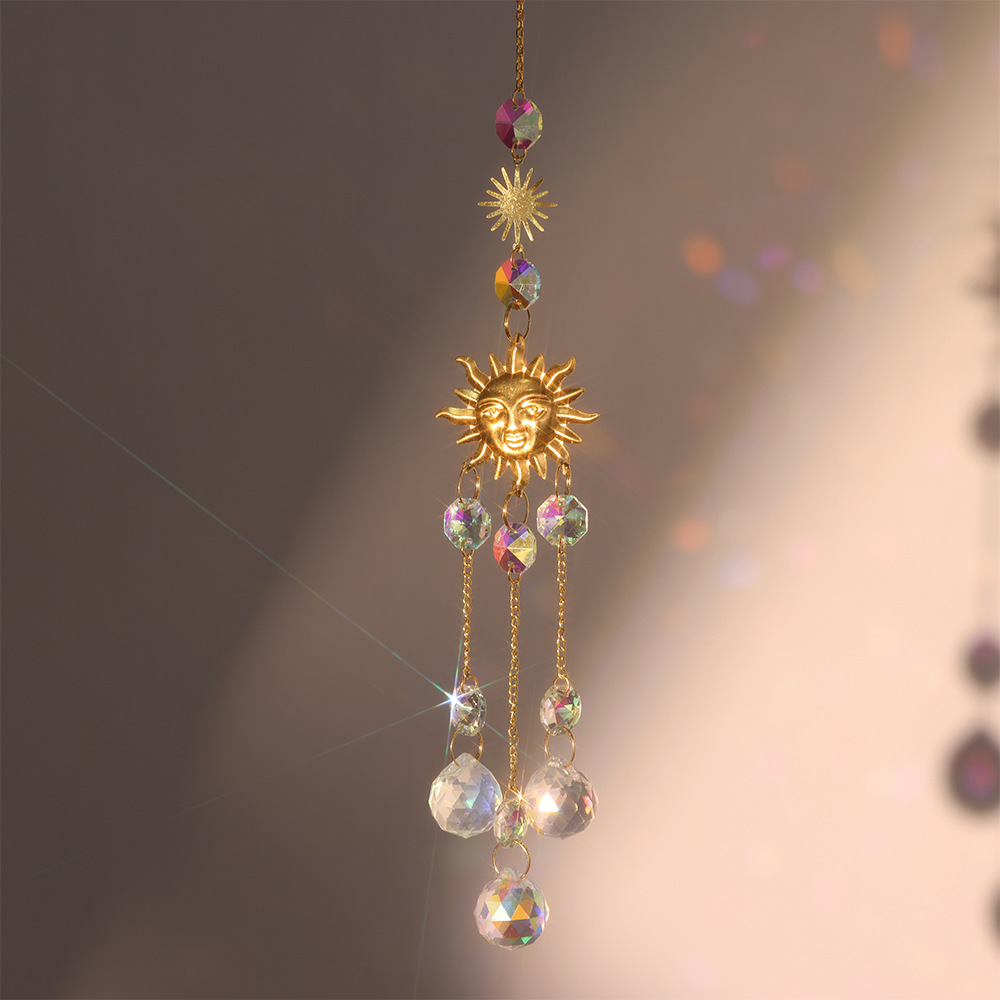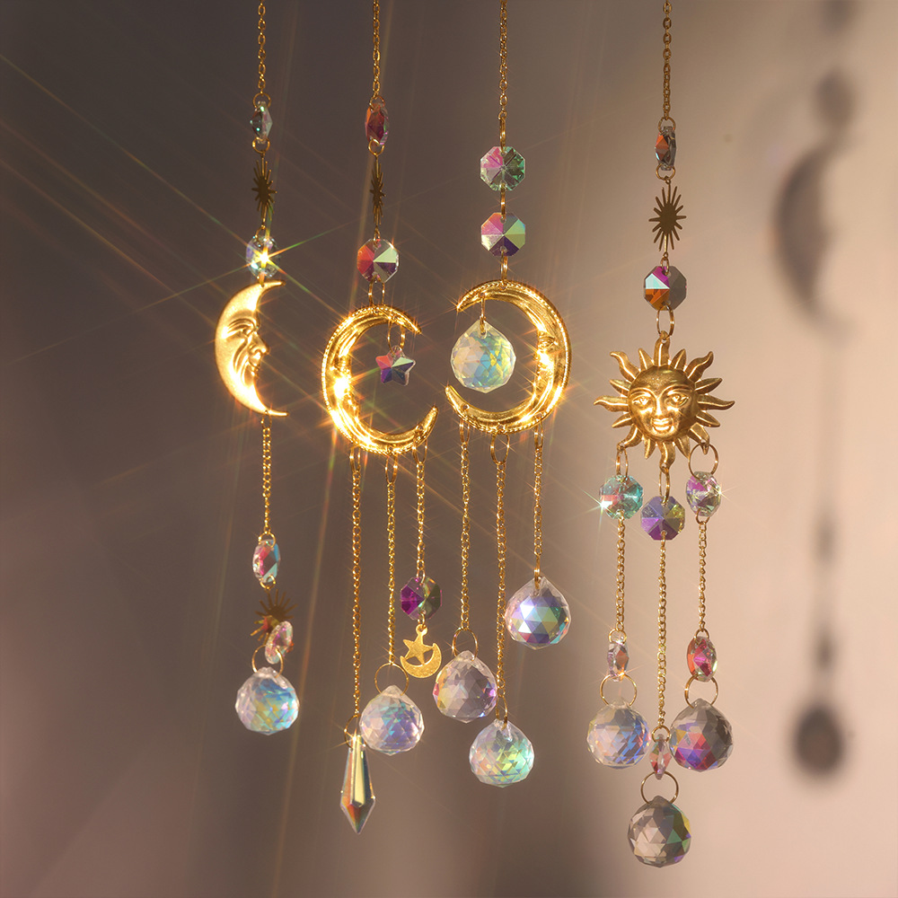 국경 간 간단한 태양 포수 크리스탈 바람 벨 태양 달 크리스탈 라이트 수집가 정원 장식 실내 장식