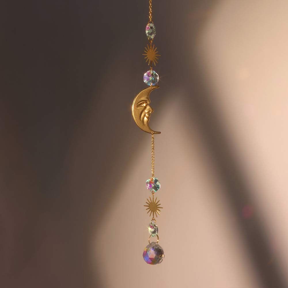 국경 간 간단한 태양 포수 크리스탈 바람 벨 태양 달 크리스탈 라이트 수집가 정원 장식 실내 장식스토어 가기