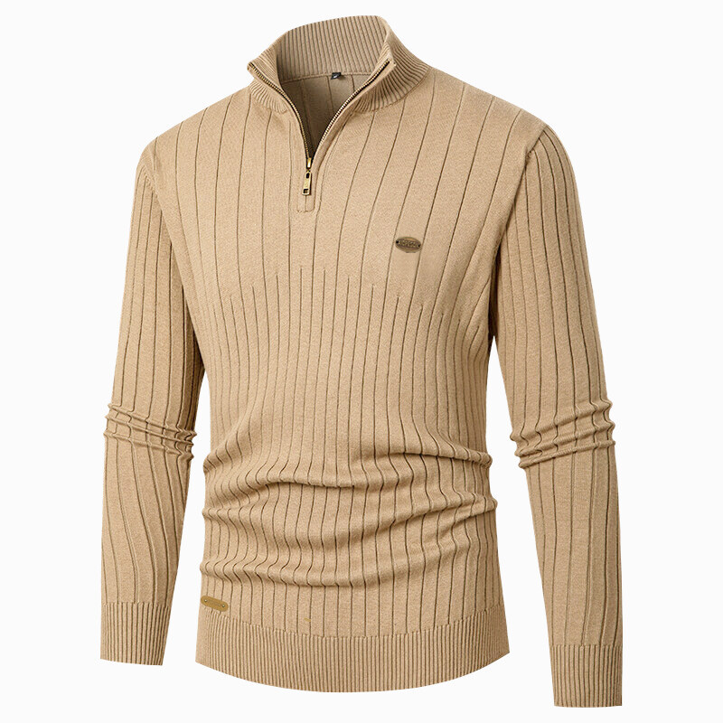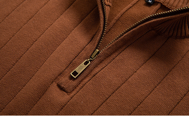 국경 간 대외 무역 유럽과 미국 남성복 남성용 니트웨어 재킷 핏 스트립 수직 칼라 반 지퍼 긴팔 두꺼운 풀오버 스웨터