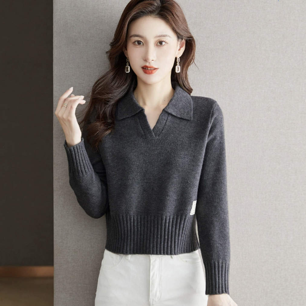 짧은 짧은 높은 허리 유행 서양 스타일 니트 최고 여성베이스 셔츠 가을 2024 새로운 빨간 스웨터스토어 가기