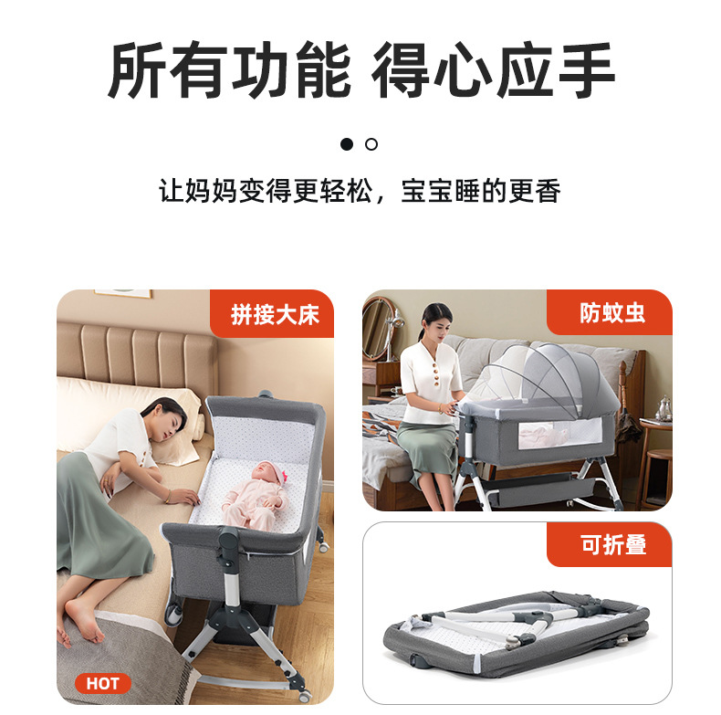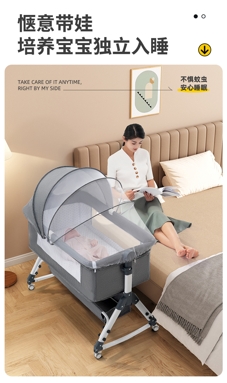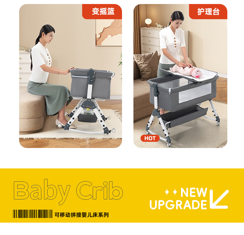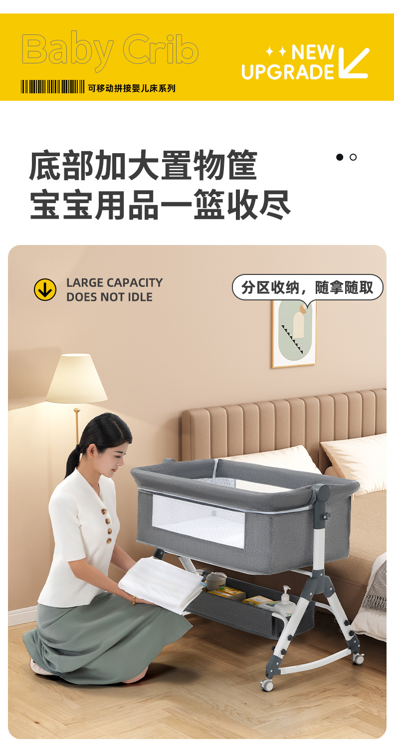 이동식 아기 침대, 휴대용 2-in-1 접이식 다기능 아기 침대, 신생아용 침대와 결합된 대형 침대스토어 가기