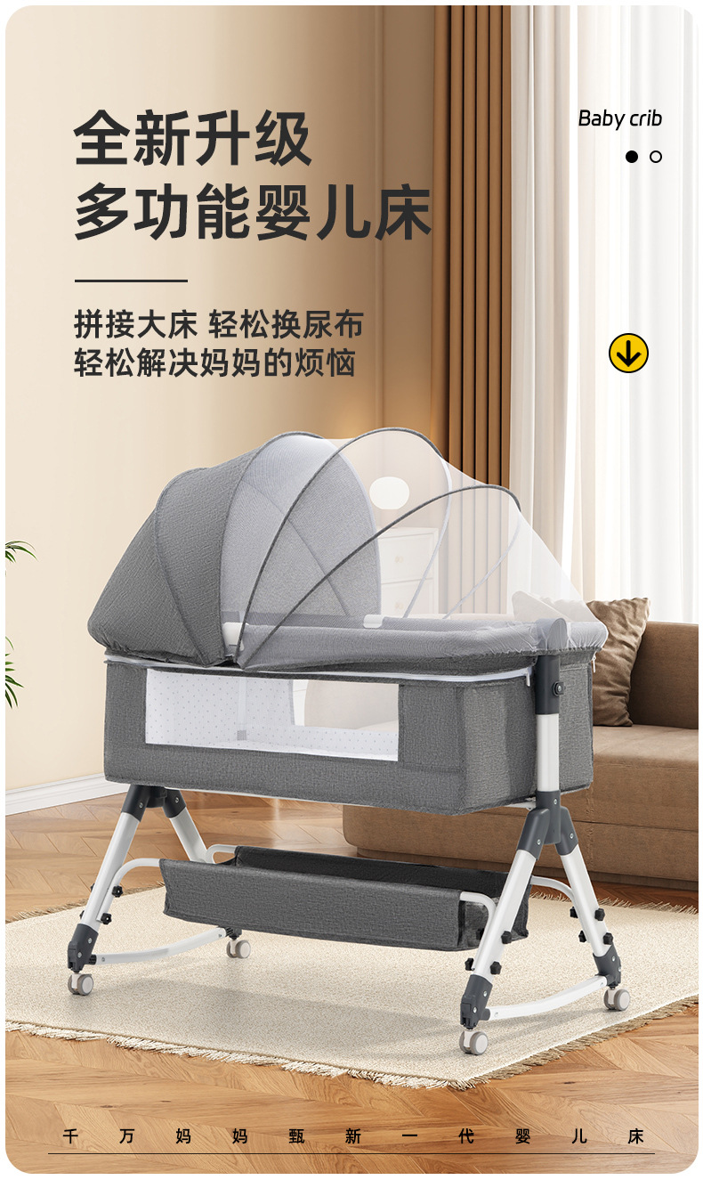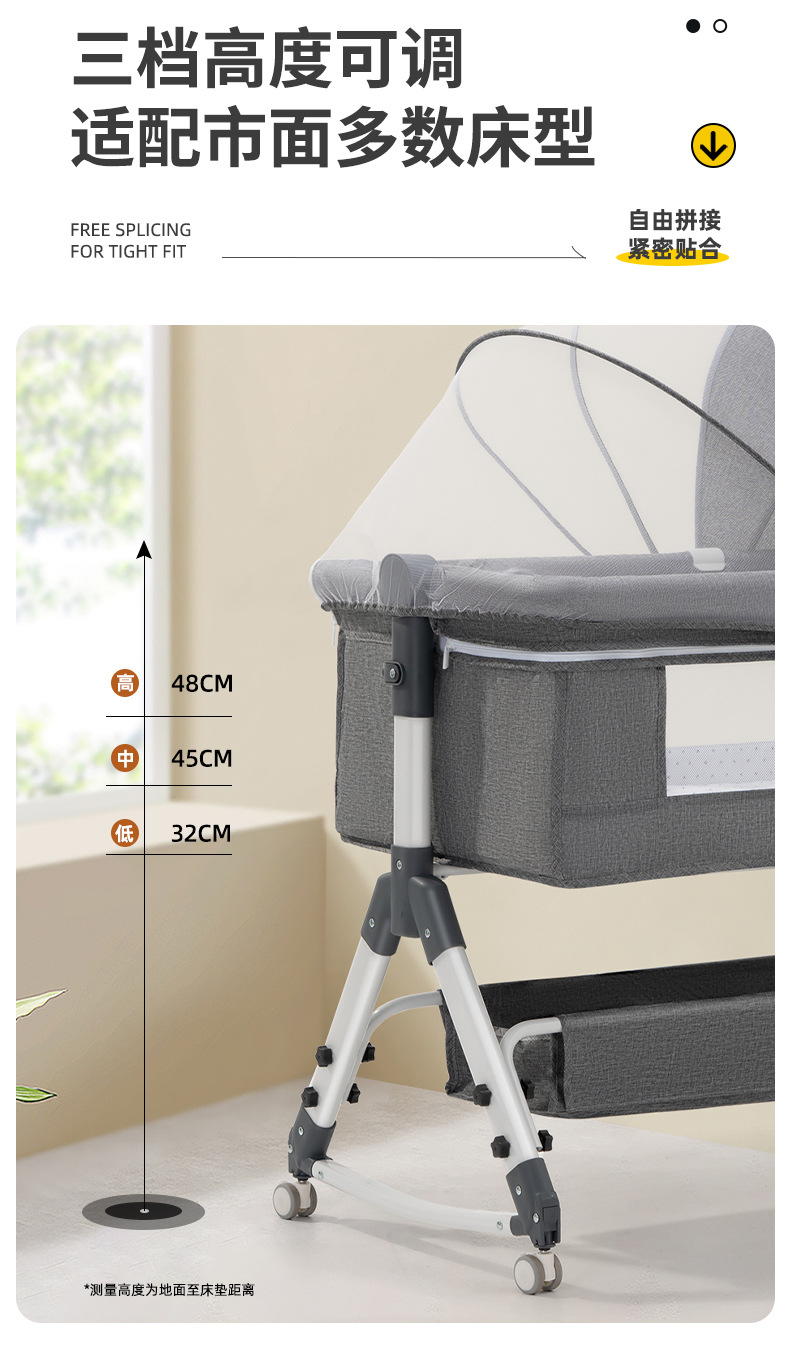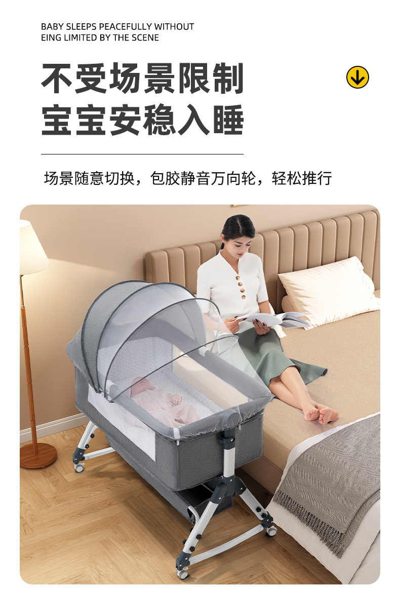 이동식 아기 침대, 휴대용 2-in-1 접이식 다기능 아기 침대, 신생아용 침대와 결합된 대형 침대스토어 가기