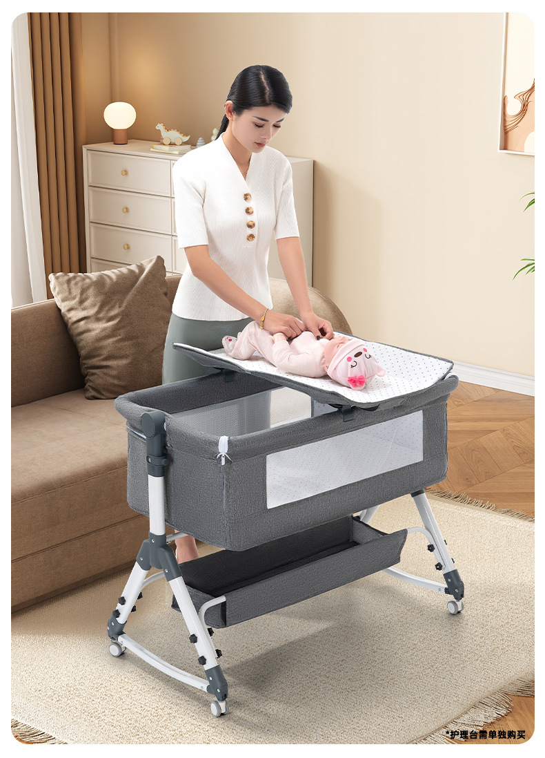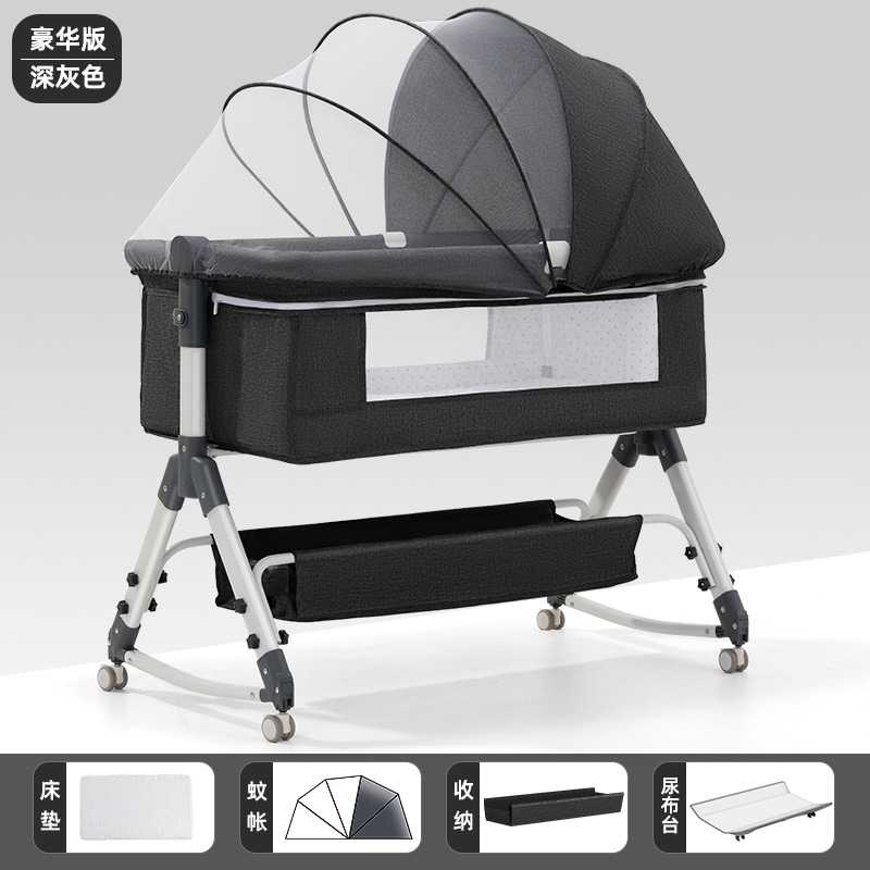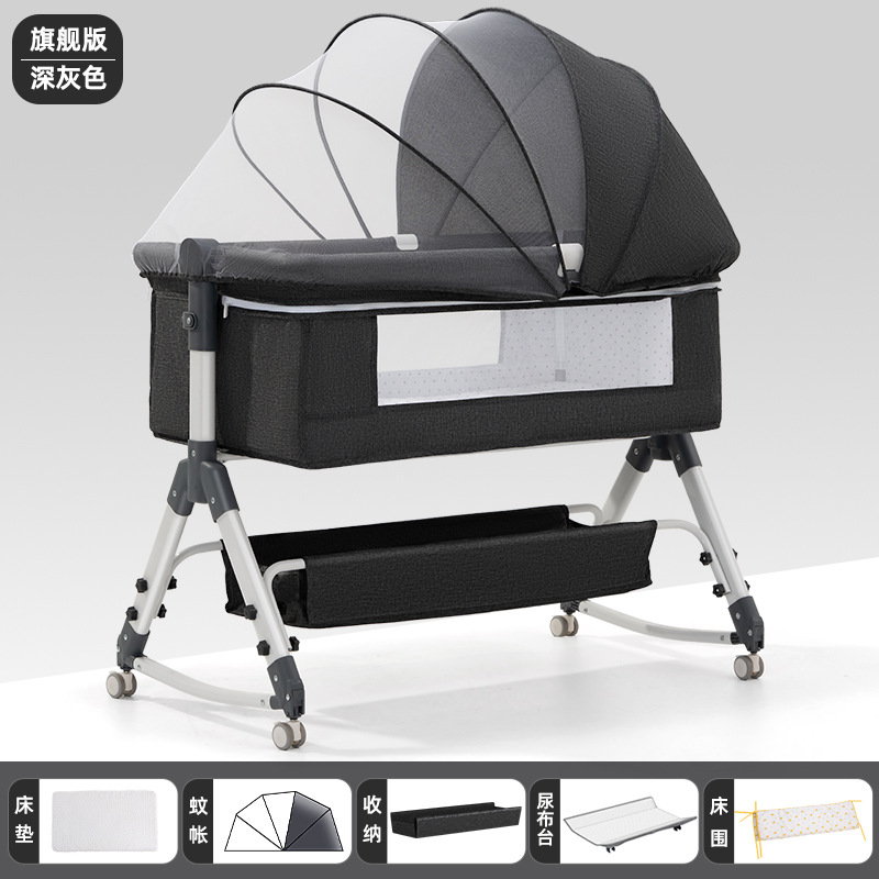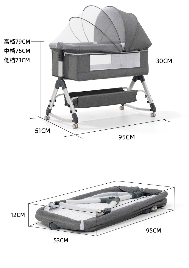 • M618-다크그레이-플래그십모델+모기장+매트리스+플랜트블루+기저귀대+침대사이드