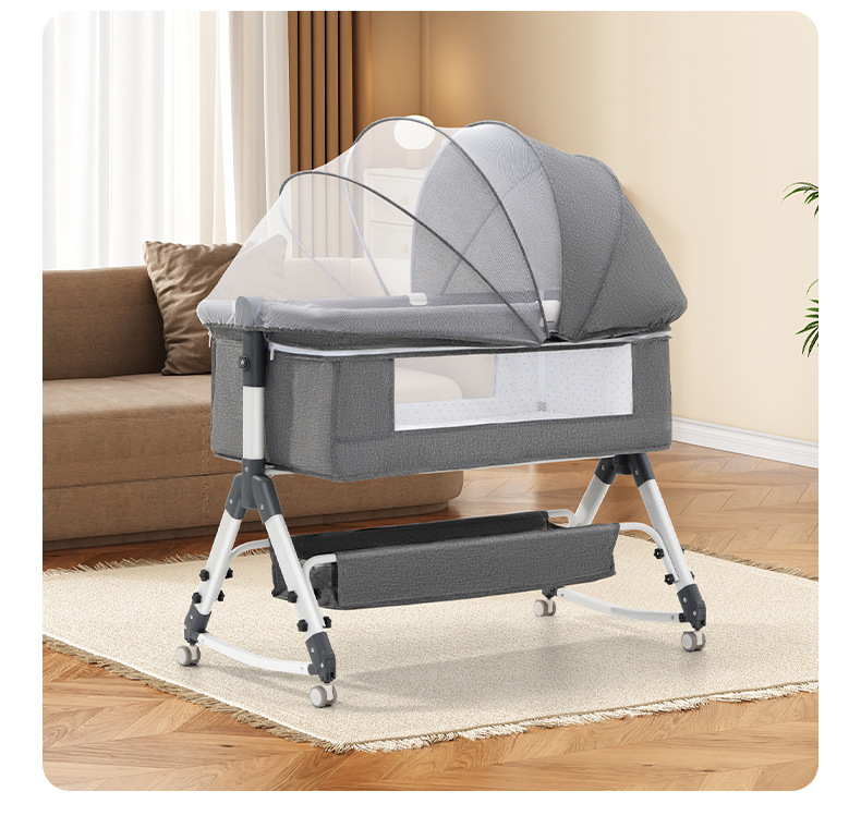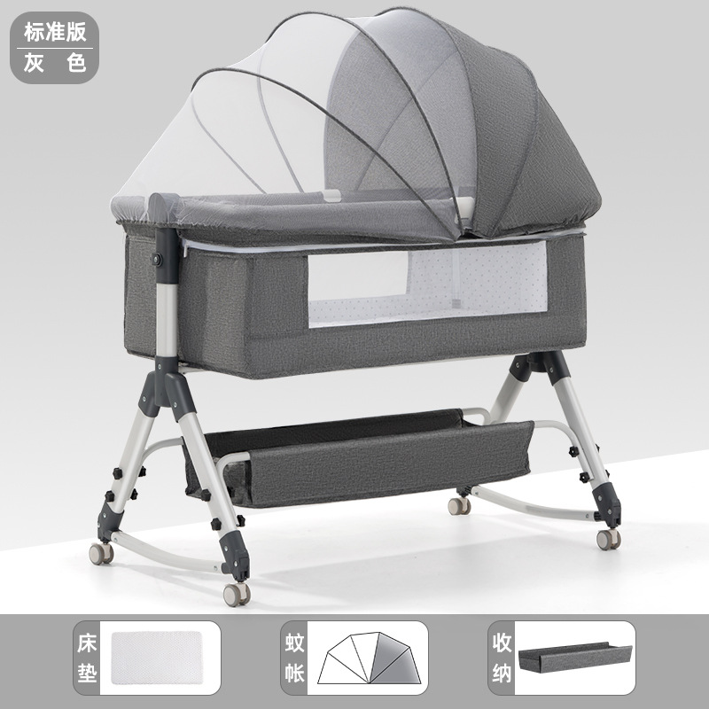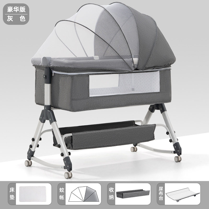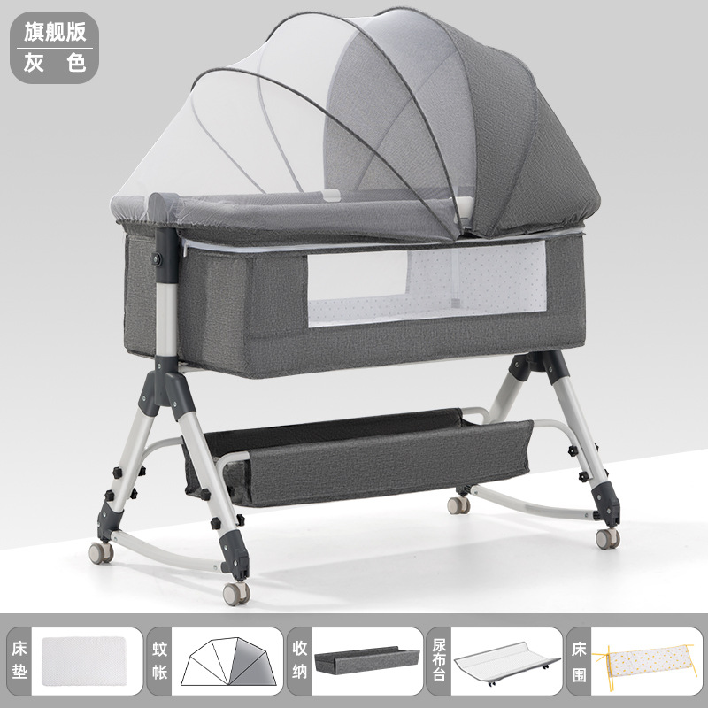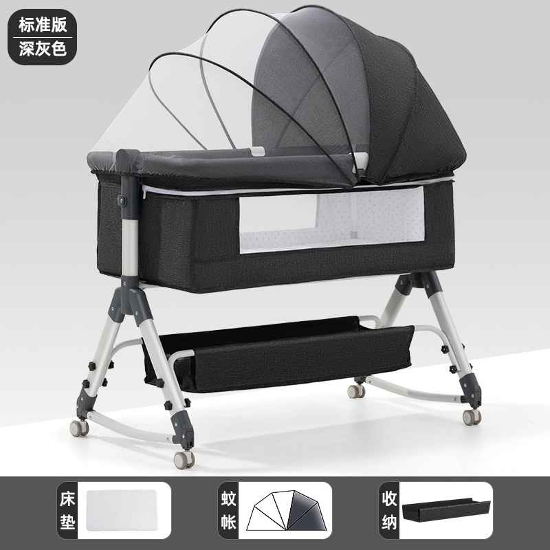 • M618-다크그레이-플래그십모델+모기장+매트리스+플랜트블루+기저귀대+침대사이드