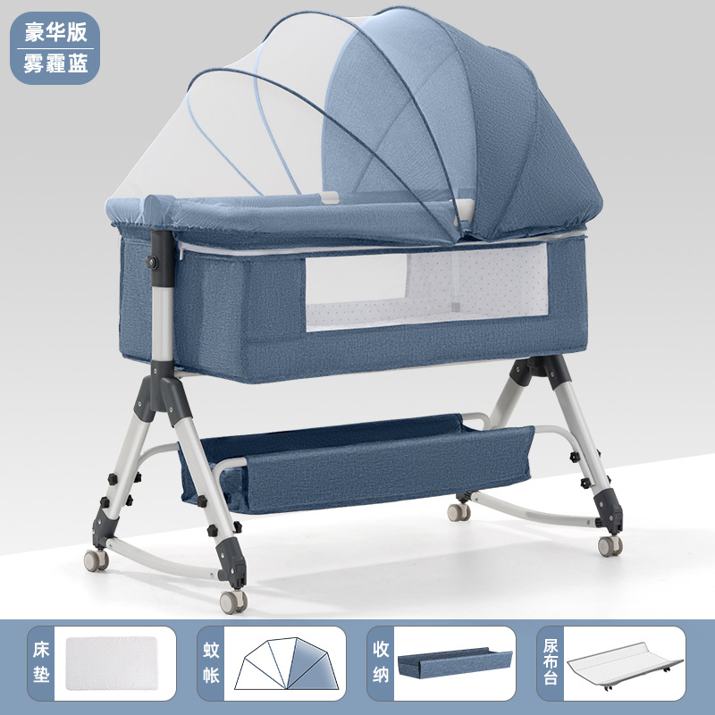• M618-헤이즈블루-플래그십모델+모기장+매트리스+플랜트블루+기저귀대+침대사이드