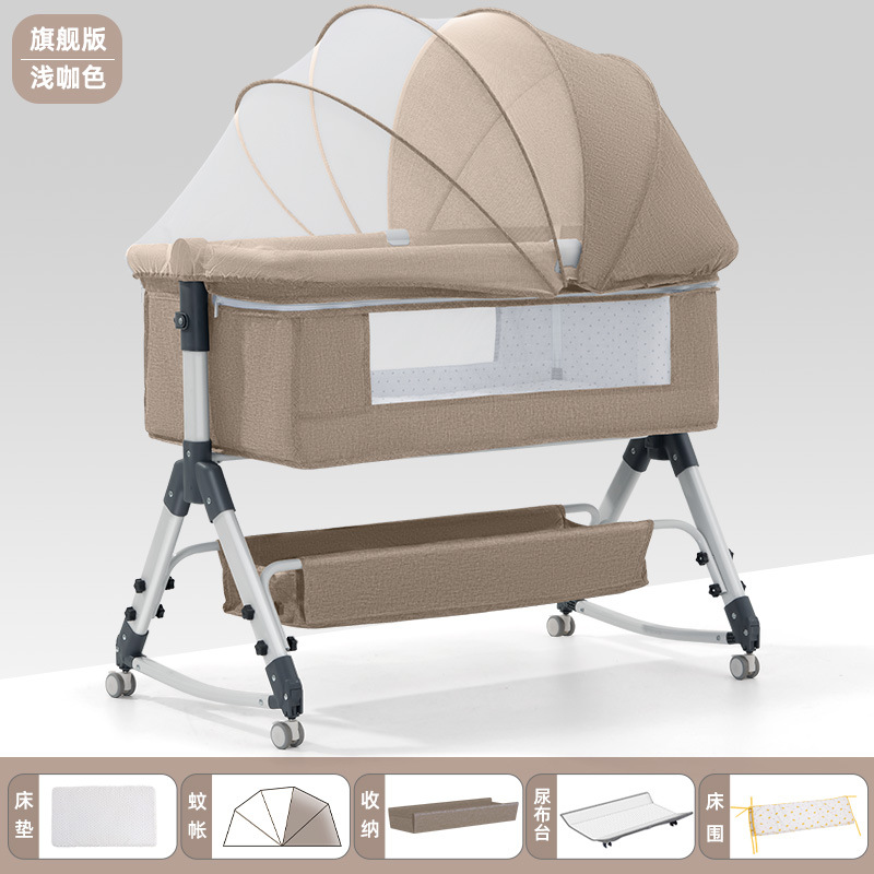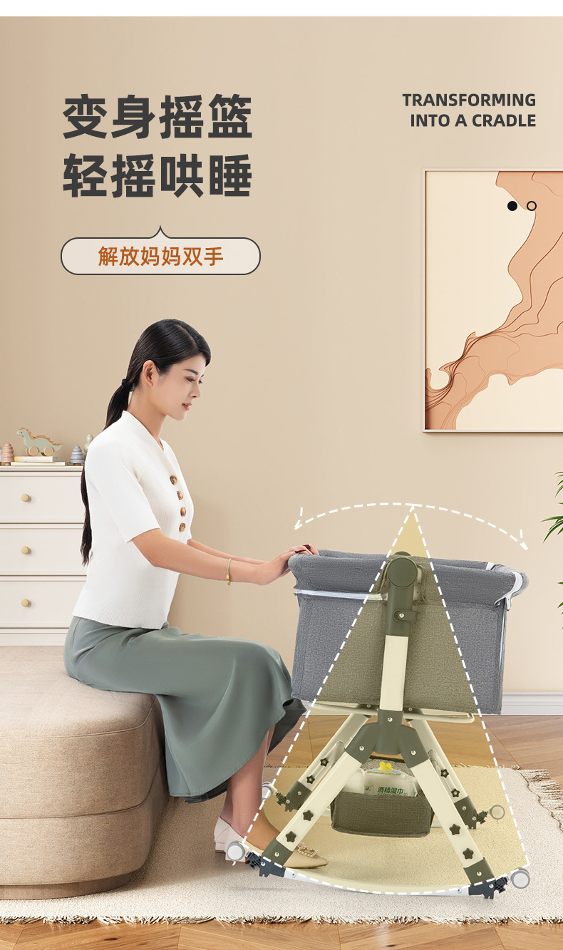 • M618 - 카키색 - 플래그십 모델 + 모기장 + 매트리스 + 플랜트 블루 + 기저귀 교환대 + 침대 범퍼