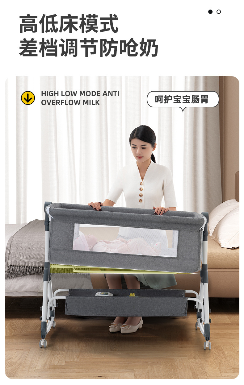 이동식 아기 침대, 휴대용 2-in-1 접이식 다기능 아기 침대, 신생아용 침대와 결합된 대형 침대