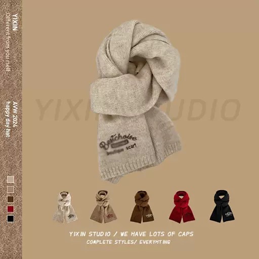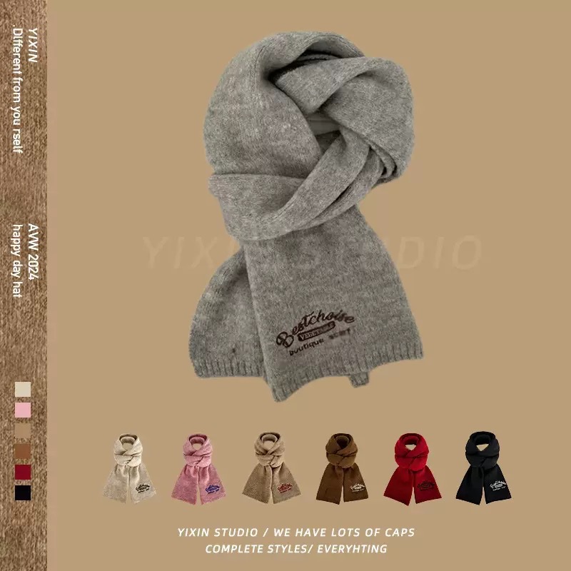 새로운 솔리드 컬러 니트 따뜻한 분위기 스카프 지구 컬러 베이지 카멜 올 매치 간단한 커플 스카프 겨울