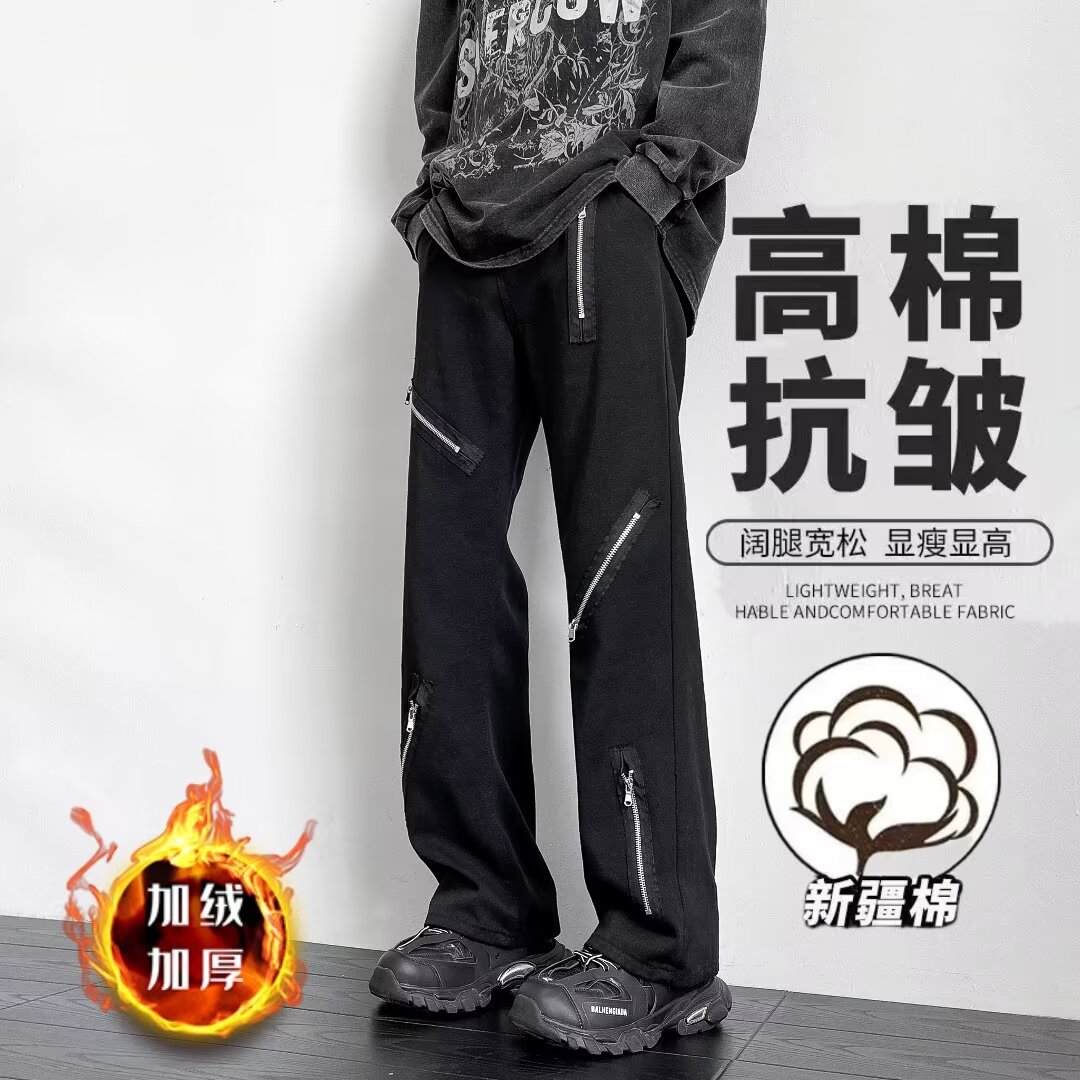 클린핏 청바지 남성용 블랙 부츠컷 팬츠 아메리칸 바이브 하이 스트리트 슬림 루즈 캐주얼 스트레이트 팬츠스토어 가기