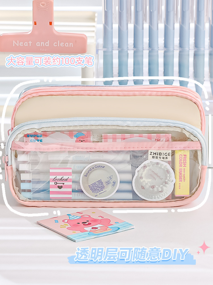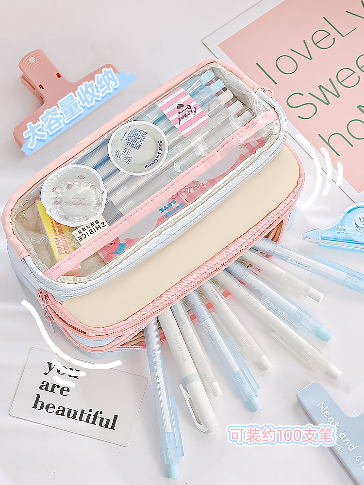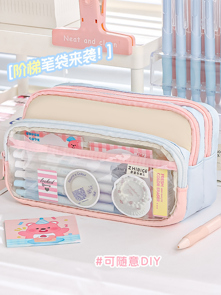 Colorblock o00 연필 케이스 투명한 대용량 문구 가방 창조적 인 다기능 문구 가방 Ins 일본 스타일 높은 색상 가치