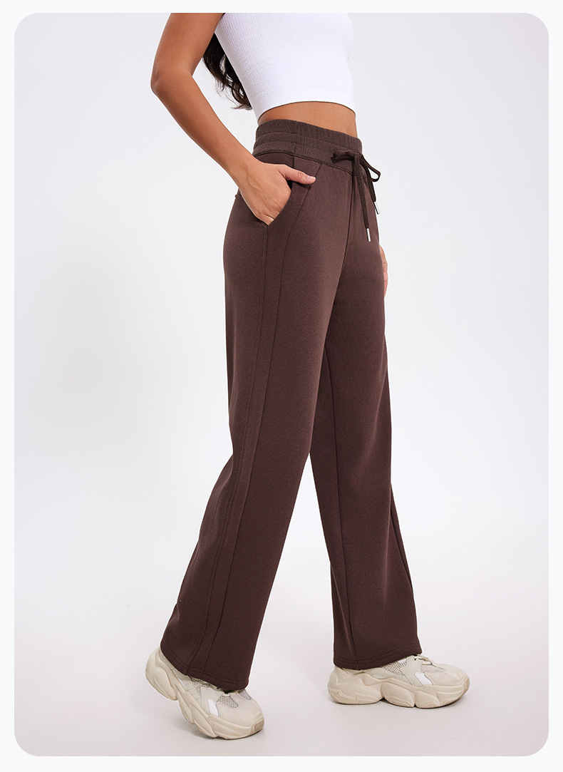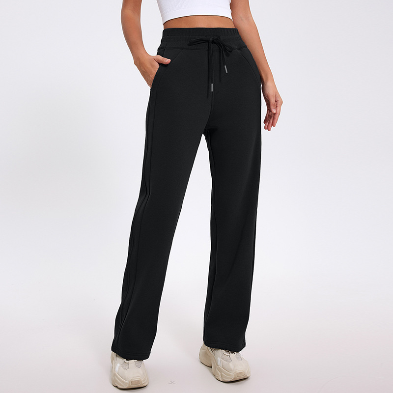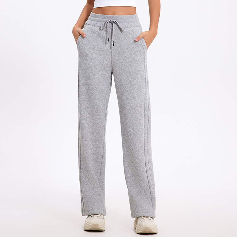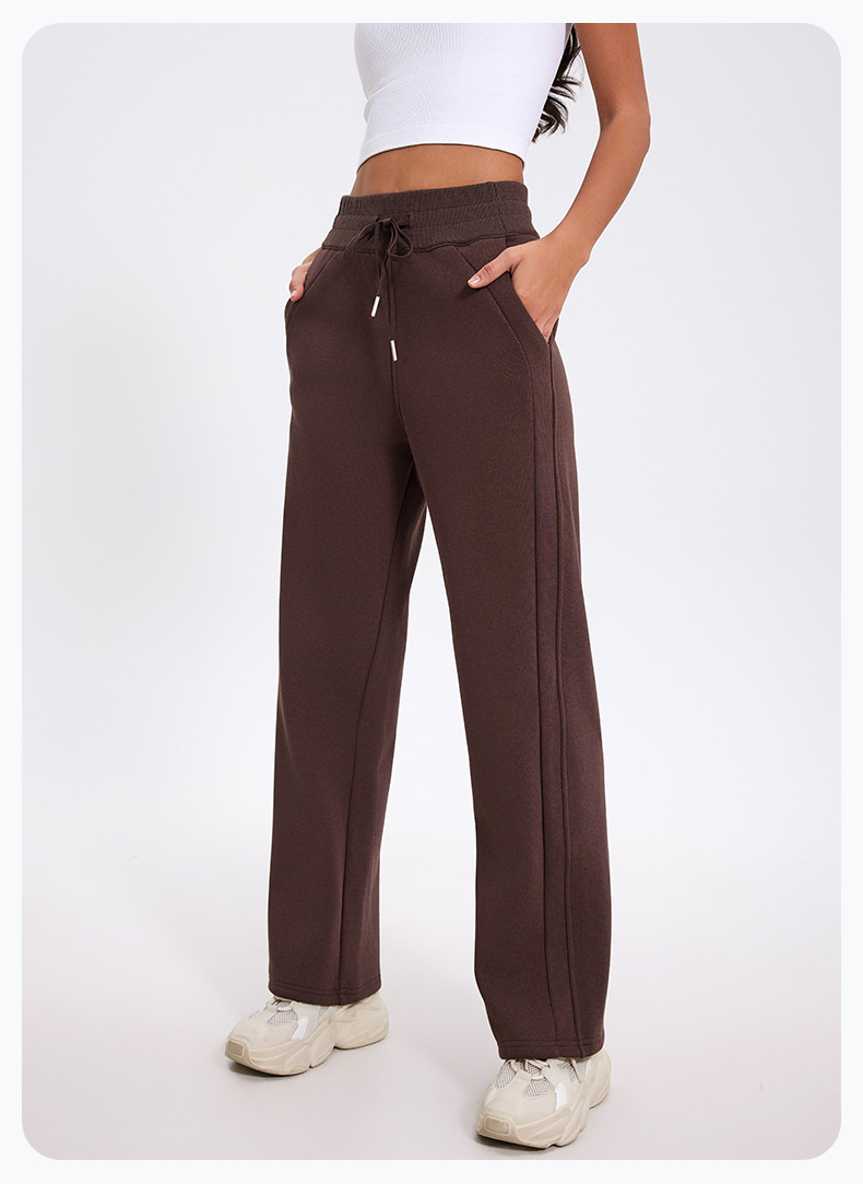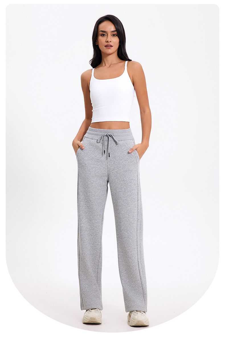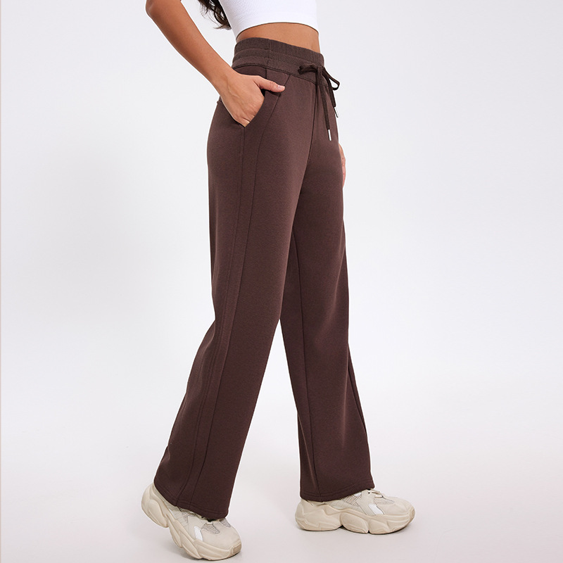 더 나은 2024 가을과 겨울 기모 캐주얼 바지 높은 허리 드로 스트링 느슨한 스포츠 바지 넓은 다리 바지 피트니스 바지 요가 의류스토어 가기