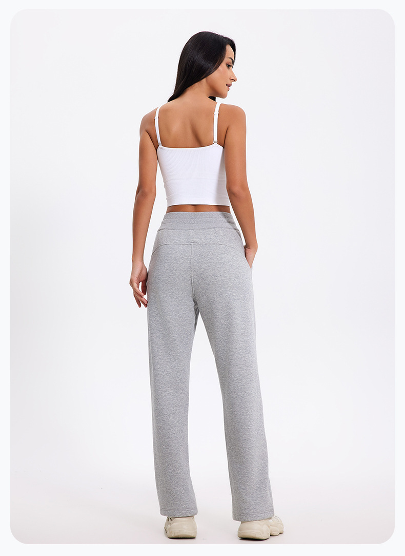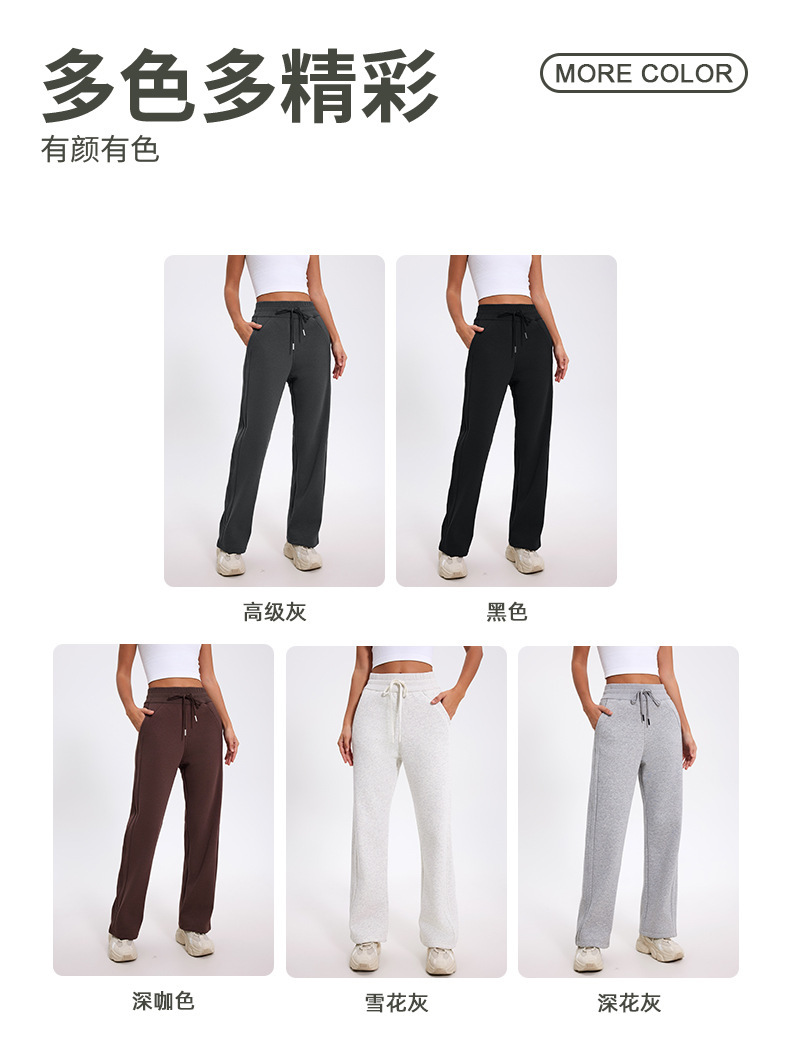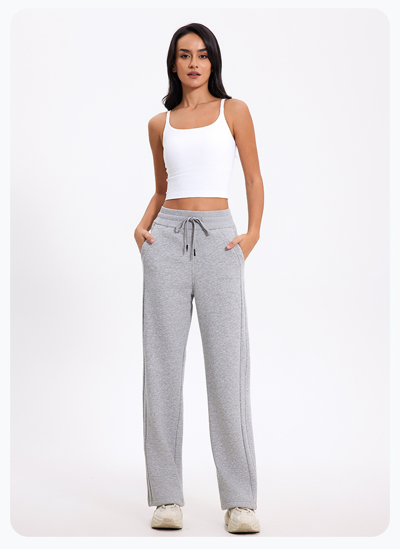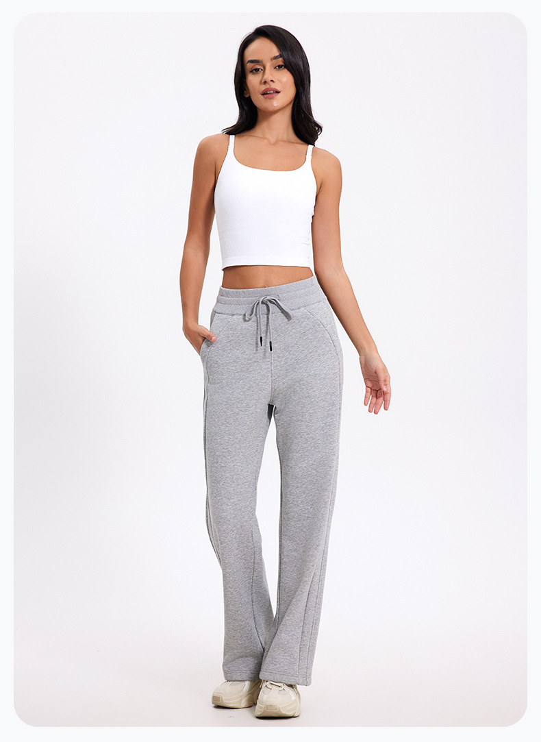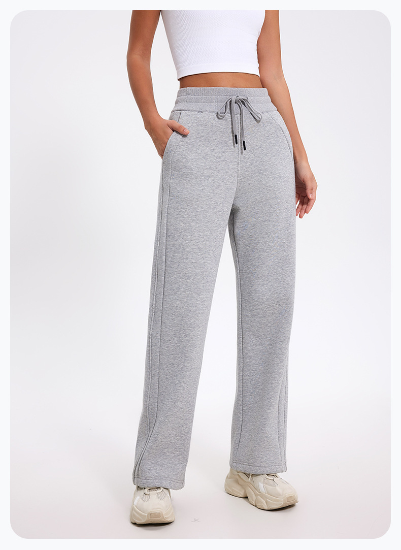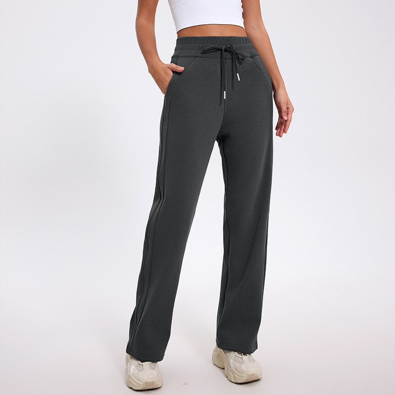 더 나은 2024 가을과 겨울 기모 캐주얼 바지 높은 허리 드로 스트링 느슨한 스포츠 바지 넓은 다리 바지 피트니스 바지 요가 의류스토어 가기