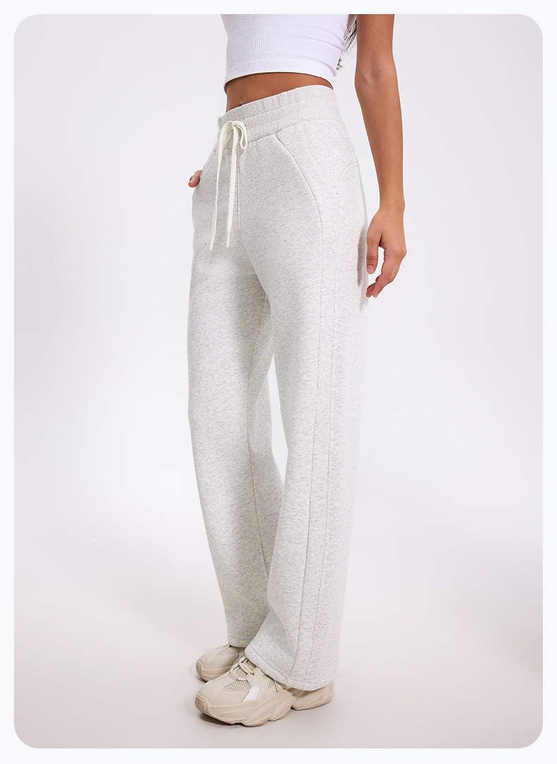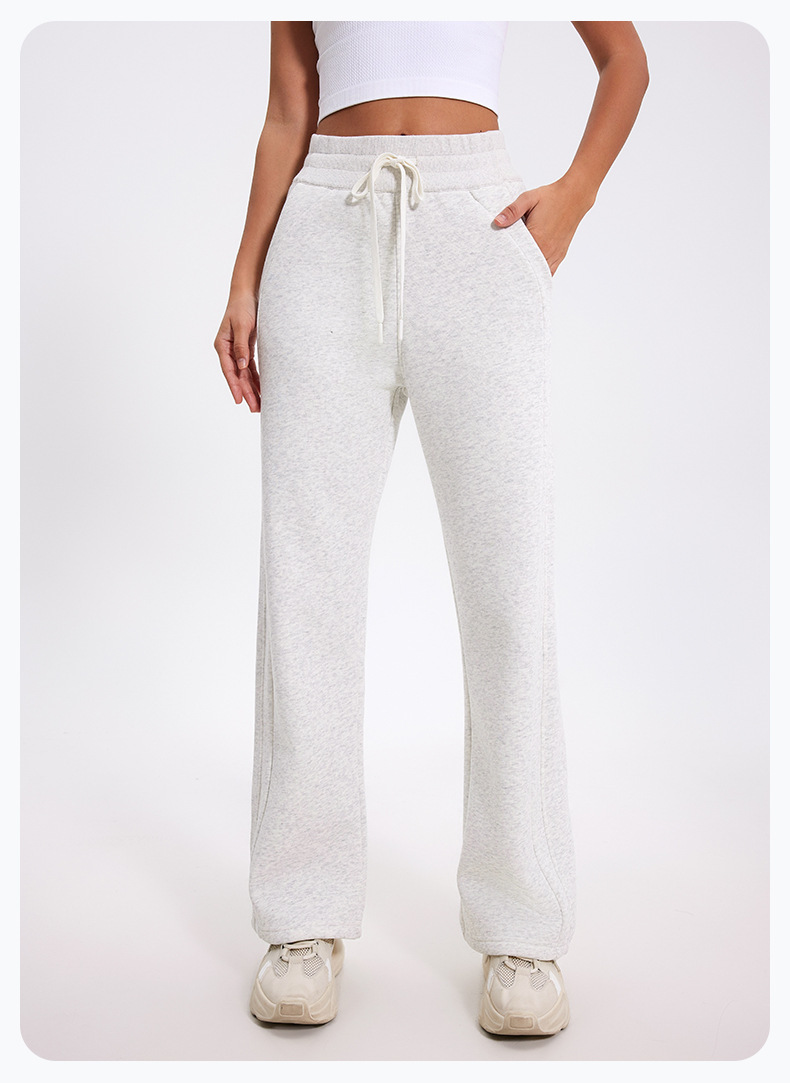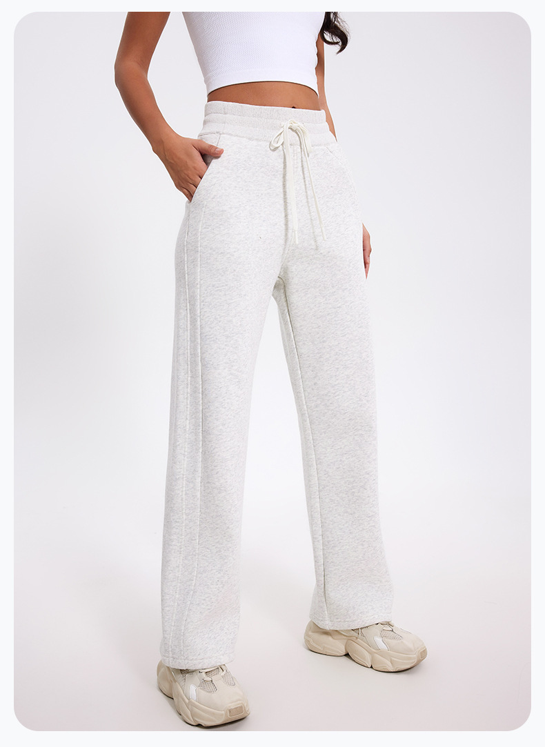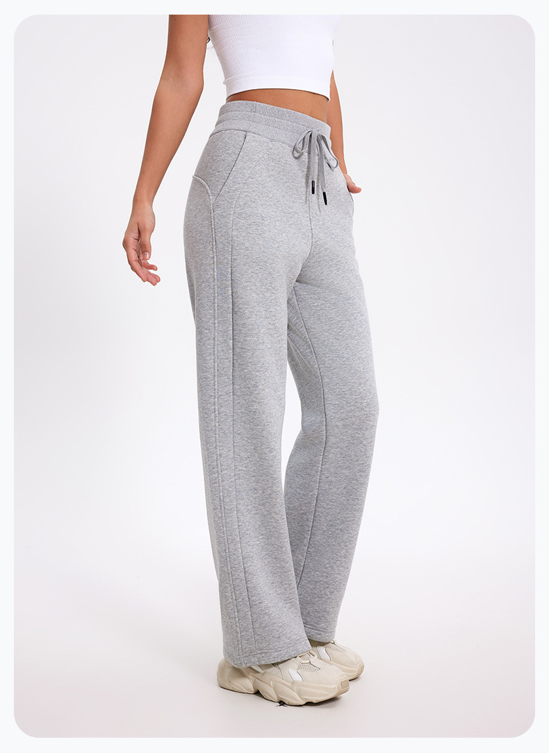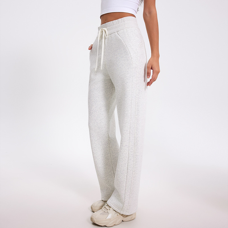 더 나은 2024 가을과 겨울 기모 캐주얼 바지 높은 허리 드로 스트링 느슨한 스포츠 바지 넓은 다리 바지 피트니스 바지 요가 의류