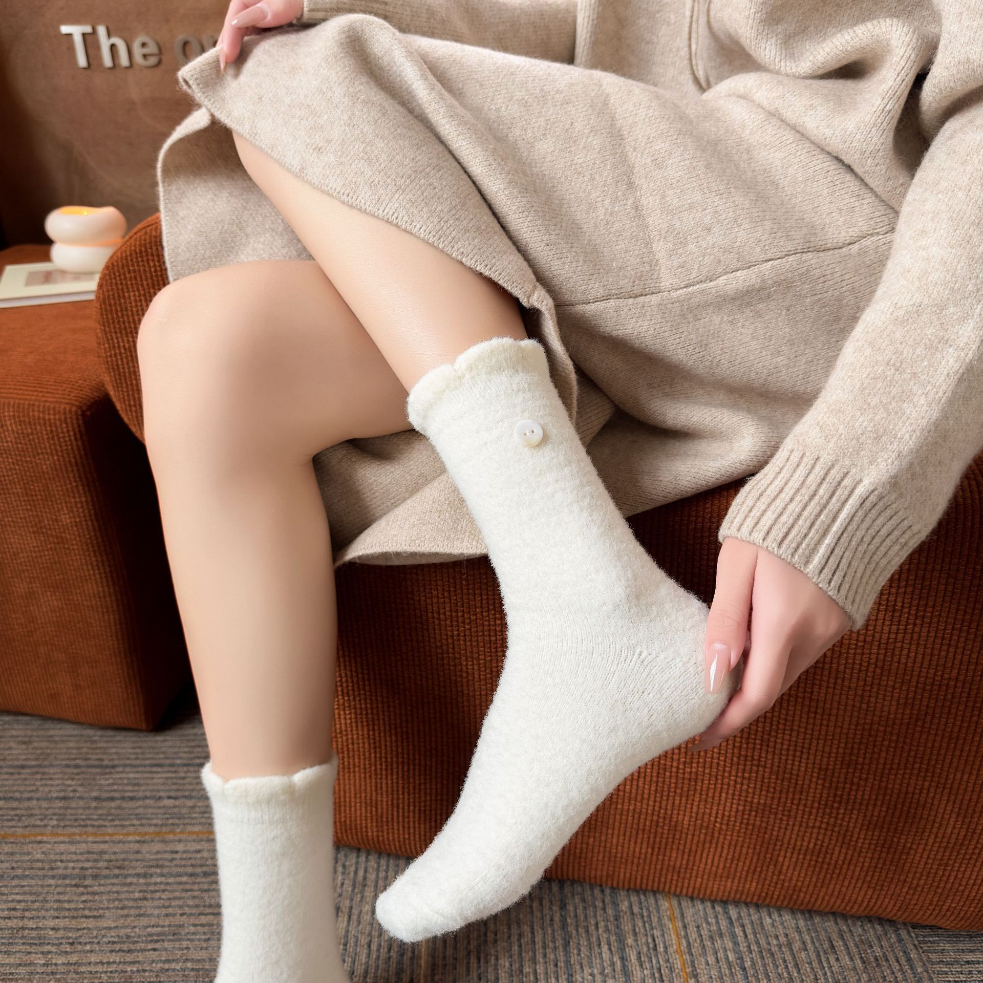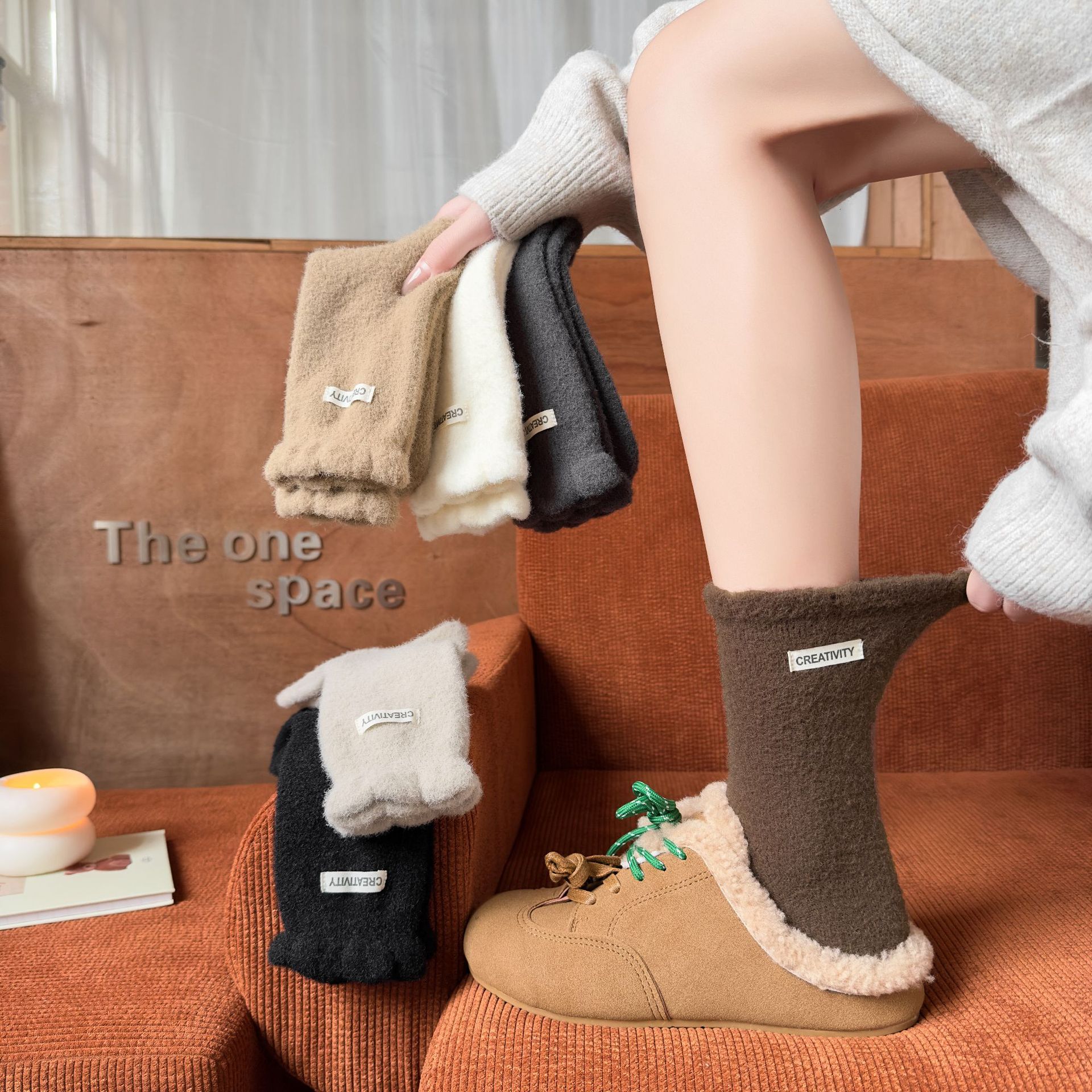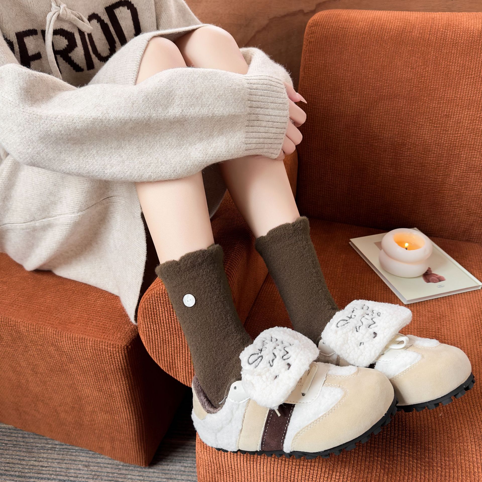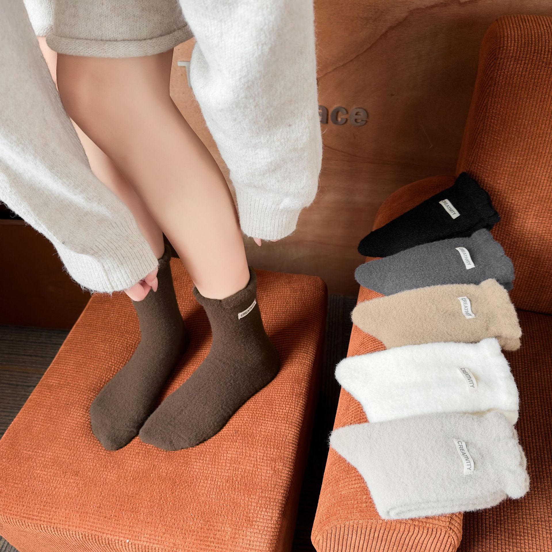 두꺼운 양말 여성용 미드 튜브 양말 가을과 겨울 맞춤형 천 라벨 따뜻한 달 양말 겨울 두꺼운 기모 스타킹 주지 양말스토어 가기