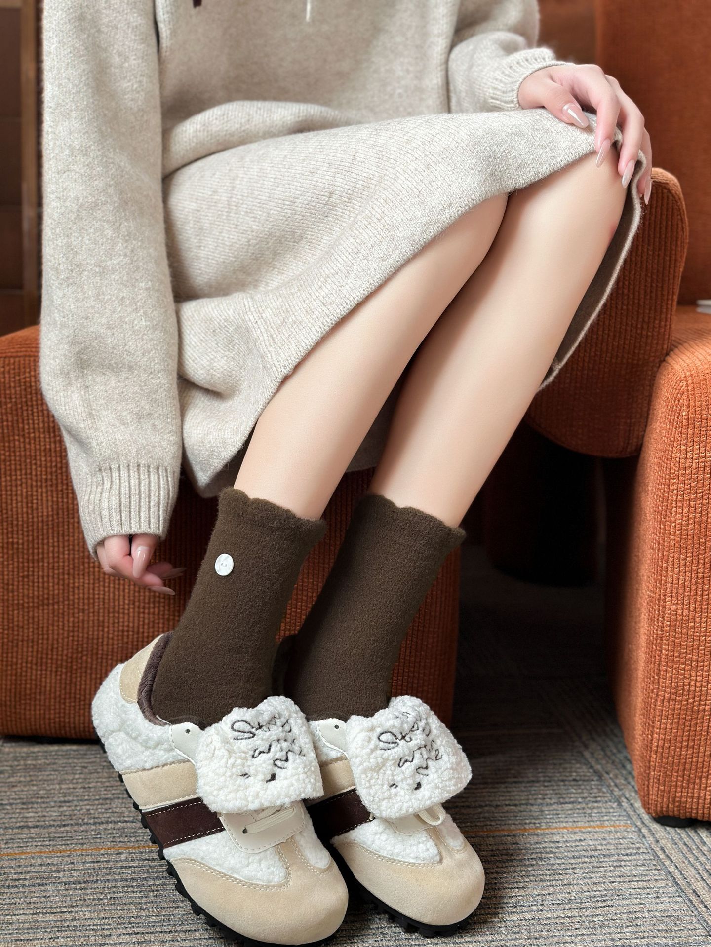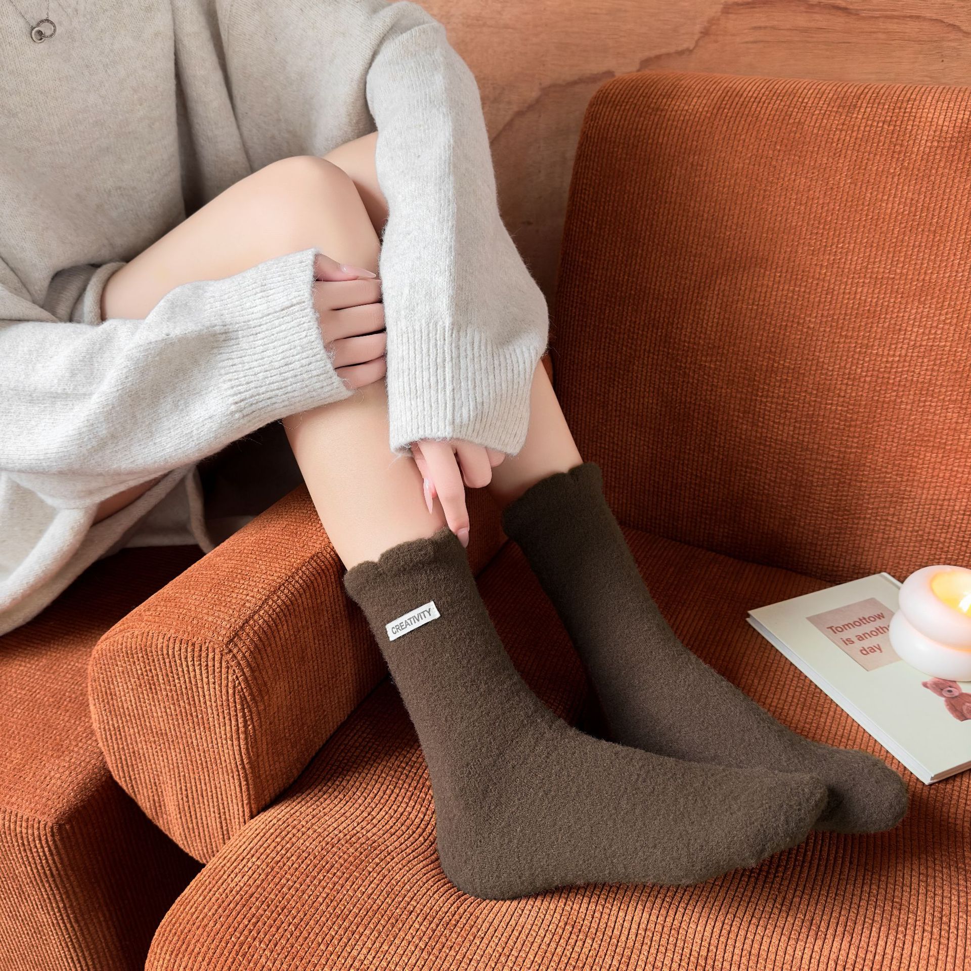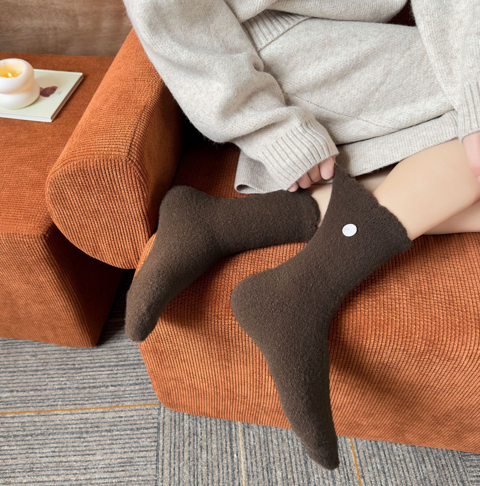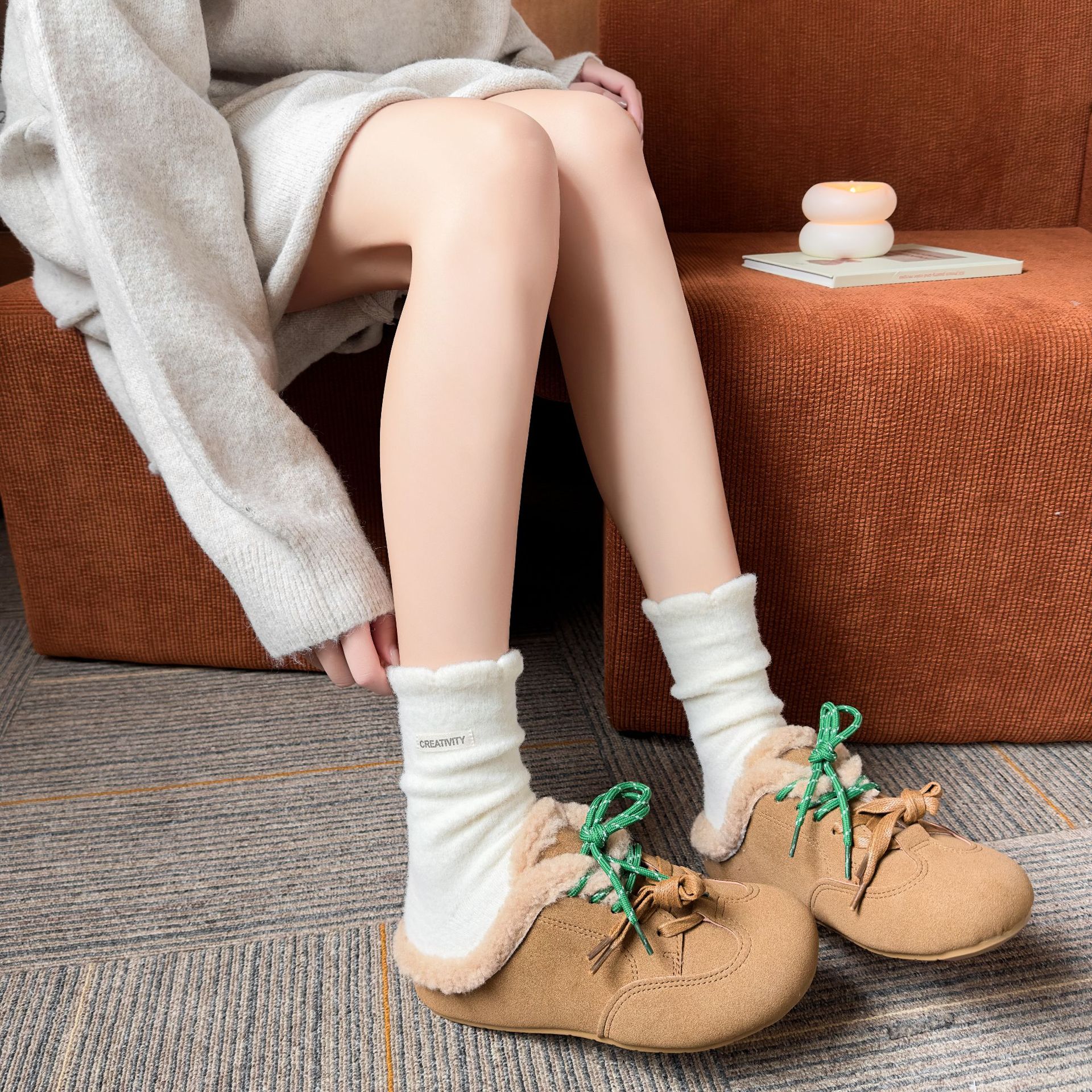 두꺼운 양말 여성용 미드 튜브 양말 가을과 겨울 맞춤형 천 라벨 따뜻한 달 양말 겨울 두꺼운 기모 스타킹 주지 양말스토어 가기