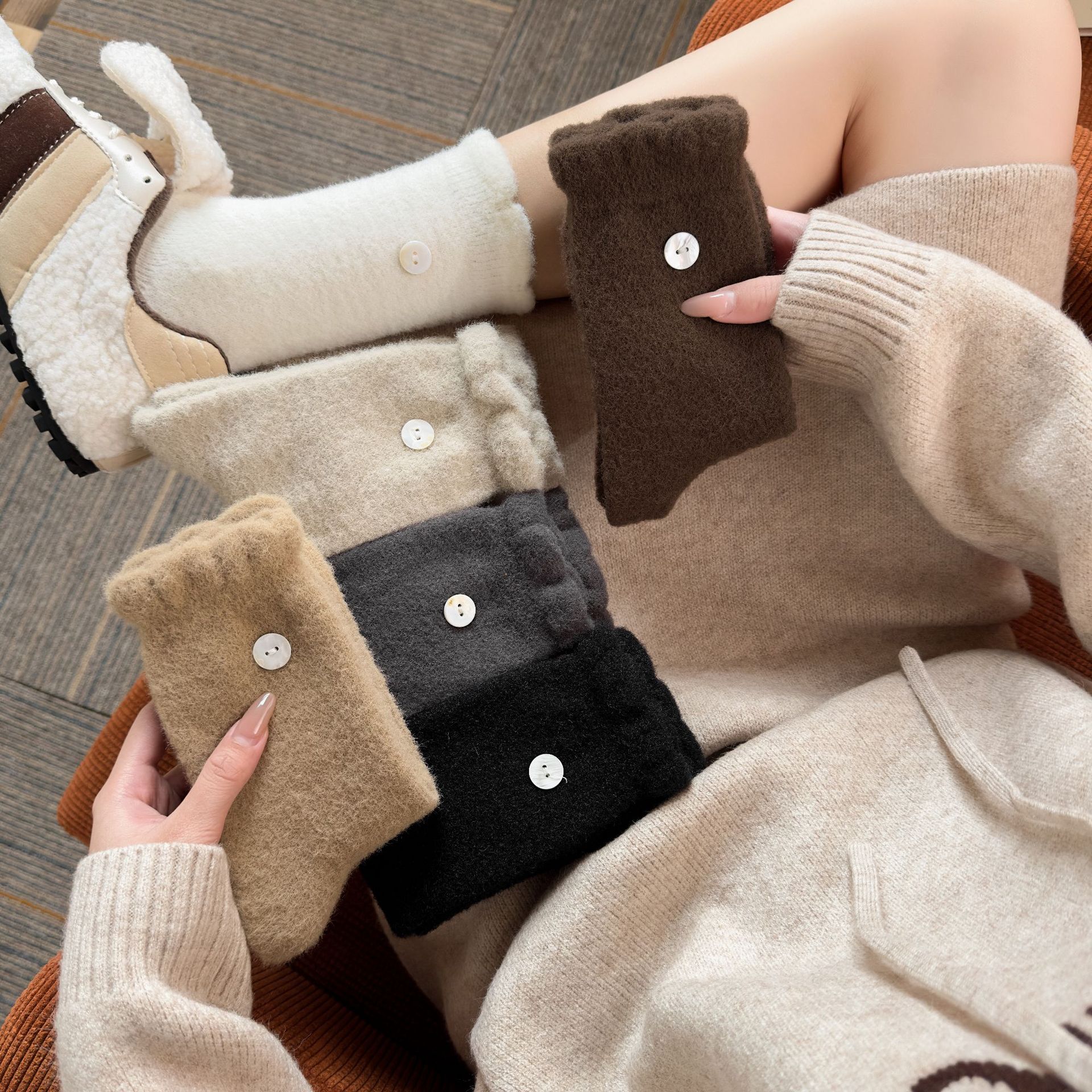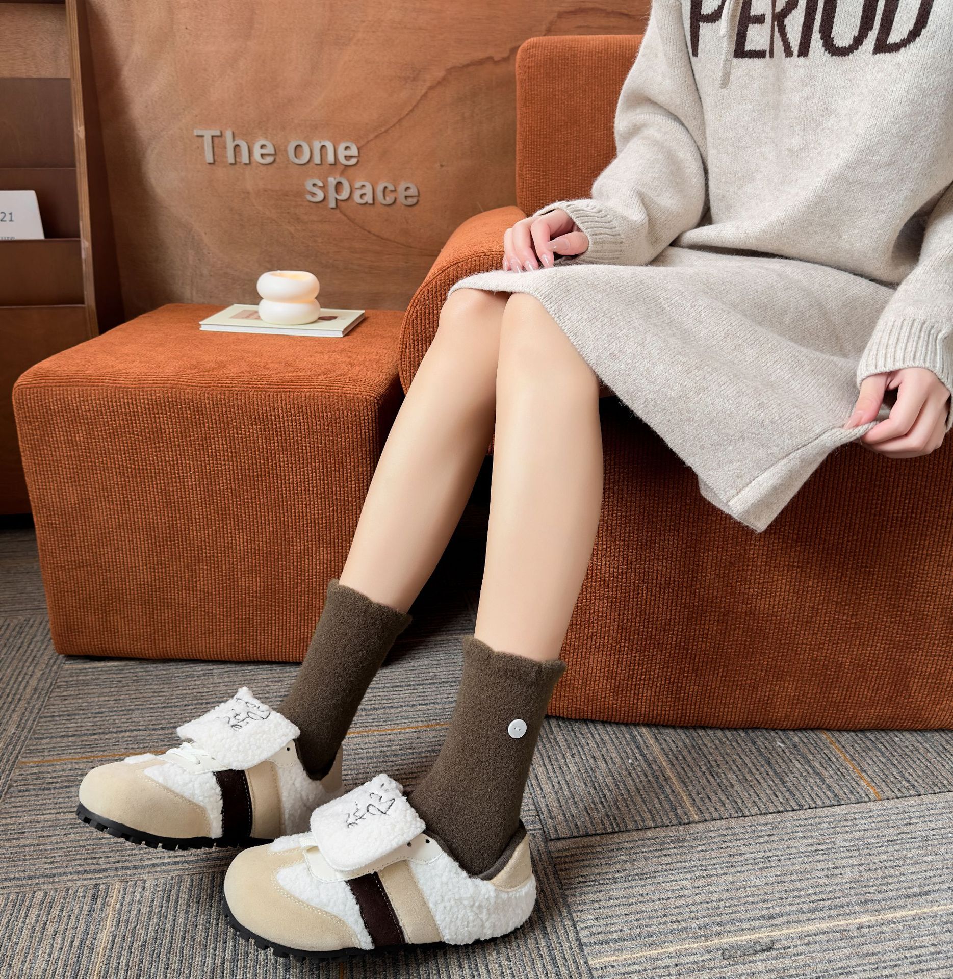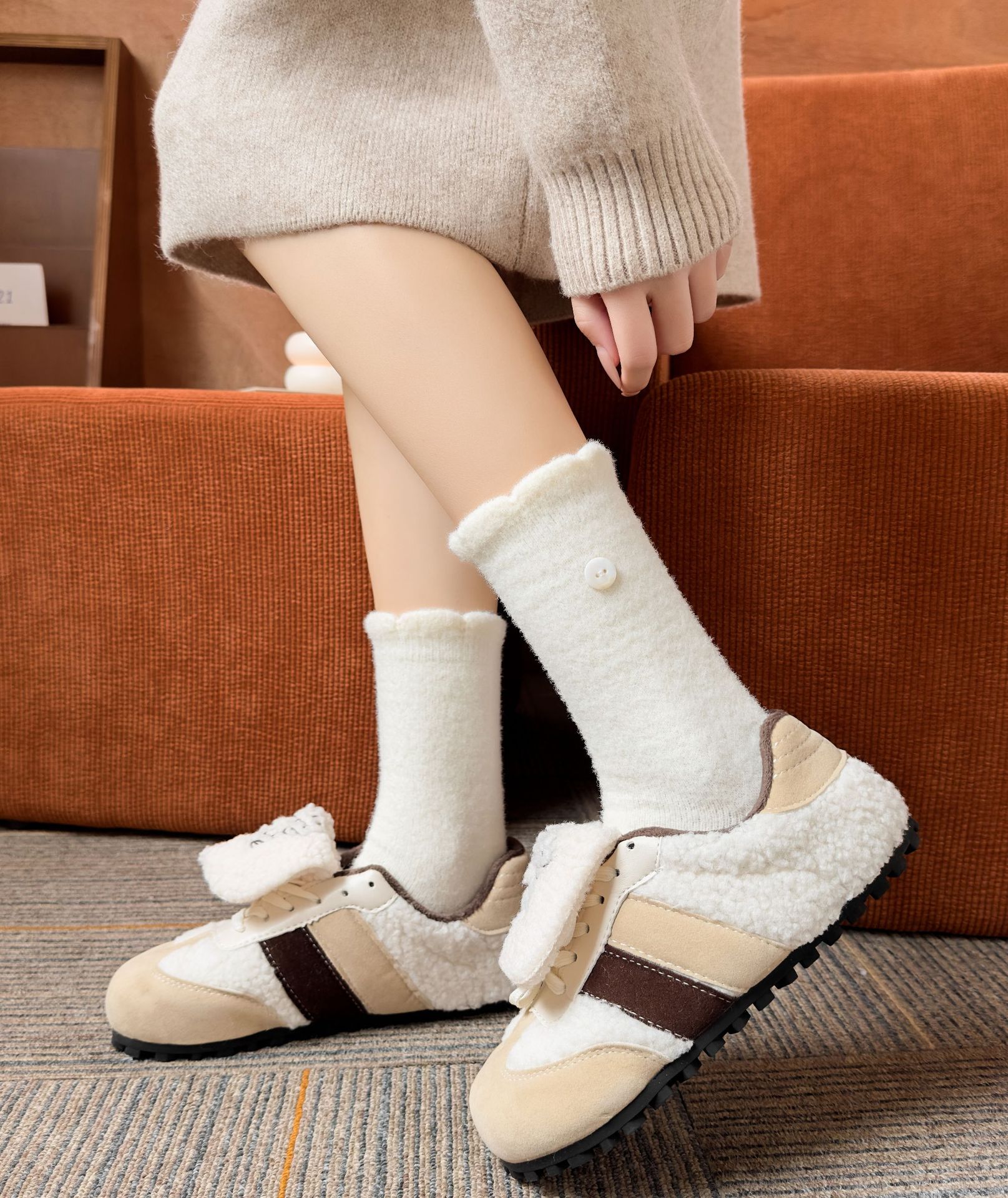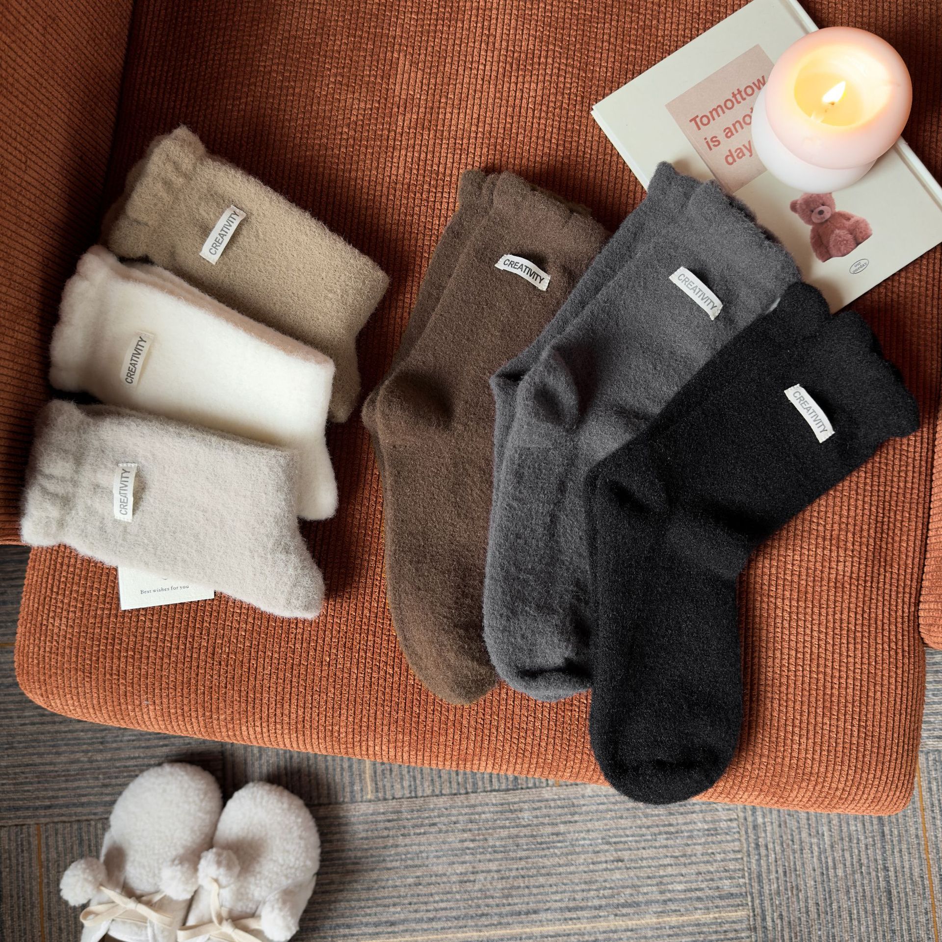 두꺼운 양말 여성용 미드 튜브 양말 가을과 겨울 맞춤형 천 라벨 따뜻한 달 양말 겨울 두꺼운 기모 스타킹 주지 양말스토어 가기