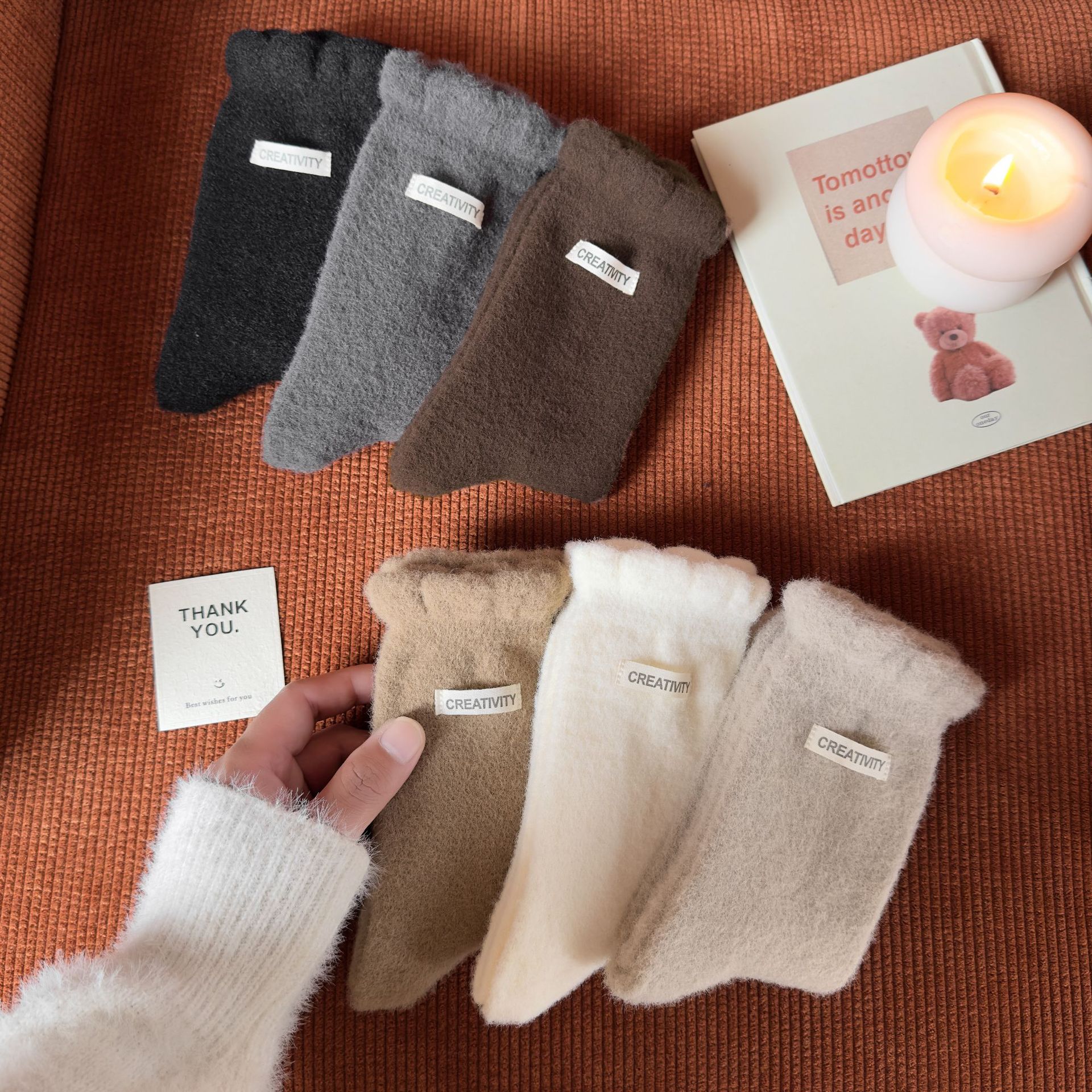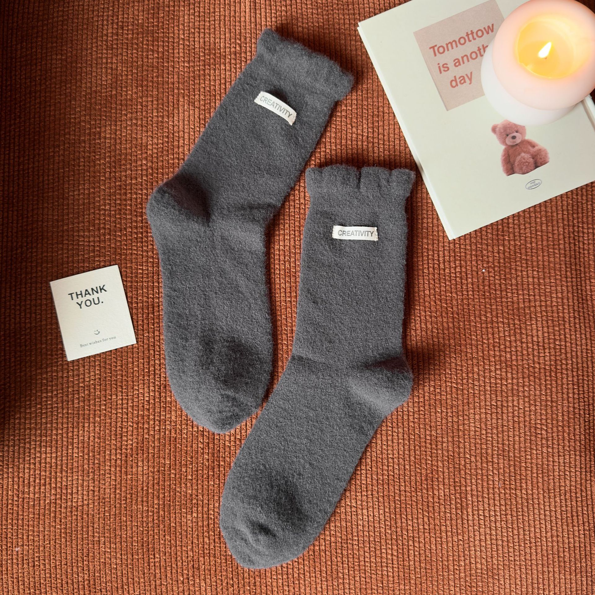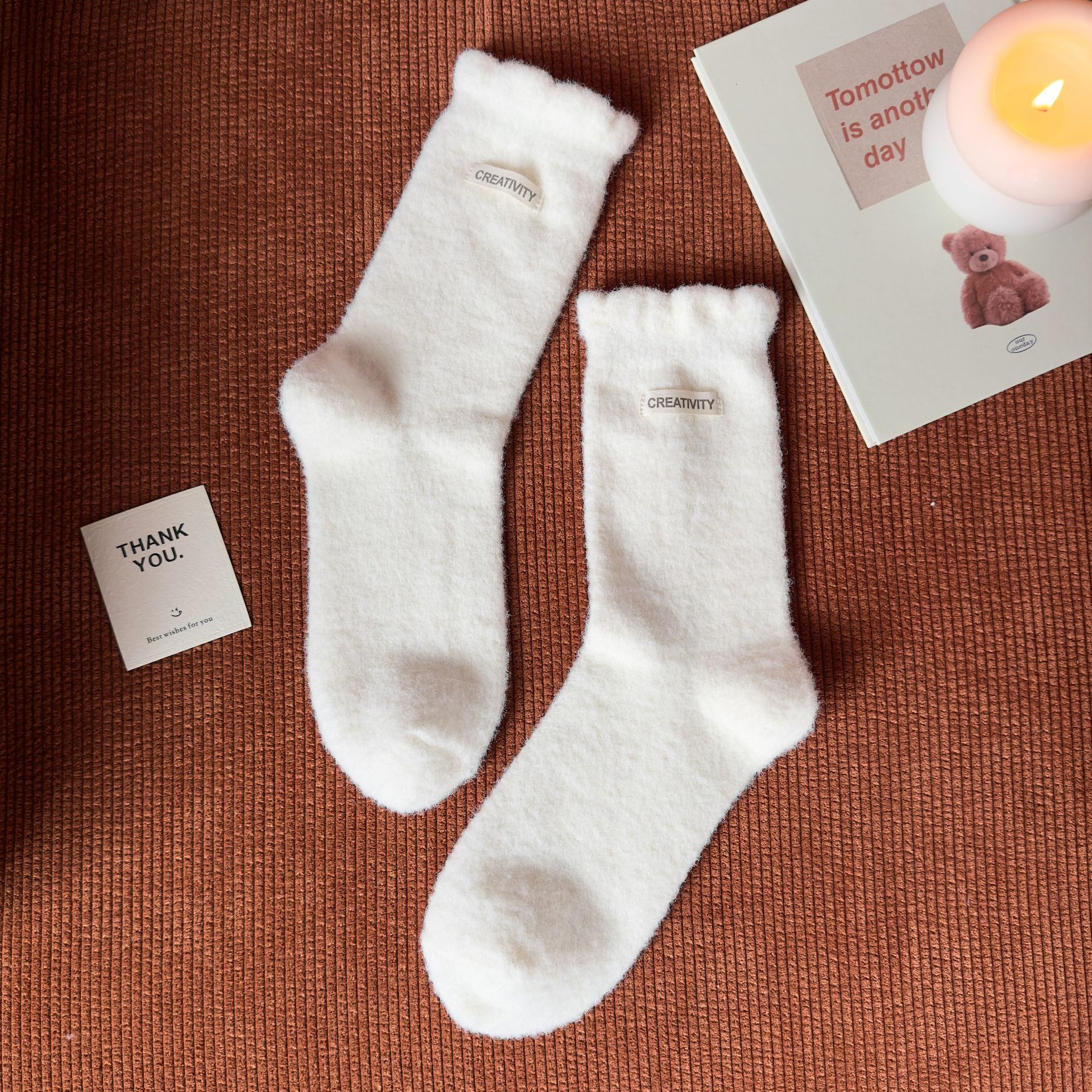 두꺼운 양말 여성용 미드 튜브 양말 가을과 겨울 맞춤형 천 라벨 따뜻한 달 양말 겨울 두꺼운 기모 스타킹 주지 양말