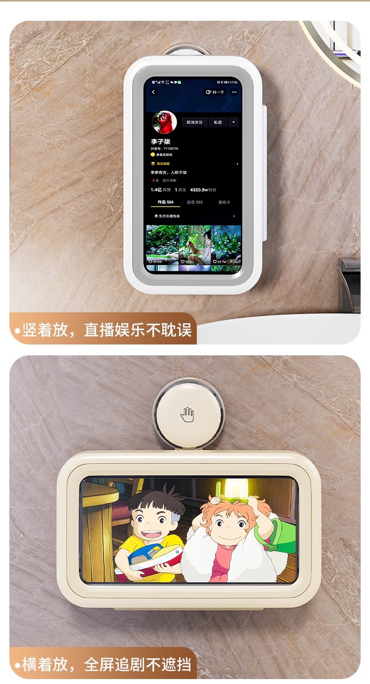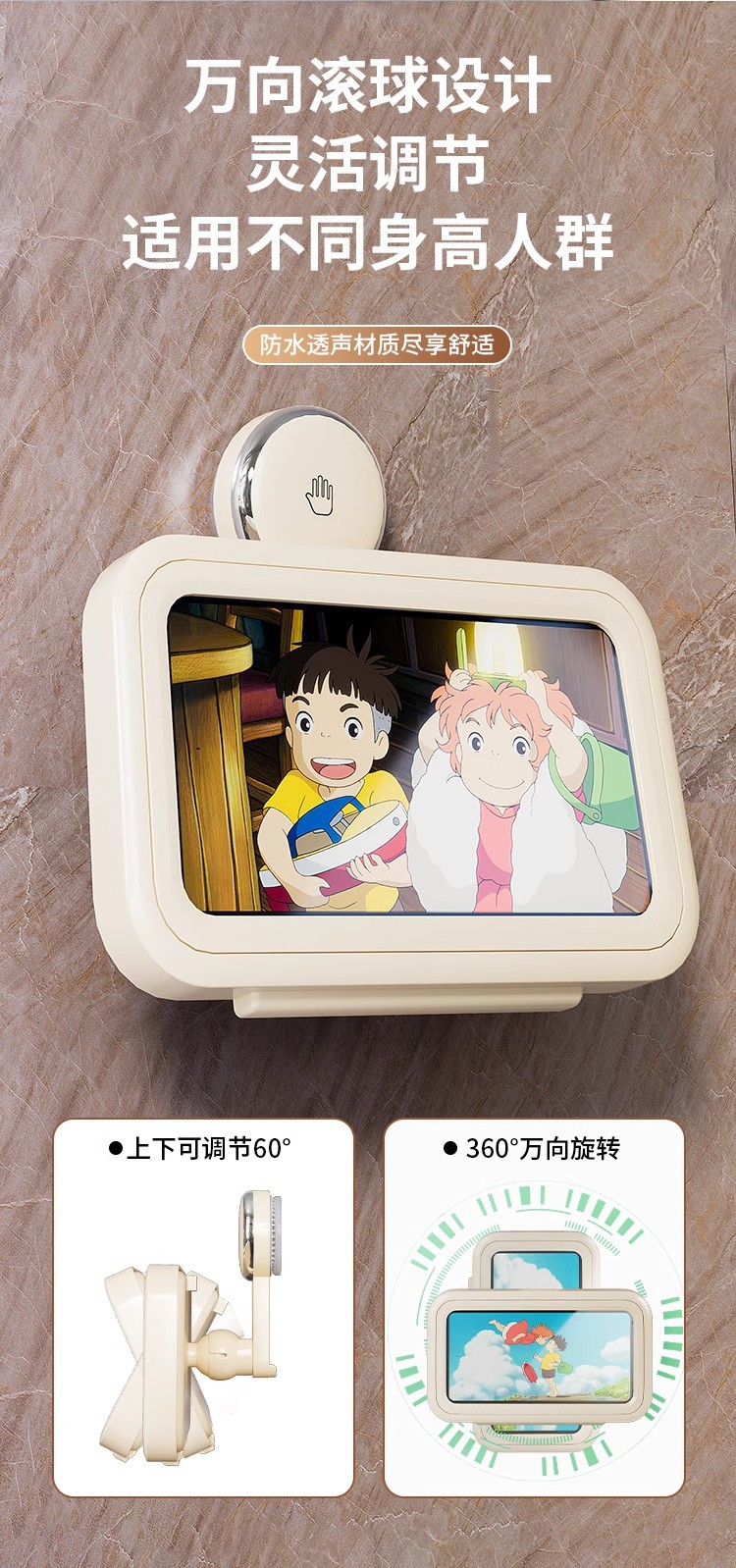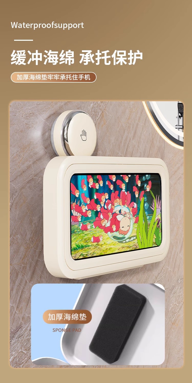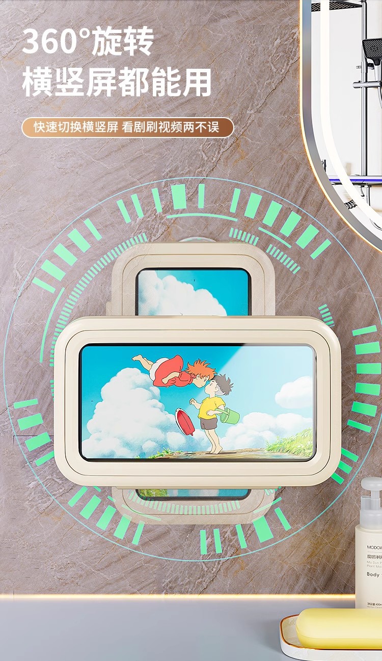 욕실 휴대 전화 브래킷 방수 휴대 전화 상자 저장 랙 화장실 흡입 컵 회전 가능한 터치 스크린 입욕 드라마 추적 아티팩트