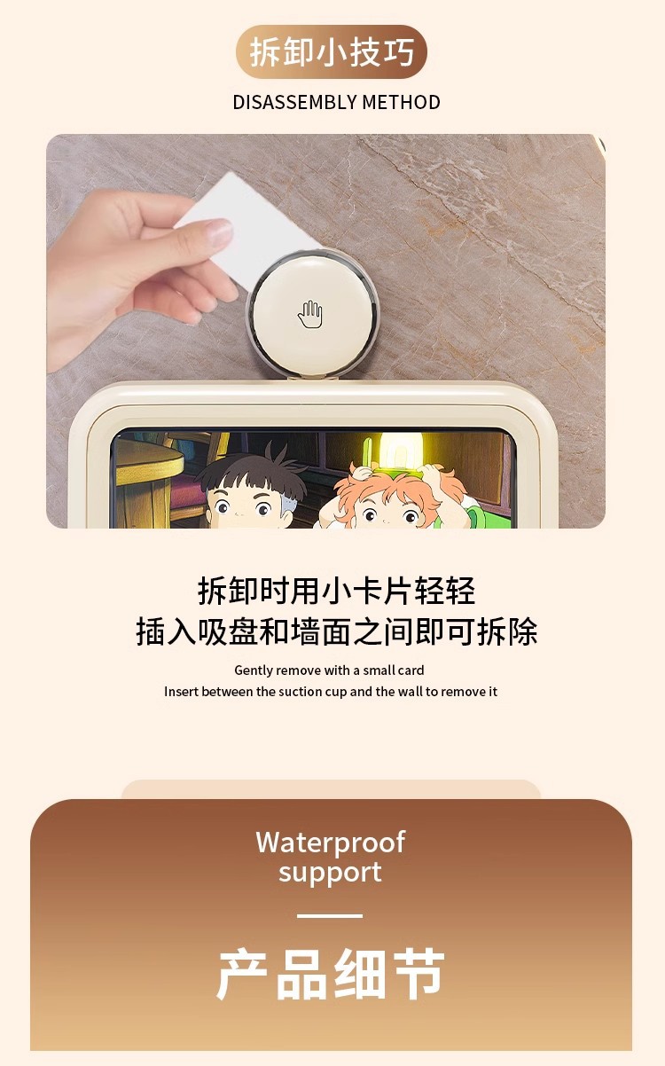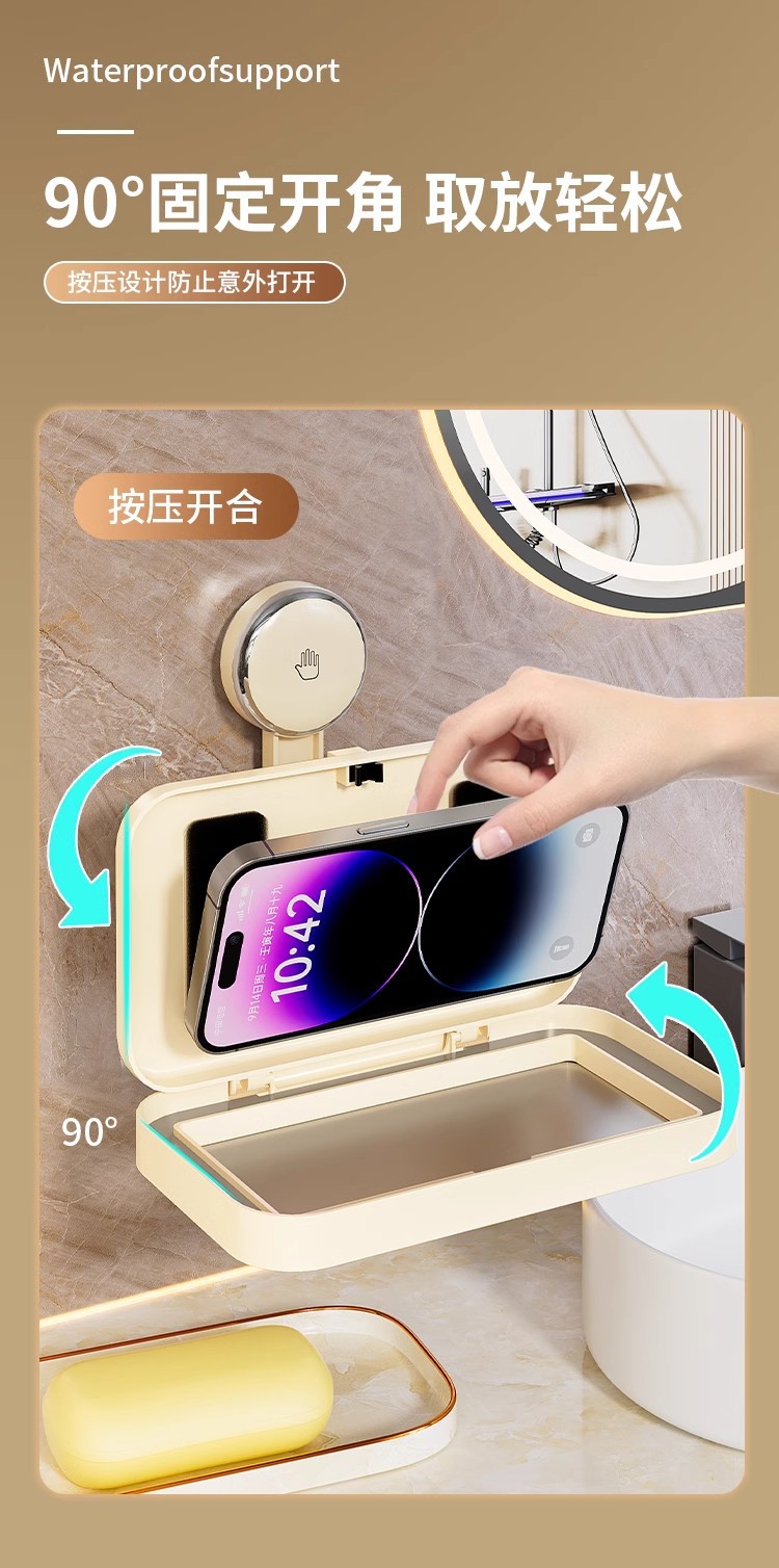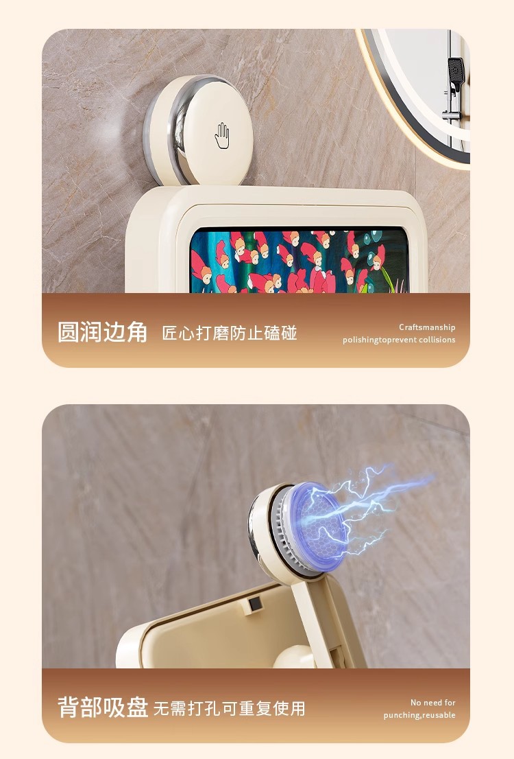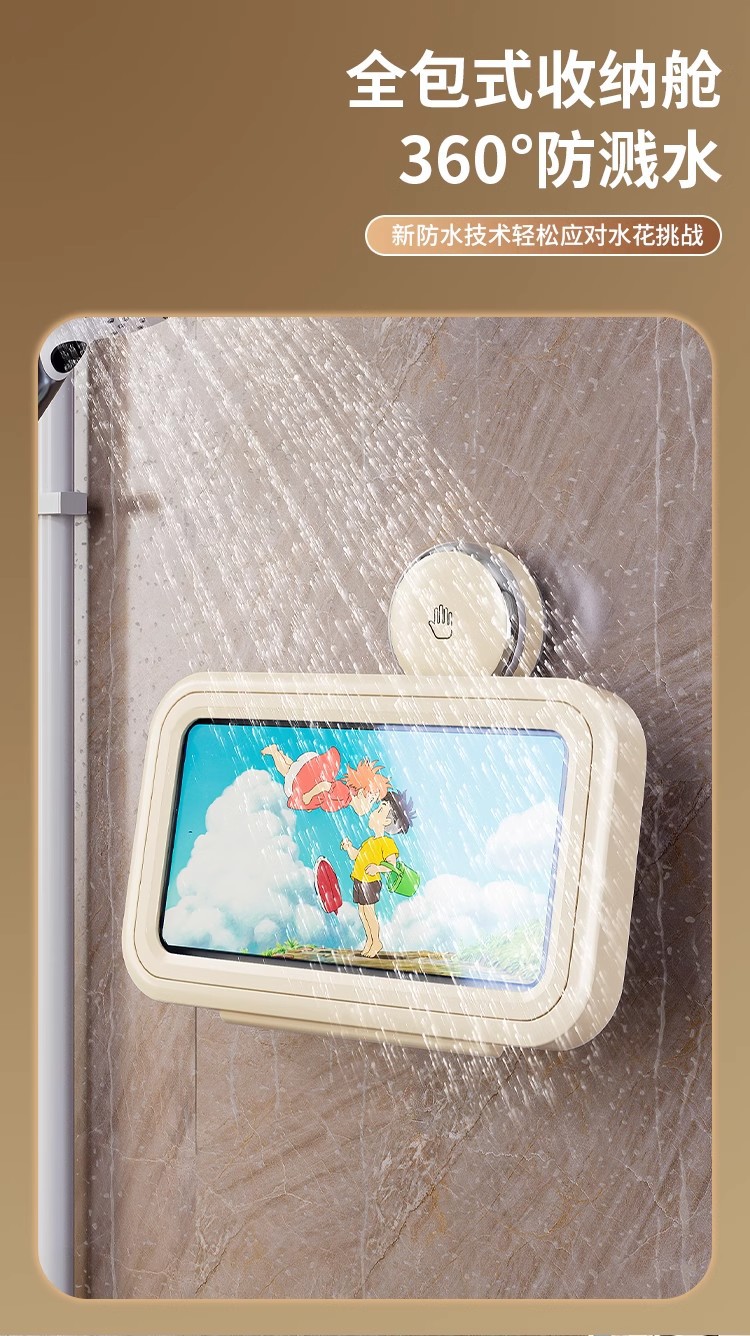 욕실 휴대 전화 브래킷 방수 휴대 전화 상자 저장 랙 화장실 흡입 컵 회전 가능한 터치 스크린 입욕 드라마 추적 아티팩트
