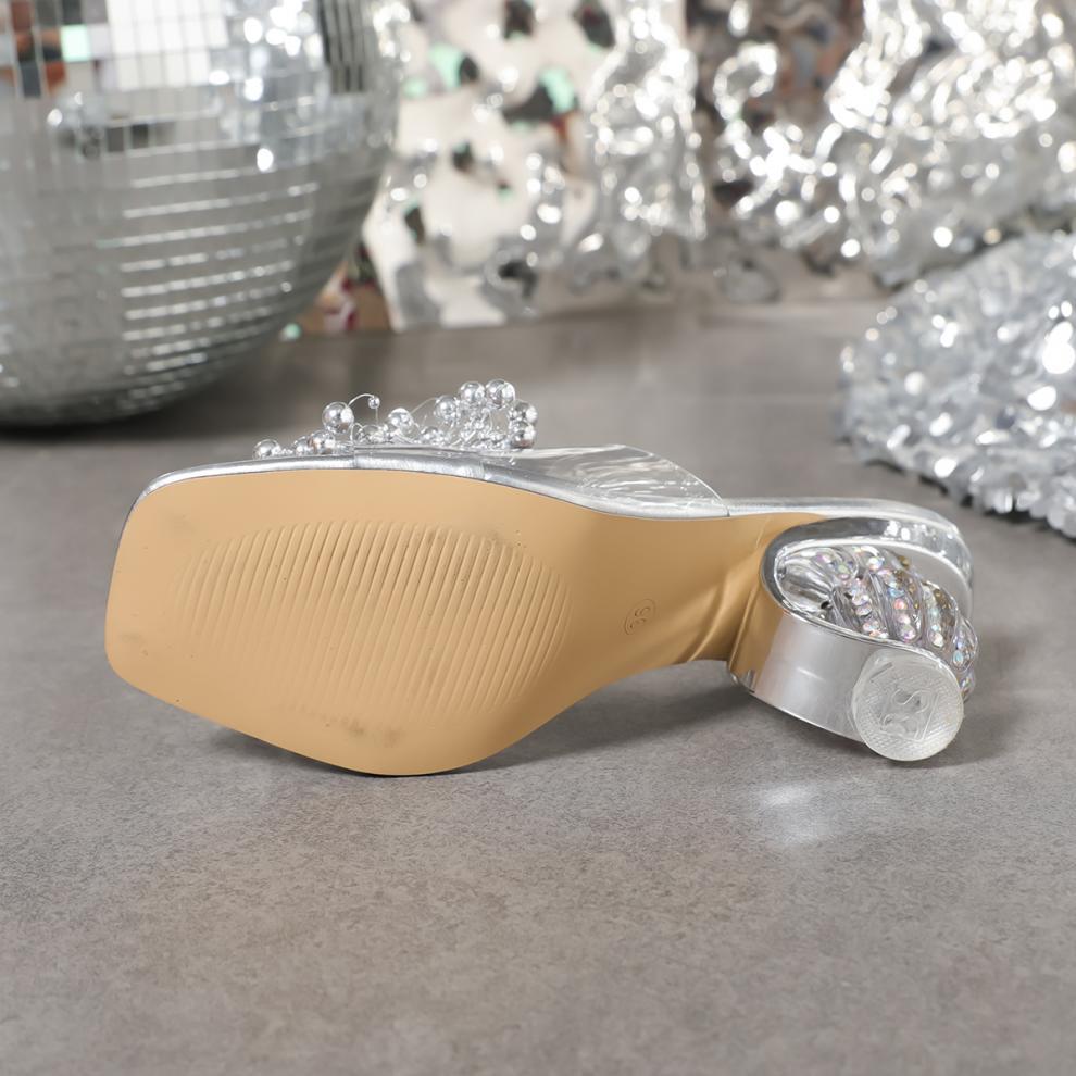 2025 새로운 여성 라인석 꽃 샌들 다리 투명한 플랫폼 파티 원피스 샌들 하이힐