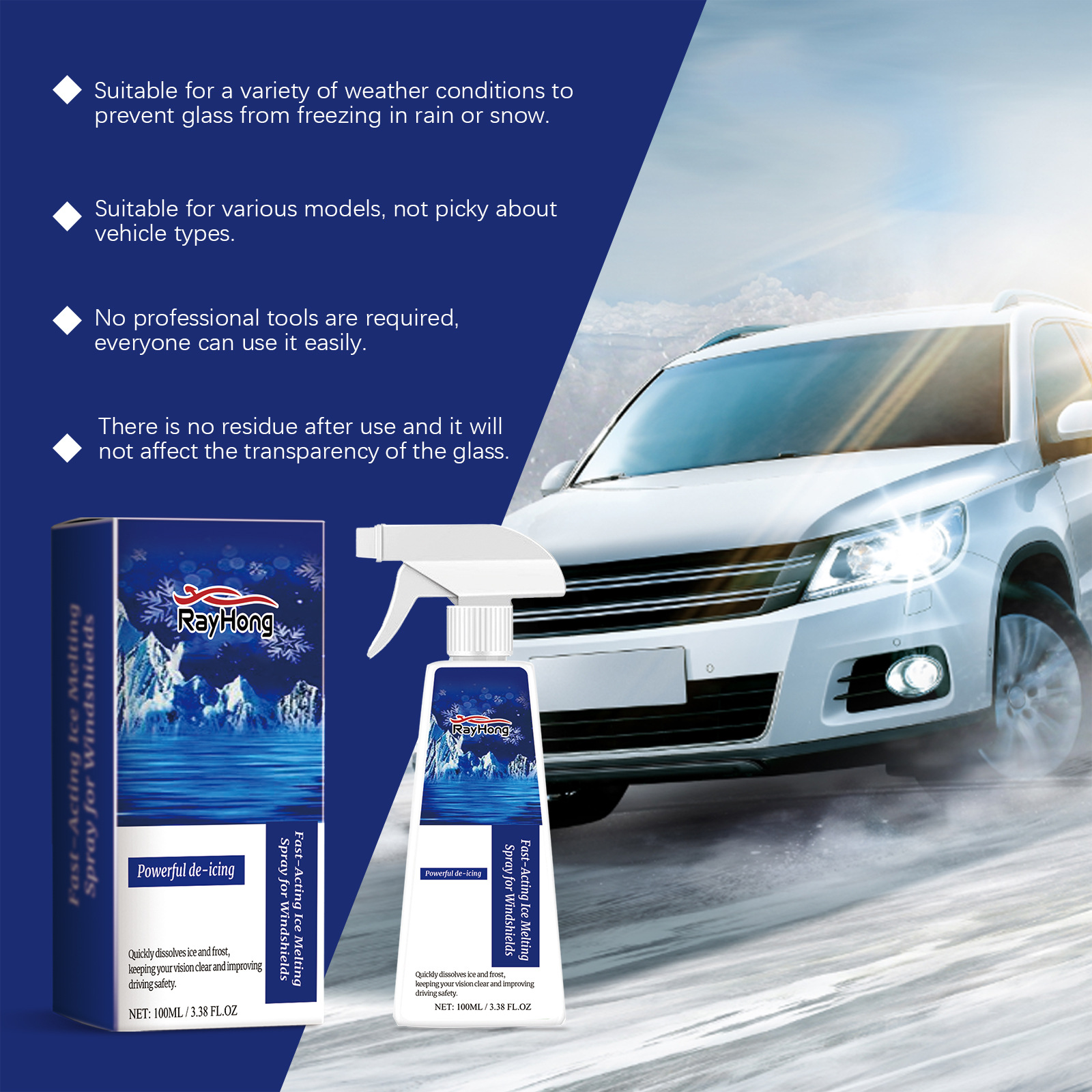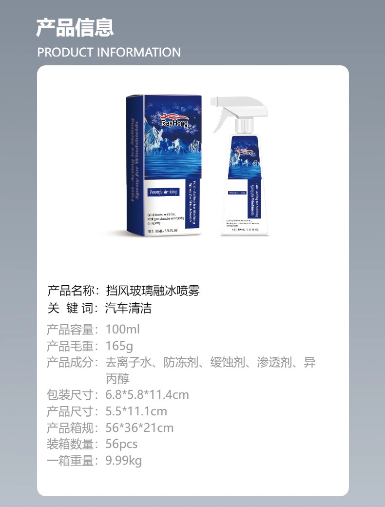 라홍 앞 유리 얼음 녹는 스프레이 자동차 앞 유리 창 해동 눈 제빙 스프레이