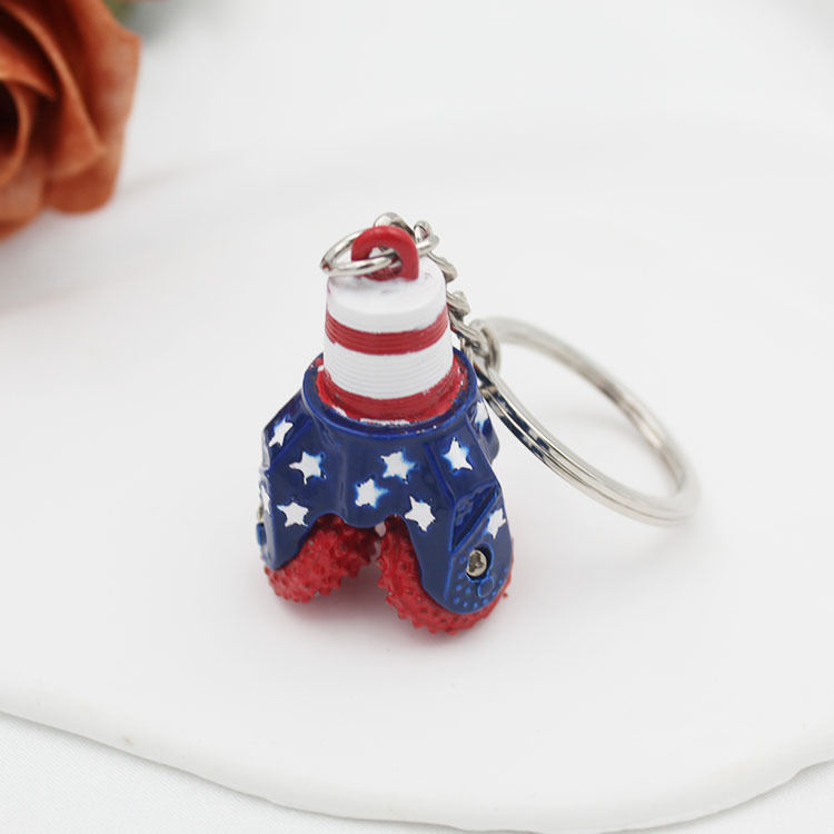 국경 간 창조적 인 미국 국기 드릴 키 체인은 로고 3 헤드 기어 회전 드릴 키 체인을 인쇄 할 수 있습니다