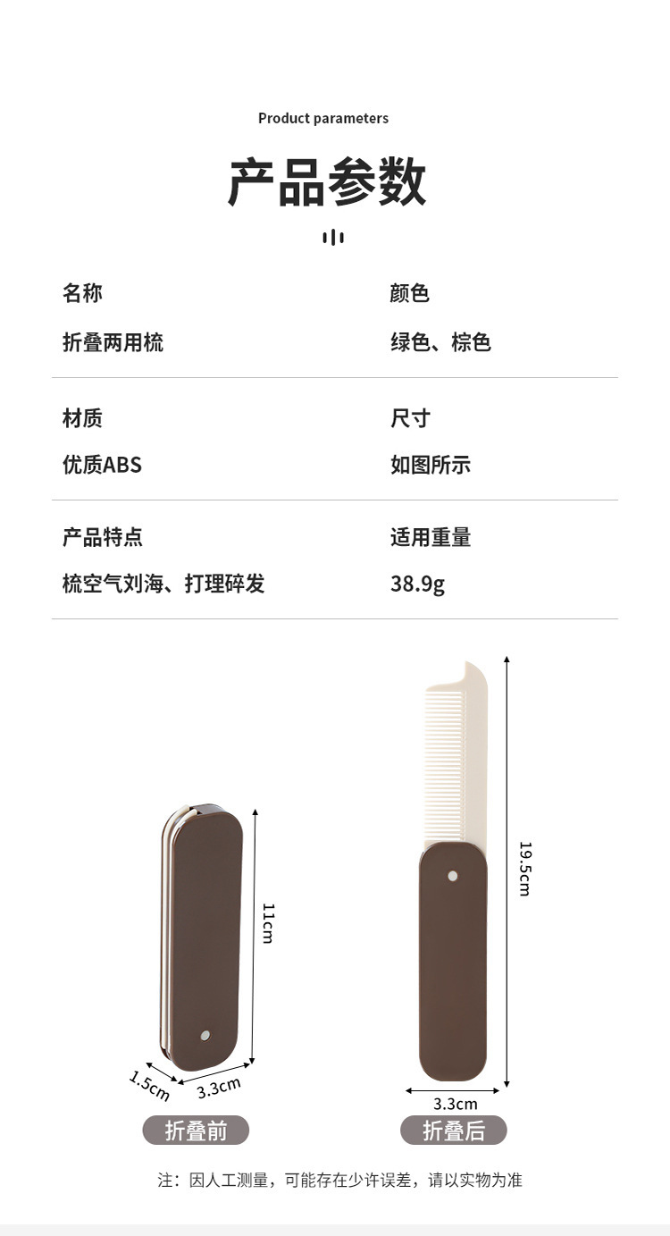 • 商品名称:折叠便携梳子防静电美发梳 细齿粗齿双排两用梳子