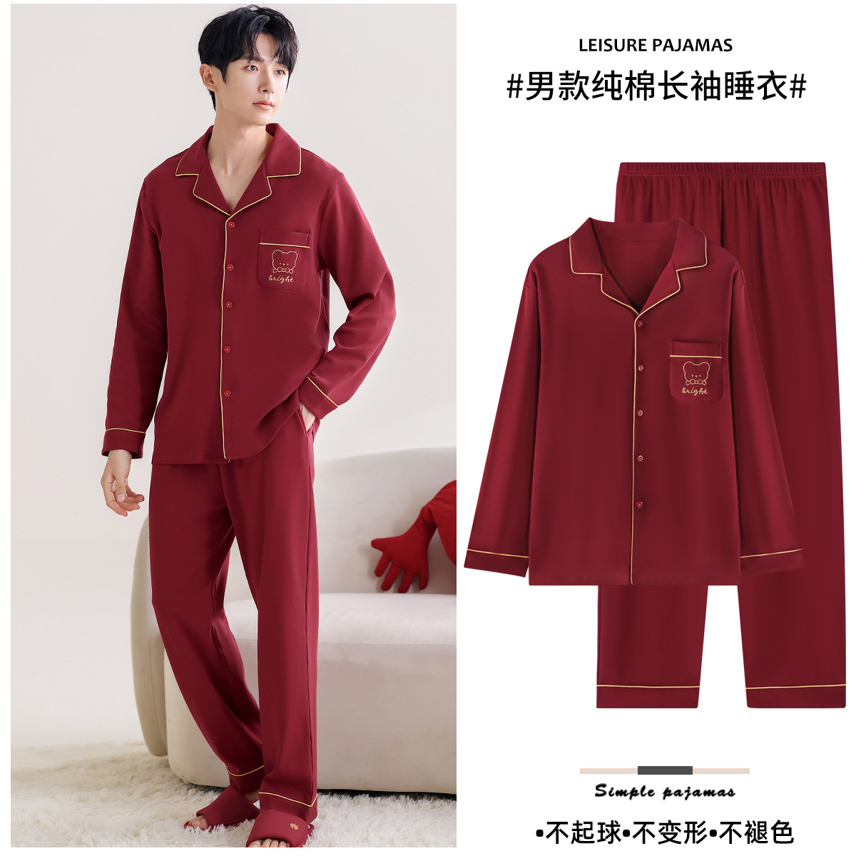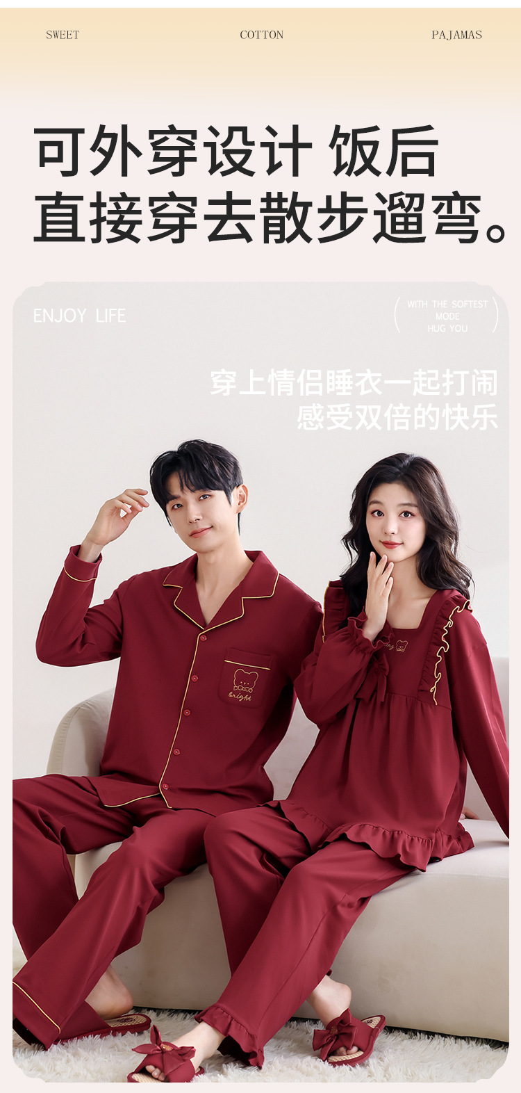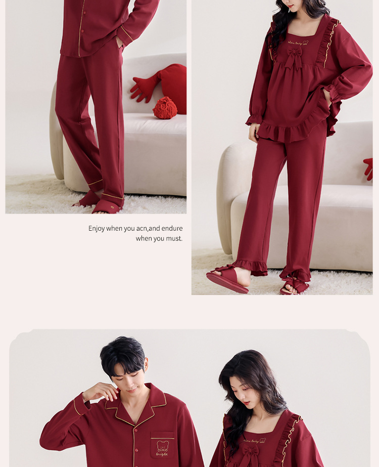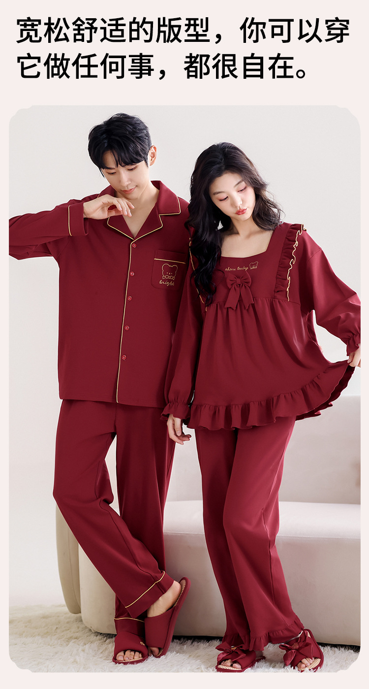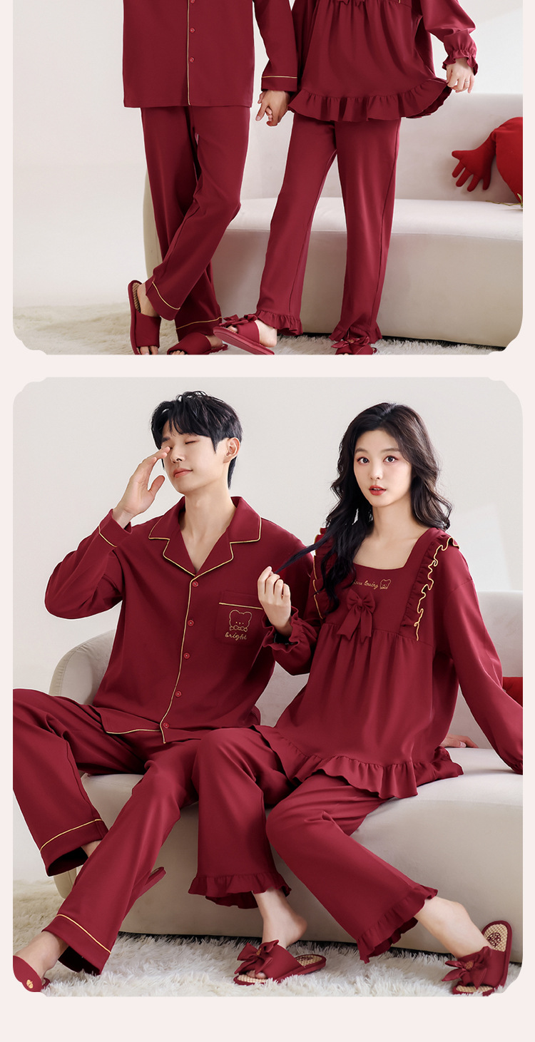 웨딩 커플 잠옷 봄과 가을 순면 긴 소매 빨간 신혼 세트 남녀 생활 년 달콤한 공주 스타일스토어 가기