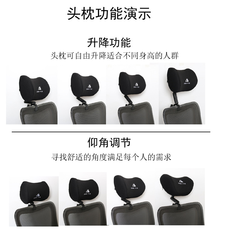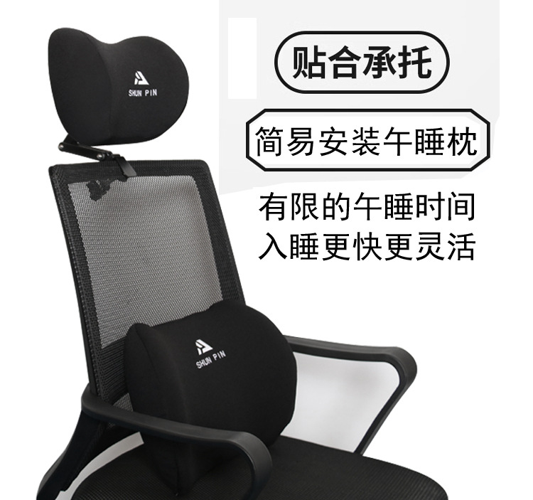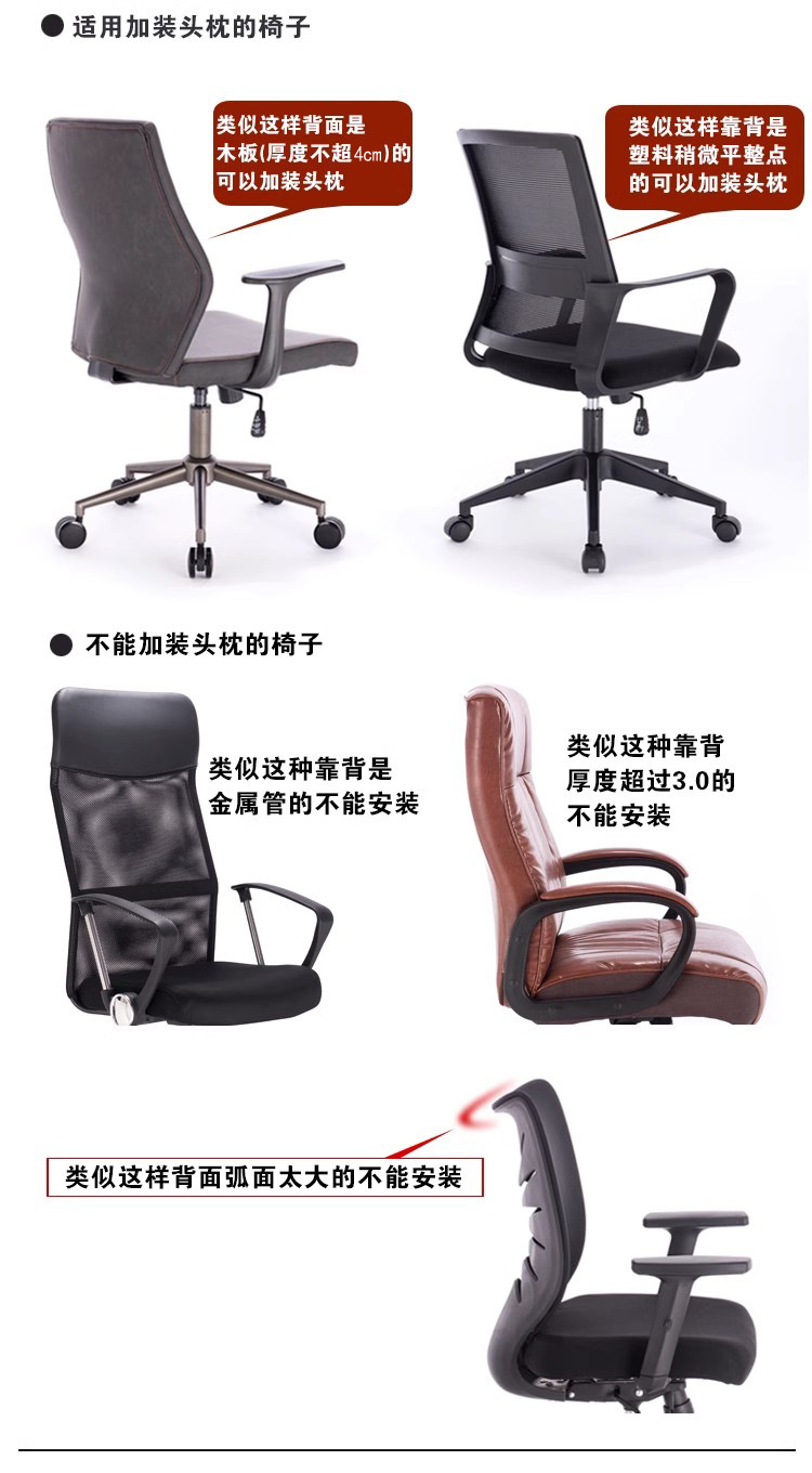 펀치없는 간단한 추가 높이 조절 가능한 머리 받침 허리 쿠션 컴퓨터 의자 사무실 의자 액세서리 허리 목 보호