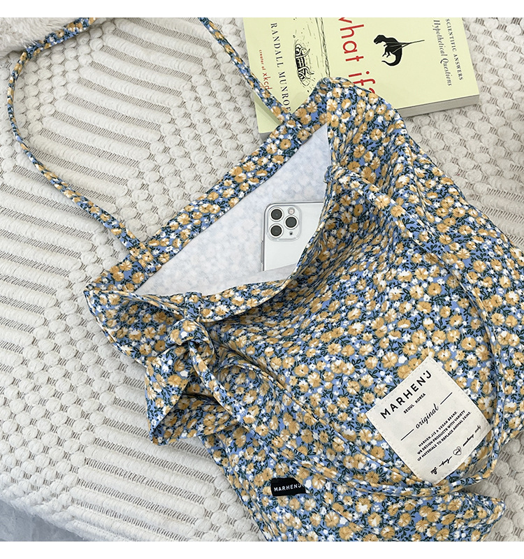 • 파란색 배경에 작은 노란색 꽃 숄더백