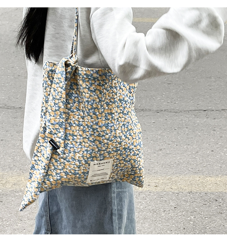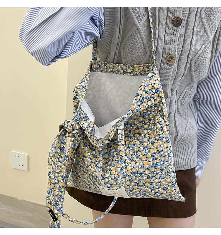 2024 가을 새 캔버스 가방 여성 올 매치 Ins 스타일 신선한 꽃 어깨 가방
