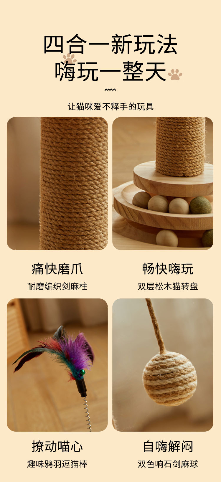• 소나무-4-in-1 고양이 긁는 기둥-소형